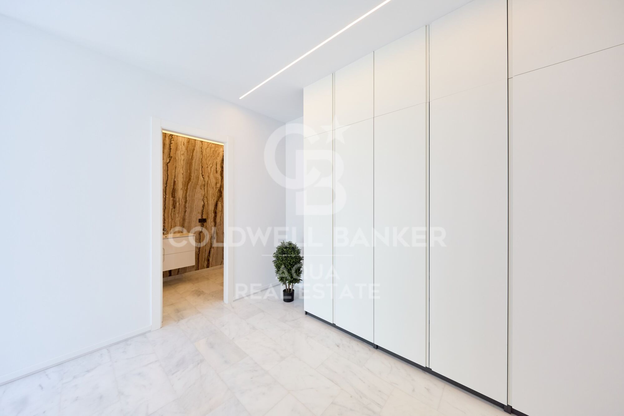 El diseño interior y la distribución de Blanc-19 están perfectamente alineados con la filosofía arquitectónica del proyecto. El interiorismo proyecta una estética limpia, contemporánea y ligera, lograda a través del uso predominante del blanco, pavimentos en tonos arena y amplios espacios abiertos que se llenan de luz natural. Blanc Altea 19 ofrece múltiples atributos destacables: desde su espacioso garaje con capacidad para tres vehículos y preinstalación para la recarga de coches eléctricos, hasta su espectacular suite principal ubicada en la planta solárium. Esta suite, concebida como un verdadero refugio privado, cuenta con un imponente vestidor, un baño cuidadosamente equipado con acabados de lujo y una magnífica terraza con vistas panorámicas al mar, un espacio concebido para el deleite exclusivo de sus propietarios. Las generosas dimensiones de Blanc Altea 19 permiten disponer de cuatro dormitorios en suite, con posibilidad de incorporar un quinto si así se desea. A ello se suma una sala de billar, distintos salones, un despacho y una impresionante zona de día que ocupa una planta entera y se conecta de forma directa con la terraza y la piscina. El ascensor, presente en los cuatro niveles de la vivienda, se convierte en un elemento esencial que aporta comodidad y funcionalidad. En la planta principal, un amplio salón-comedor se abre a la terraza y a una gran cocina equipada con isla central, zona de cocción y una elegante barra de desayuno. Este espacio diáfano y armoniosamente conectado genera distintos ambientes, unificados por una línea estética en la que predominan la madera de nogal, detalles decorativos en gris, una majestuosa chimenea exenta y ventanales retráctiles que fusionan el interior con el exterior. Así se crea un entorno amplio y luminoso, ideal para disfrutarlo a lo largo de todo el año, en sintonía con el extraordinario clima mediterráneo. La vivienda ya se encuentra completamente construida y el proceso de amueblamiento finalizará a finales de este mes, quedando lista para entrar a vivir. Con una superficie construida de 405,29 m² de vivienda, más 66,33 m² de garaje, 19,45 m² de porche y 125,09 m² de terrazas, Blanc Altea 19 redefine el concepto de lujo y confort en la Costa Blanca. #ref:CBS499