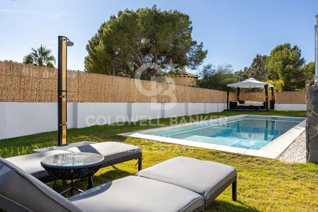 Esta elegante villa, situada en una zona tranquila y residencial de Altea la Vella, ofrece espectaculares vistas abiertas al mar y a las montañas. Con una arquitectura moderna, amplios espacios interiores y una excelente orientación sur, es el lugar perfecto para disfrutar del clima mediterráneo durante todo el año. Distribución Panta baja: Amplio salón-comedor con grandes ventanales y acceso directo a la soleada terraza con piscina privada y zona chill-out. Moderna cocina americana totalmente equipada. Aseo de invitados. Dormitorio principal con baño en suite, vestidor y salida a la terraza. Primera planta: Hall de entrada luminoso. Dos dormitorios dobles, armarios empotrados y ambos con acceso a una terraza con vistas al mar. Un baño completo. Garaje cerrado con espacio adicional de almacenamiento. Características principales Casa/chalet independiente de 2 plantas. 255 m² construidos en una parcela de 1.669 m². 3 dormitorios, 2 baños y 1 aseo. Amplias terrazas y balcón con vistas al mar. Piscina privada - zonas exteriores ajardinadas- zona chill-out -+ Bbq. Garaje cerrado incluido en el precio. Propiedad en muy buen estado. Armarios empotrados y trastero. Orientación sur, muy soleada. Calefacción central de gas. Esta propiedad está situada en una zona muy tranquila y bien comunicada de Altea la Vella, a pocos minutos de todos los servicios, combina confort, privacidad y unas vistas inmejorables, ideal como residencia permanente o casa de vacaciones en la Costa Blanca. #ref:CBSA728