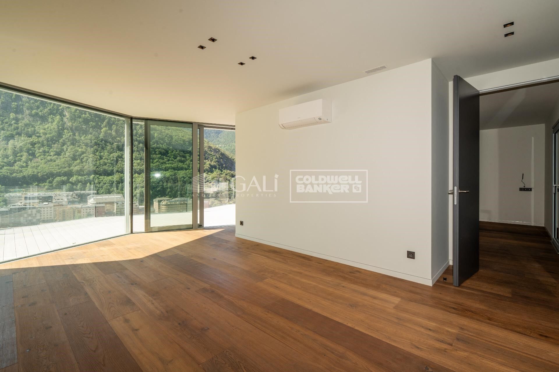 Exclusiva promoción de obra nueva situada a tan solo 500 metros del centro de Andorra la Vella y de su principal eje comercial.~El edificio, de 14 plantas, tiene prevista su finalización para diciembre de 2027 y ofrecerá un entorno moderno, cómodo y funcional con zonas ajardinadas y una pista de pádel.~~Las viviendas se caracterizan por su diseño contemporáneo, la eficiencia energética tipo A y el uso de materiales de primera calidad.~Todas disponen de espacio exterior con prácticos balcones o terrazas, y una cuidada orientación que garantiza luz natural y confort térmico durante todo el año.~~Características principales~Estructura y fachada: sistema de hormigón prefabricado y fachada ventilada con revestimiento cerámico imitación hormigón y madera tecnológica, que aporta elegancia y durabilidad.~Carpintería exterior: aluminio o PVC con rotura de puente térmico y triple acristalamiento, garantizando el mejor aislamiento térmico y acústico.~Climatización: sistema de suelo radiante-refrescante con producción de ACS mediante red FEDA Ecoterm, máxima eficiencia y confort.~Domótica: preinstalación domótica escalable y cortinas opacas motorizadas en salón.~Iluminación LED en cocinas, baños y zonas comunes.~Preinstalación para vehículo eléctrico en plazas de aparcamiento.~~Acabados interiores~Suelo estratificado SPC de Grato y gres porcelánico antideslizante en balcones y terrazas.~Cocinas totalmente equipadas con mobiliario MOBALPA o similar, encimera CERATOP o similar, y electrodomésticos SIEMENS o equivalente.~Baños con mobiliario suspendido, grifería termostática y plato de ducha de resina con mampara.~Puerta de entrada blindada y puertas interiores lacadas.~~Sostenibilidad y eficiencia~Gracias a su diseño constructivo, aislamiento avanzado y sistemas energéticos de última generación, la promoción obtiene la máxima calificación energética A, reduciendo el consumo y el impacto ambiental.~~Este inmueble de 118 m2 es una duodécima planta con un balcon de 18 m2 y en orientación sud, por lo que tiene sol todo el día.~Dispone de:~-Entrada con armario.~-Salón comedor amplio, cocina equipada.~-Aseo de cortesía.~-Lavadero funcional.~-Baño completo.~-2 habitaciones amplias con armarios empotrados.~-Suite principal con armarios y baño completo~-Salida al balcón desde cualquier estancia.~Posibilidad de compra de dos plazas de aparcamiento y un trastero.~~Inmobiliaria Gali a su disposición. #ref:04763/5210