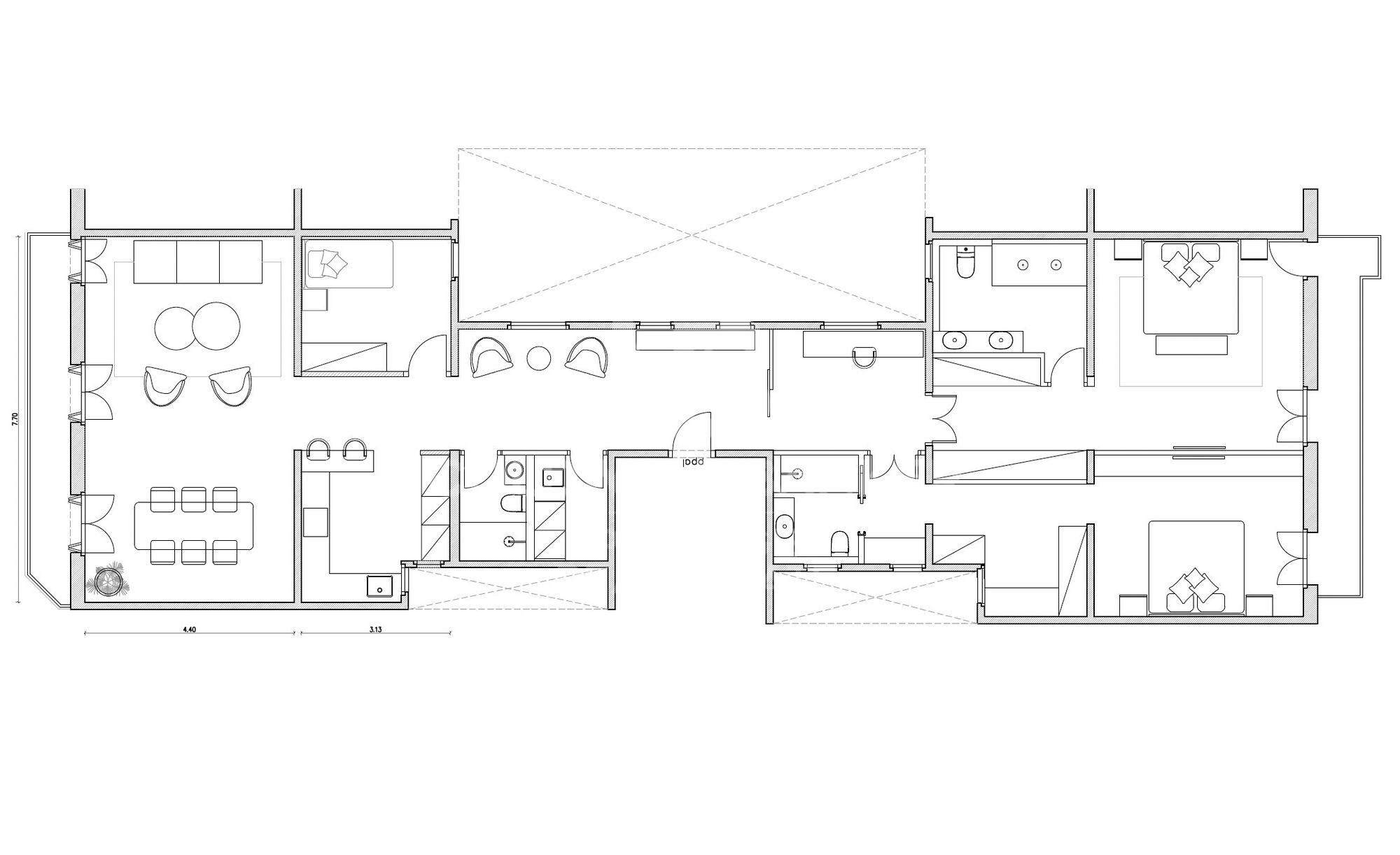 La distribución, propia de los pisos clásicos del Eixample, ofrece doble orientación: la zona de día da a la calle e incluye un amplio salón-comedor conectado a una cocina semiabierta totalmente equipada con electrodomésticos de alta gama. La zona de noche se abre al tranquilo patio de manzana y cuenta con tres habitaciones y tres baños, repartidos en dos master suites con baño privado y vestidor, ambas con acceso directo a un balcón compartido, además de una tercera habitación adicional.