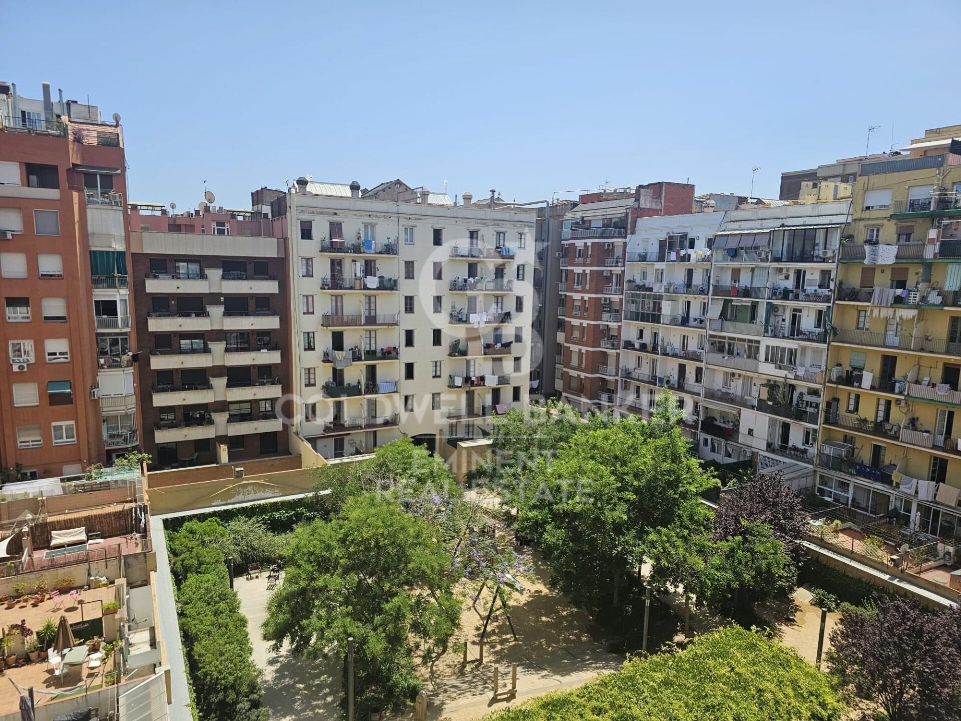 Sus bonitas vistas al jardín del patio de manzana aportan tranquilidad y luminosidad. Situada en la calle París, en una ubicación privilegiada junto al Hospital Clínic y a pocos pasos de la Plaza Francesc Macià, ofrece una conexión excelente con la ciudad y acceso a todos los servicios necesarios.