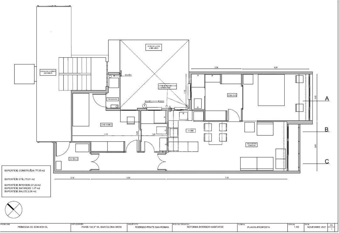 Coldwell Banker Prestige presenta esta vivienda situada en una finca señorial de carácter modernista, ubicada en la confluencia de las calles Valencia y Muntaner, en pleno corazón del Eixample Izquierdo. Se trata de una 6ª planta real en una finca con ascensor, que dispone además de medidas de seguridad como cámaras de videovigilancia y doble puerta de acceso. La vivienda, con 115 m² construidos, ha sido diseñada por una arquitecta especializada en viviendas de autor, y se caracteriza por una distribución funcional, acabados de alta calidad y atención al detalle. Destacan las soluciones de iluminación directa e indirecta que aportan calidez y funcionalidad a los distintos espacios. La zona de día incluye un espacio amplio y luminoso que integra cocina y comedor. La cocina está equipada con electrodomésticos de gama actual y pensada para un uso eficiente del espacio. El salón conecta con un balcón exterior orientado al sur, con vistas a la calle Valencia y excelente entrada de luz natural. La vivienda dispone de tres habitaciones dobles. Una de ellas cuenta con cama abatible y es ideal como despacho o habitación polivalente. Las otras dos son dormitorios dobles, uno de ellos en suite, exterior, con armarios a medida, y otro con armarios empotrados. El inmueble cuenta con dos baños completos uno con ducha junto al pasillo y una zona de lavandería independiente. El aislamiento es total, tanto respecto al exterior como al vecino contiguo, gracias a la carpintería nueva y a los cerramientos con doble acristalamiento con cámara de aire. Entre los elementos originales, se han conservado y restaurado los suelos hidráulicos, que aportan personalidad y autenticidad. La vivienda ha sido concebida bajo criterios de alta calidad y sostenibilidad, priorizando el confort térmico, acústico y el aprovechamiento de la luz natural gracias a su orientación sur. Para más información o para concertar una visita, no dude en contactar con nosotros. #ref:CBES2649