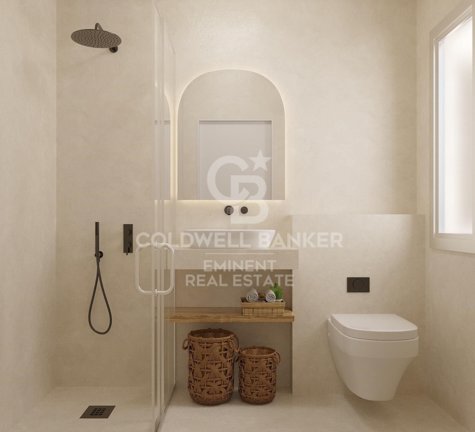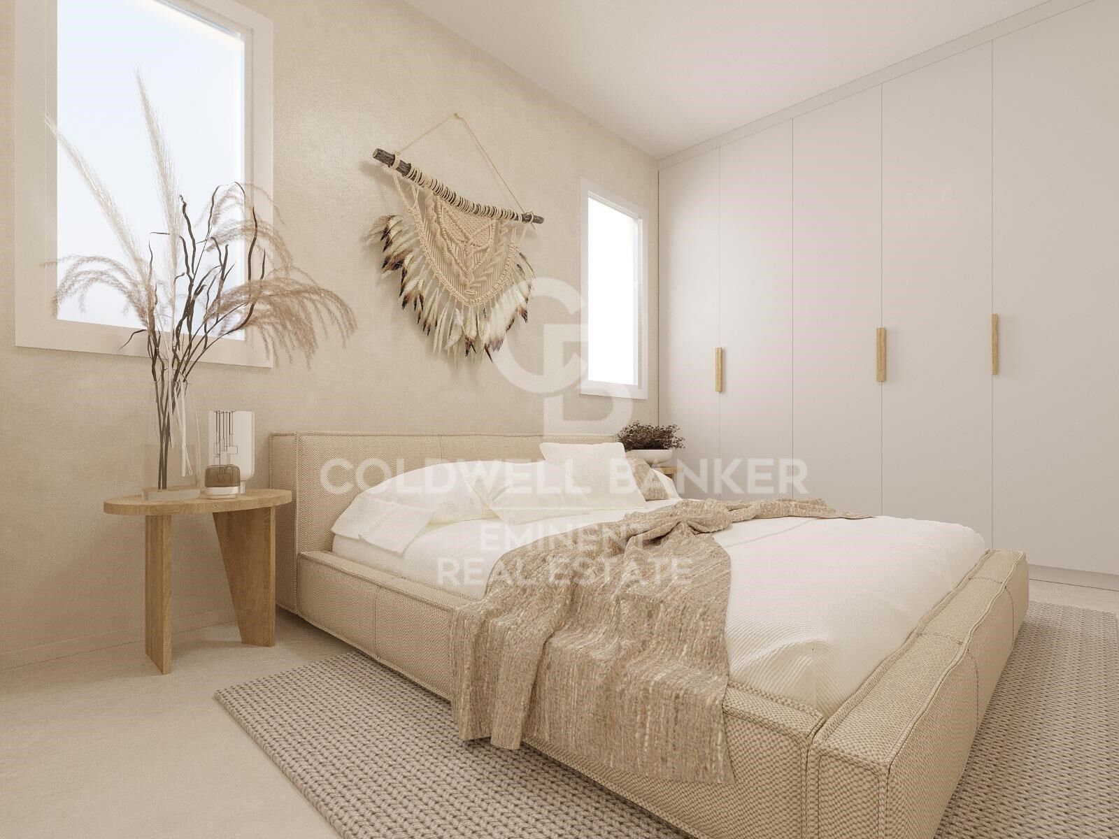 Magnífico ático ubicado en el barrio de Sant Antoni, situado en una octava planta real, actualmente en proceso de reforma integral con excelentes calidades. La vivienda cuenta con 77 m² interiores y una espectacular terraza privada de 40 m², orientada a la calle y con acceso directo desde el salón a través de un amplio ventanal. Gracias a su altura y orientación, el piso disfruta de mucha luz natural y sol durante todo el día. Dispone de: Una habitación doble exterior, muy espaciosa, con gran ventanal y salida directa a la terraza. Dos dormitorios individuales, ideales como espacios auxiliares, despacho o habitación infantil. Salón-comedor con cocina integrada, totalmente equipada con electrodomésticos panelados, encimera de Silestone, mobiliario a medida de diseño actual y acabados de alta gama. Un baño completo con cerámica italiana, mampara de cristal templado y mueble de lavabo con espejo. Aseo adicional y práctica zona de lavadero independiente. Entre sus prestaciones destaca: Instalaciones de luz y agua completamente renovadas Techos altos con iluminación LED empotrada Climatización por conductos (frío/calor) Suelos de parquet laminado AC5 resistente al agua Puertas interiores lacadas en blanco, macizas Doble acristalamiento de aluminio en todas las estancias Fibra óptica instalada y sistema de alarma ya operativo La finca, construida en 1967, se encuentra en buen estado de conservación y dispone de ascensor. Una propiedad única por ubicación, diseño y calidad, perfecta para quienes buscan una vivienda lista para estrenar con espacio exterior en una de las zonas más demandadas de Barcelona. #ref:CBE01182
