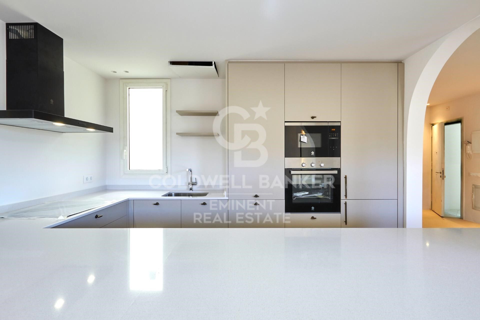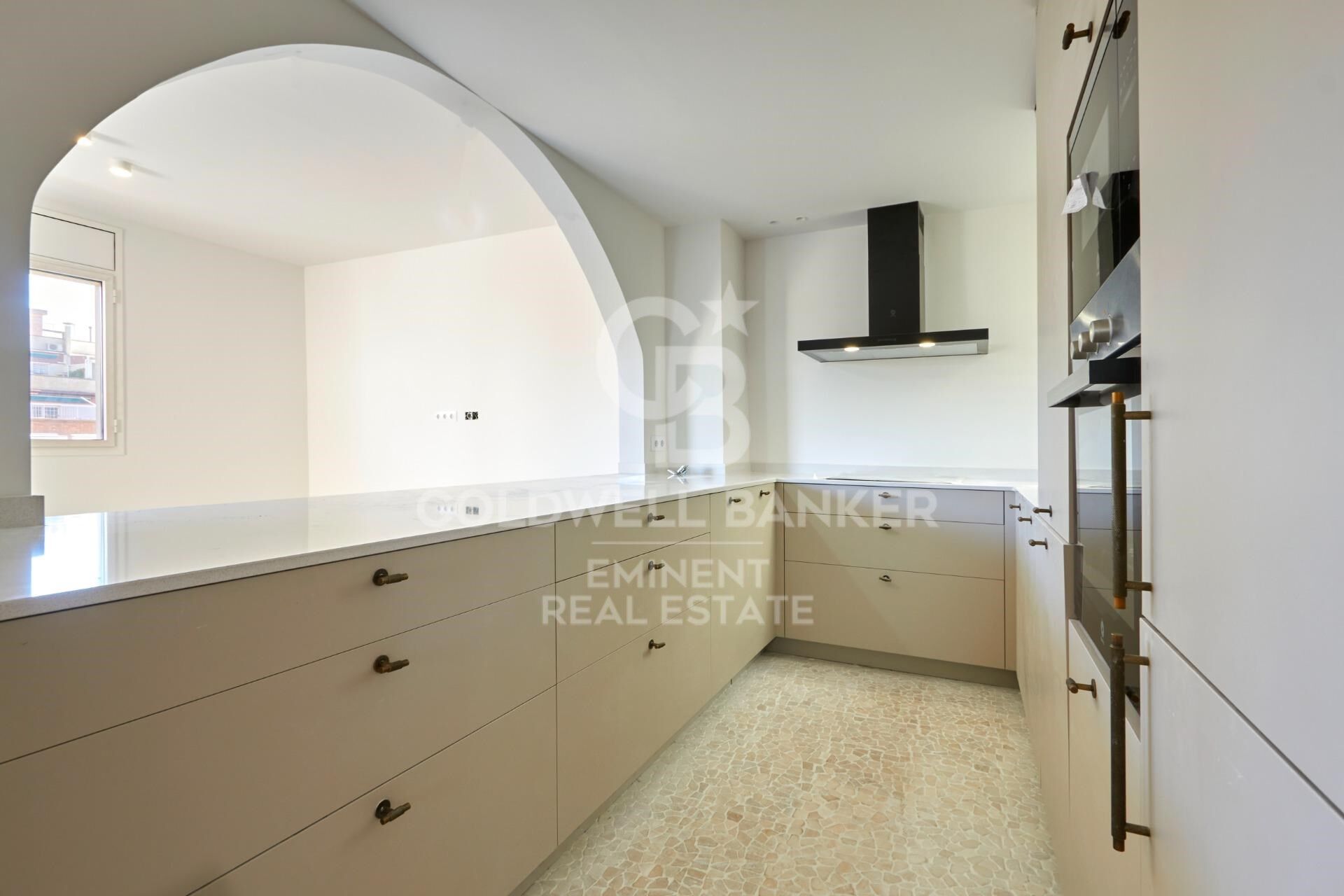 Magnífico ático, completamente renovado y a estrenar, representa una auténtica joya en el prestigioso barrio de Les Corts - Av. de Madrid - Incluye plaza de parking a 5 minutos caminado de la finca, consta de una superficie construida de 116 m² y una terraza de 100 m2 en forma de L, un espacio privilegiado para disfrutar del sol durante todo el día, organizar reuniones sociales o simplemente relajarse en un entorno de gran privacidad con vistas al Camp Nou y al mar. Diseño y acabados: La reforma se ha realizado con materiales de primera calidad y una cuidada atención al detalle. La cocina abierta combina funcionalidad y diseño: barra de mármol, superficies de acero inoxidable y una campana decorativa a juego. Está equipada con electrodomésticos Siemens de última generación (frigorífico, horno, microondas, lavavajillas y vitrocerámica). El salón-comedor, luminoso y acogedor, incorpora una chimenea de gas que aporta calidez y carácter al ambiente. El mobiliario, seleccionado con esmero, combina piezas de diseño contemporáneo con elementos restaurados, como una mesa de mármol con sillas de esterilla, creando un espacio único y sofisticado. Distribución Dormitorio principal con vestidor y baño en suite. Dos dormitorios dobles con armarios empotrados y salida directa a la terraza. Segundo baño completo compartido. Todas las estancias disfrutan de luz natural y acceso a la terraza, lo que refuerza la sensación de amplitud y conexión con el exterior. Equipamiento y confort Aire acondicionado y calefacción central. Cortinas eléctricas en todas las habitaciones. Iluminación y lámparas de diseño en cada espacio. Mobiliario de alta gama incluido en la venta. Una oportunidad única para vivir en un ático y disfrutar de un hogar exclusivo. #ref:CBES2745
