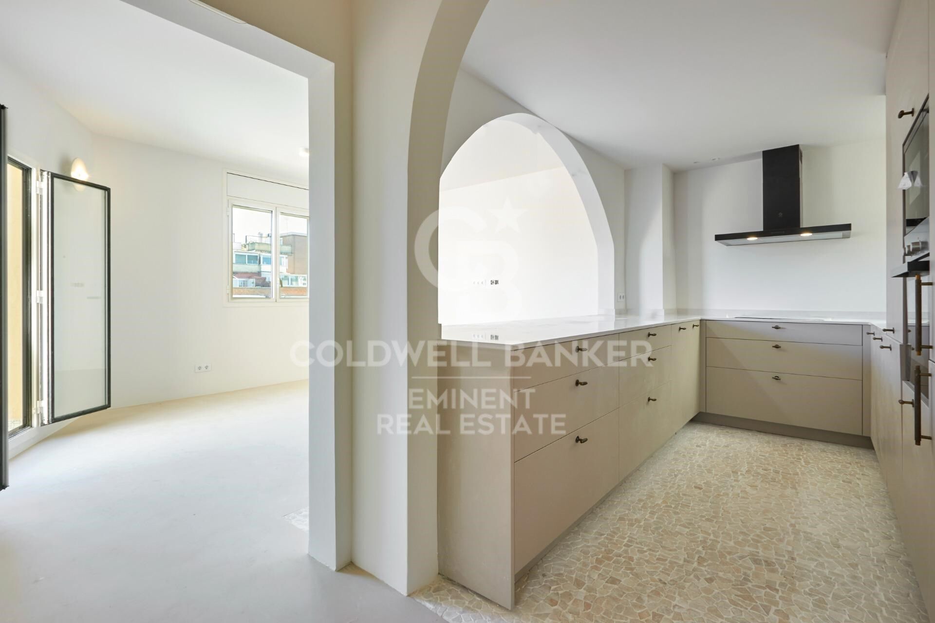 Coldwell Banker Anteris presenta este fantástico ático reformado con terraza privativa en la azotea, ubicado en una de las calles más cotizadas y tranquilas del barrio, rodeado de comercios y todo tipo de servicios. Situado en la última planta de una finca clásica de 1900 con ascensor, este luminoso piso ofrece 131 m² construidos más 41 m² de terraza privada, con una distribución pensada para el confort, la luz natural y la elegancia. Los techos altos y las vigas de madera aportan calidez y carácter, mientras que los suelos de parquet natural y las carpinterías exteriores garantizan confort y estilo. El salón-comedor destaca por su amplitud y luminosidad gracias a sus cuatro balcones, la cocina americana está completamente equipada con electrodomésticos integrados y una pequeña vinoteca. Todo ello con el caracter añadido que ofrecen las bigas de madera en el techo. La zona de noche incluye un dormitorio doble en suite y el dormitorio principal en suite con vestidor y un balcón exterior con luz de mañana. Además, existe un proyecto del arquitecto para convertir la propiedad en tres habitaciones, lo que aporta flexibilidad a futuros propietarios. Entre sus características, destacan instalaciones renovadas, aire acondicionado por conductos, techos con vigas de madera, suelos de parquet natural y carpintería exterior de doble acristalamiento, garantizando confort, eficiencia y estilo. Gracias a su ubicación privilegiada, a pocos pasos de tiendas, cafés, mercados locales y transporte público, este ático es ideal tanto como vivienda lista para entrar a vivir como excelente inversión en un barrio consolidado y con alta demanda en Barcelona. Un hogar con luz, diseño y carácter que combina la exclusividad de una terraza privada con la comodidad de vivir en pleno corazón de la ciudad. ¡Contáctanos y agenda tu visita! #ref:AV255