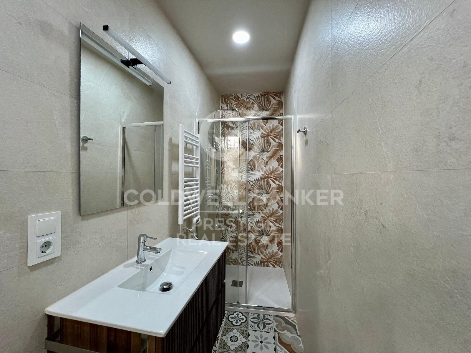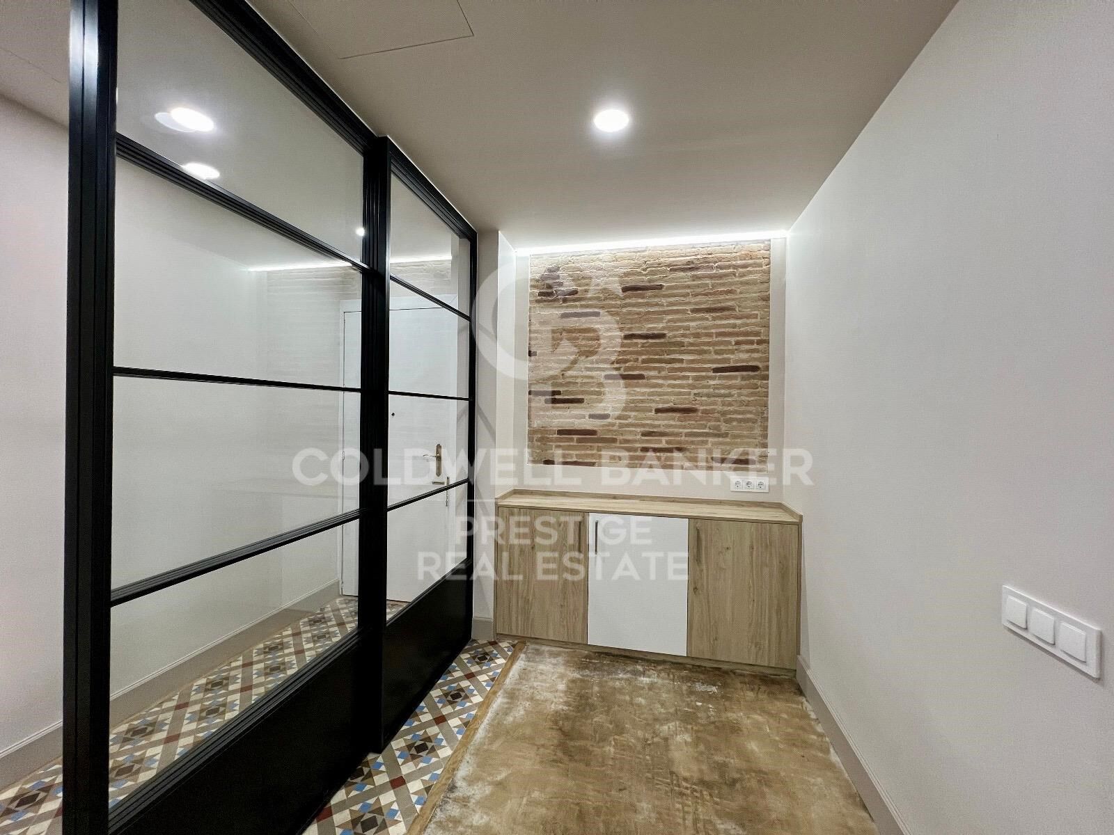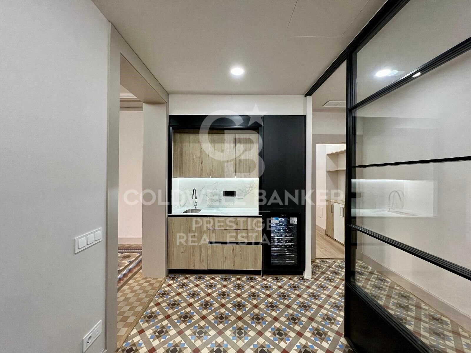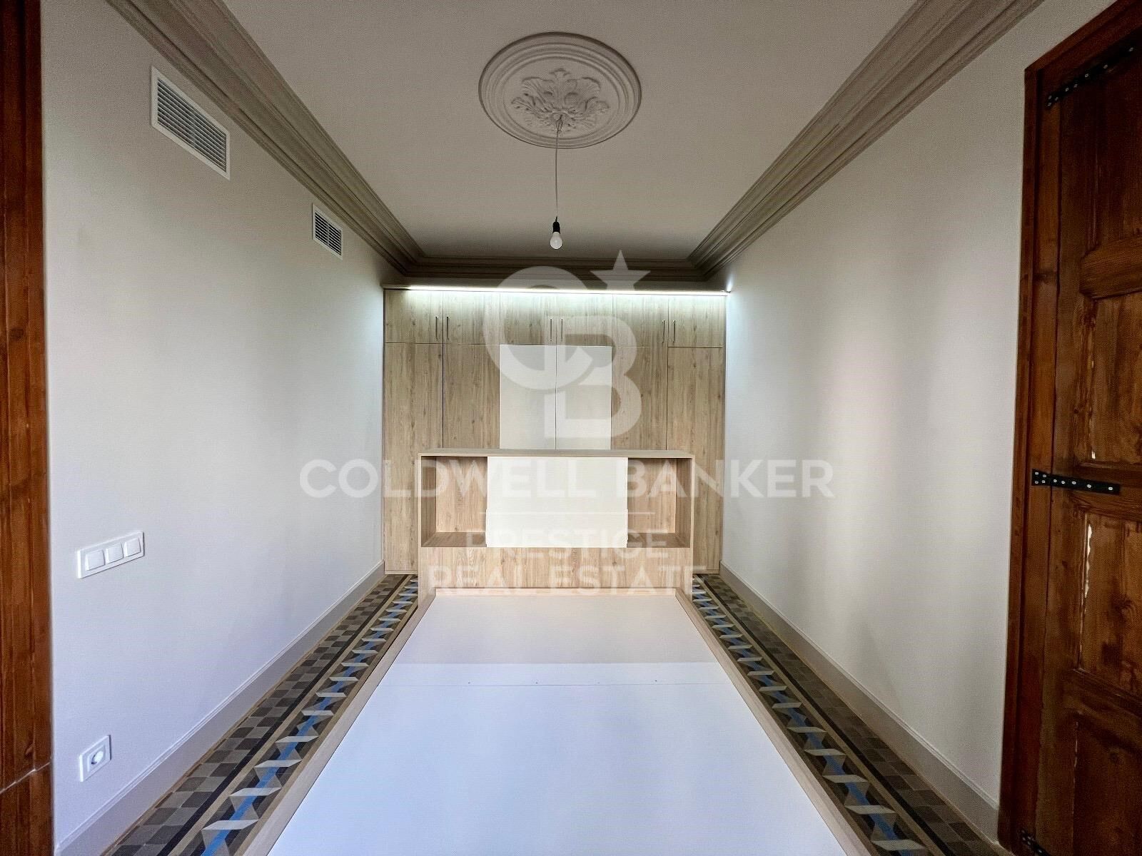 Descubre un hogar con carácter propio en plena Gran Vía, donde la historia y la modernidad conviven en perfecta armonía. Ubicado en una quinta planta, este piso ha sido renovado con gusto y funcionalidad, manteniendo la esencia arquitectónica original del edificio. Desde el primer momento, destacan los techos altos de 3,7 metros, que amplifican la luz natural y aportan una sensación única de amplitud. El pavimento de mosaico hidráulico, cuidadosamente preservado, añade un toque artístico y aporta personalidad a cada estancia. La reforma integral combina materiales contemporáneos con elementos clásicos, logrando un equilibrio entre estética y confort. La vivienda disfruta de doble orientación, lo que garantiza luminosidad constante y una ventilación cruzada excepcional. Las estancias principales se asoman a la Gran Vía, permitiéndote sentir la energía del centro urbano desde una perspectiva privilegiada. En contraste, el extremo posterior de la vivienda ofrece un refugio de calma: una práctica terraza cubierta que se convierte en un espacio ideal para desconectar, leer o disfrutar de un momento al aire libre sin renunciar a la privacidad, un verdadero lujo en esta zona tan solicitada de la ciudad. Cada elemento del piso ha sido pensado para aportar bienestar y practicidad en el día a día. Tanto si te gusta compartir momentos con invitados bajo sus imponentes techos como si prefieres relajarte en tu terraza, esta vivienda te ofrece luz, comodidad y carácter en una de las ubicaciones más emblemáticas de Barcelona. Para más información o para concertar una visita, no dudes en ponerte en contacto con nosotros. #ref:CBES2747 (2)