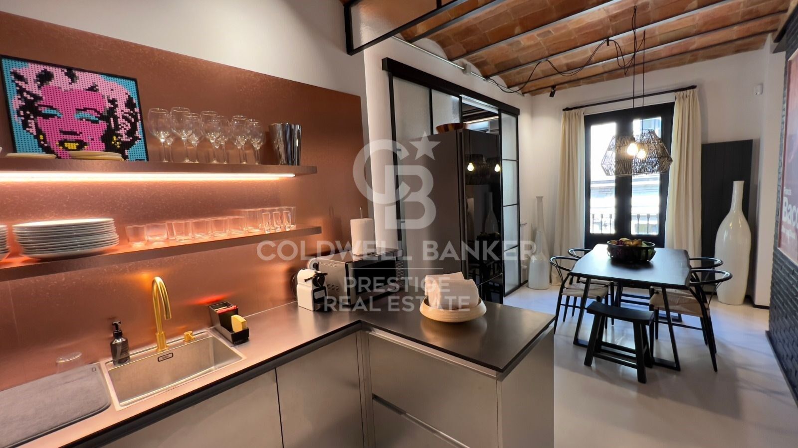 Con una superficie de 79 m², la propiedad combina la autenticidad de los techos altos con bóvedas catalanas con la comodidad de un diseño y arte contemporáneo. Grandes ventanales aportan abundante luz natural a cada estancia.