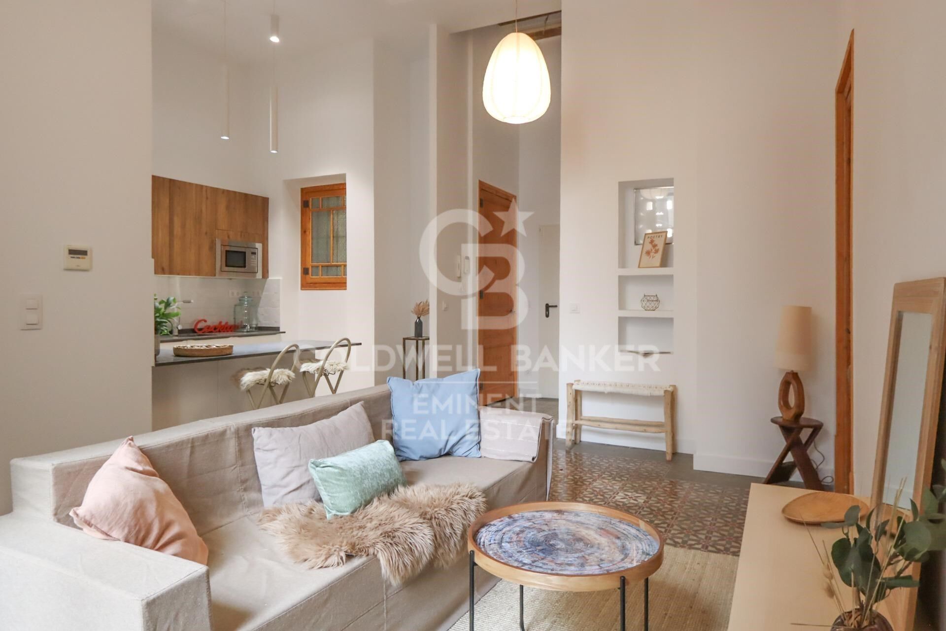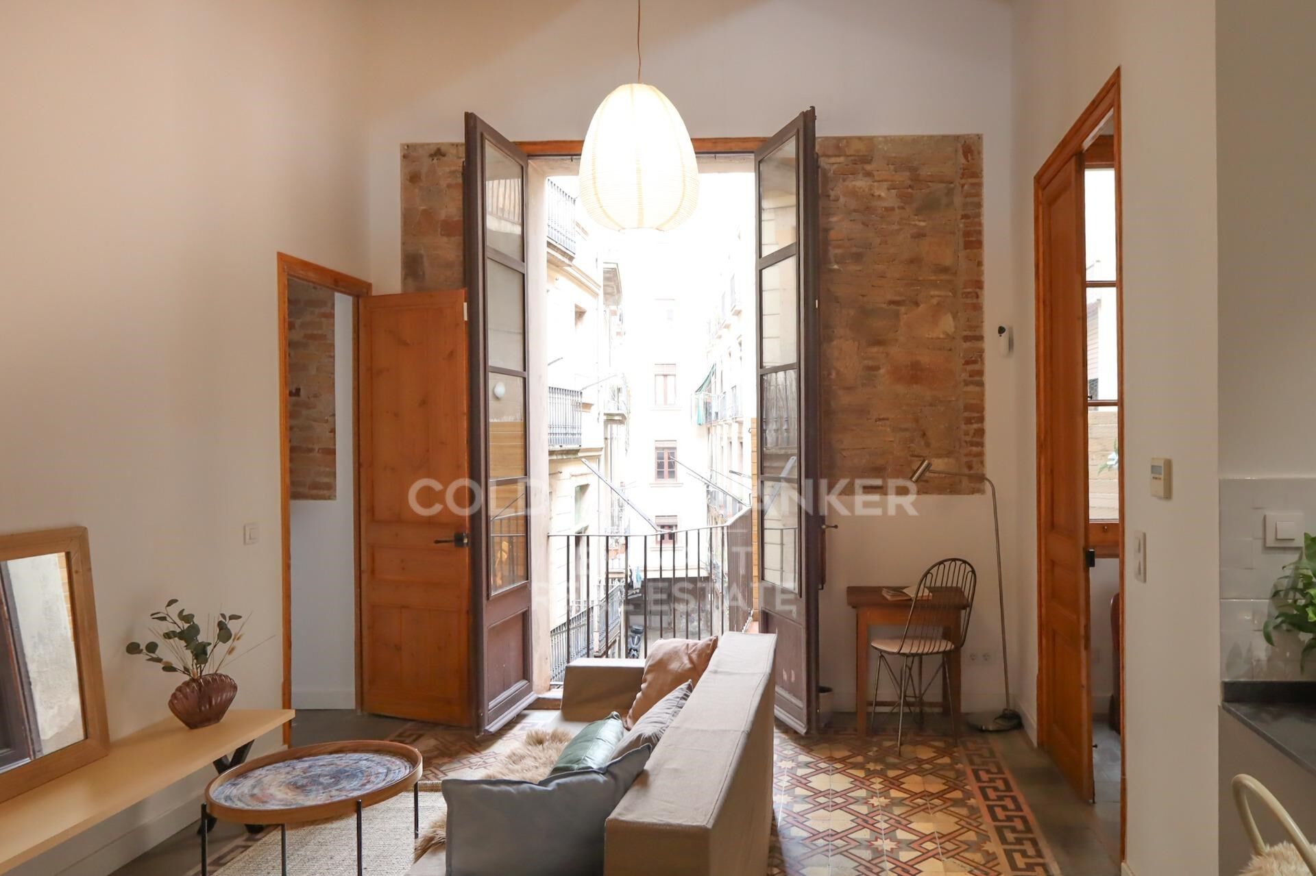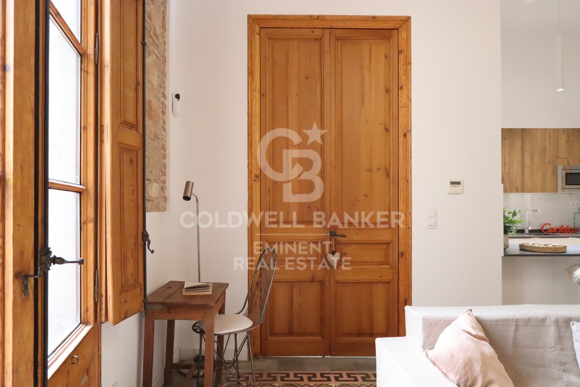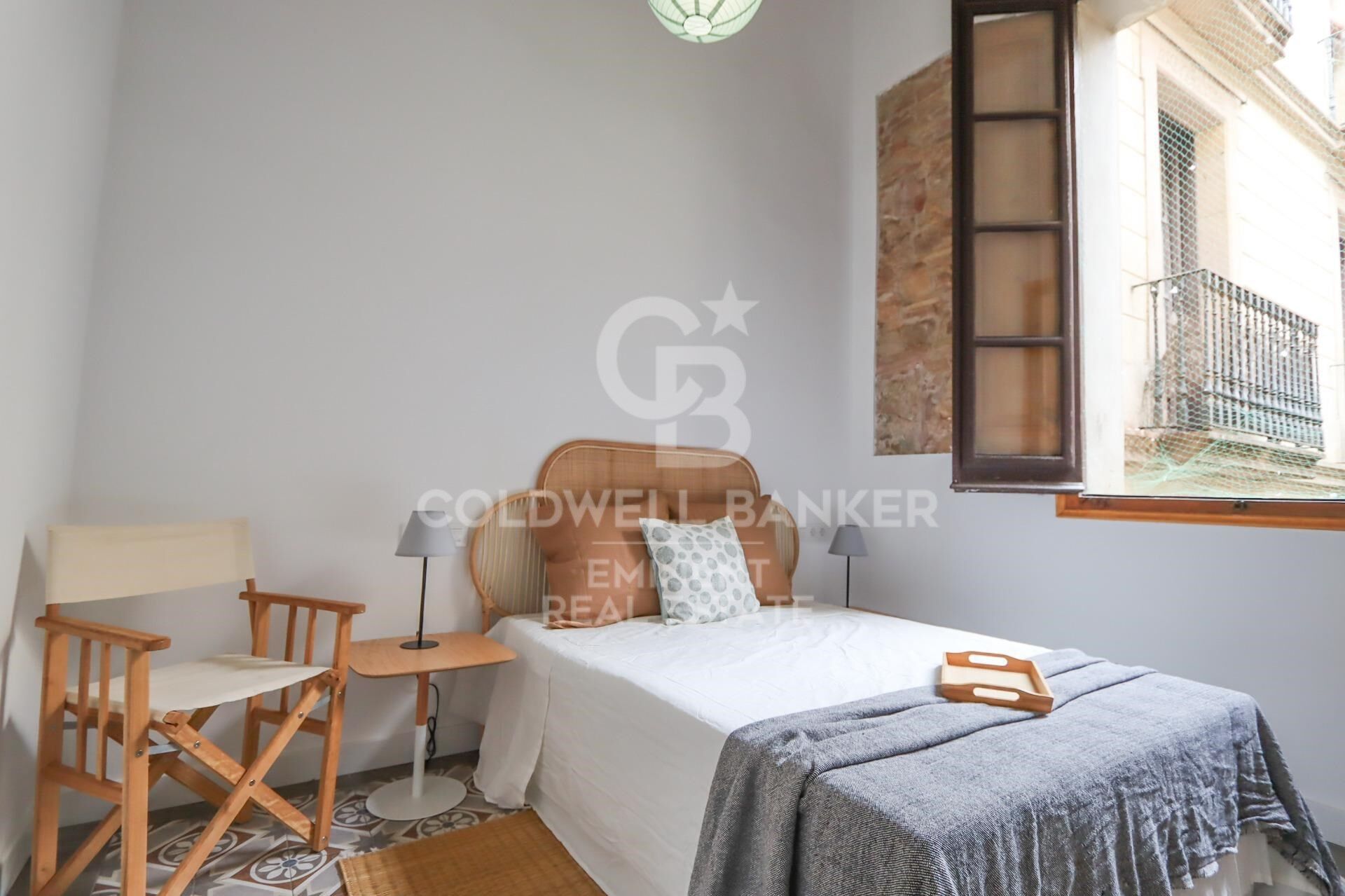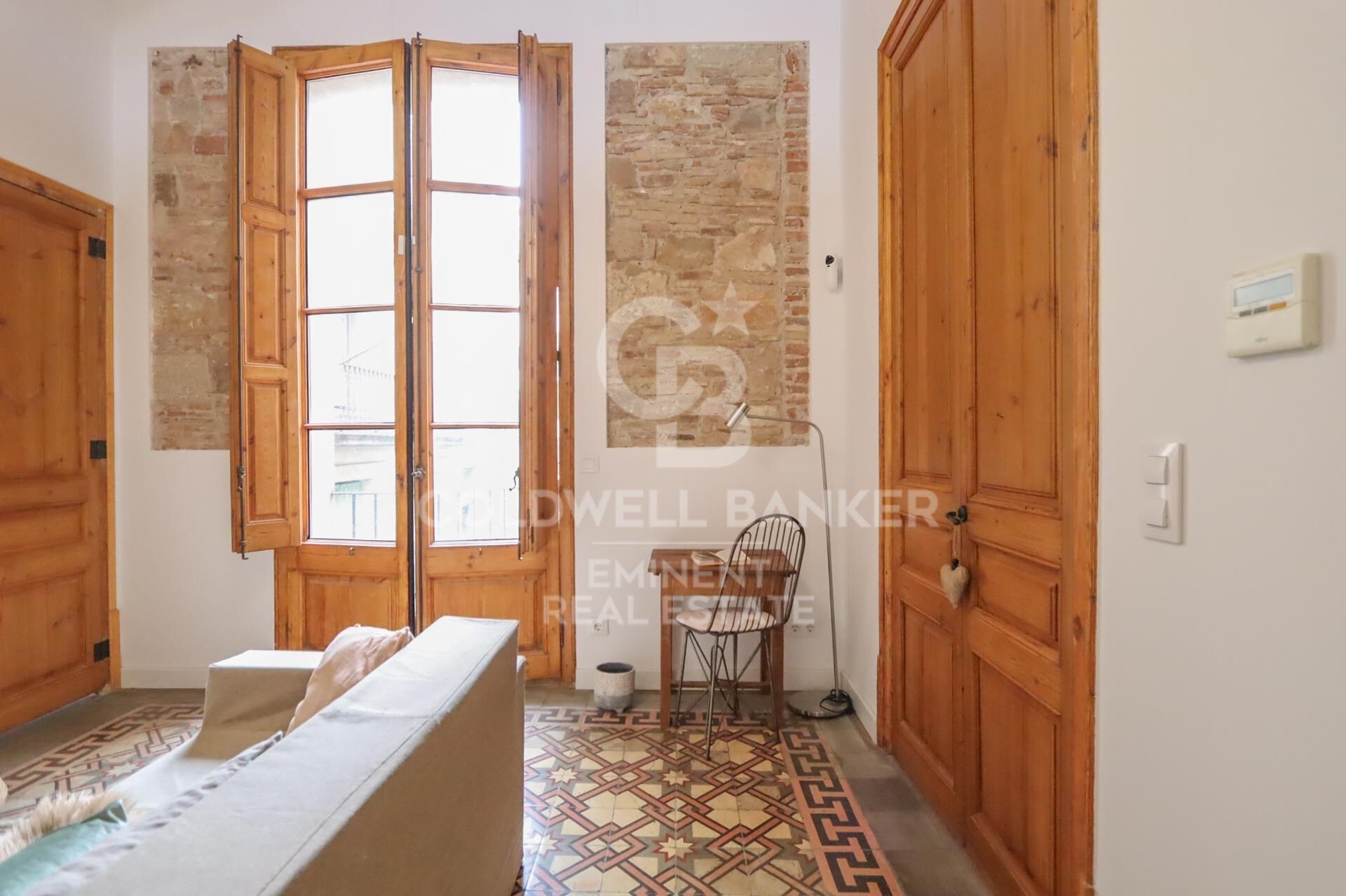 Coldwell Banker Eminent tiene el agrado de poner a su disposición esta vivienda de 85m2, totalmente reformada a nuevo, ubicada a escasos metros de La Rambla, en pleno corazón del Barrio Gótico. . . Se trata de la restauración de dos pisos ubicados en la segunda planta de un edificio del Siglo XVIII que conserva restos de un antiguo edificio de los siglos XV y XVI, el cual fue la sede de la procuraduría de Montserrat en Barcelona. La reforma ha sido realizada con materiales de alta calidad, cuidando los materiales originales y resaltando su belleza u esplendor original. El Departamento de Patrimonio de Barcelona ha supervisado y aprobado las obras, así encontramos suelos hidráulicos originales restaurados, pinturas originales en los techos y en algunas paredes se puede apreciar la piedra original. . . La entrada del edificio se encuentra en una calle peatonal privada a la que sólo pueden acceder los residentes de los pisos que quedan dentro, lo cual garantiza privacidad y tranquilidad.. . Los techos son de 4,5 metros de altura y se ha podido conservar la volta catalana decorada original, y las ventanas alcanzan una altura de 3,20 metros lo cual brinda mucha luz natural en cada ambiente ya que todas las habitaciones tienen ventanas exteriores. Las puertas y ventanas se han restaurado y se les ha ha puesto cristales dobles climalit para mejorar el rendimiento energético, conservando tanto el frío como el calor según la época del año. . Todas las instalaciones eléctricas y de cañerías son nuevas y se ha instalado un sistema de climatización para todas las estancias de la vivienda. . La idea de este proyecto ha sido respetar la historia del edificio agregando tecnología y confort actuales. . . La cocina americana está integrada y totalmente equipada con horno, horno microondas, y lavavajillas. . El baño posee una amplia ducha con hidromasaje, y estantería empotrada. Mediante el salón comedor se accede a una terraza privada de 7m2. . . Las dos habitaciones dobles permiten organizar un espacio confortable para el relax y el descanso. Ambas dan a una pasaje muy tranquilo, lo cual genera una atmósfera bucólica. . Hay un trastero espacioso y alto con conexión para la lavadora y espacio para almacenamiento.. . El salón cuenta con una hermosa ventana a una de las esculturas de la fachada del edificio.. . Todas las instalaciones son nuevas, y un sistema de aire acondicionado por conducto en todas las habitaciones garantiza la temperatura perfecta durante todo el año.. . Si quiere adquirir una propiedad única, en una ubicación inmejorable, no dude en concertar una visita con nosotros. Estamos a su disposición
