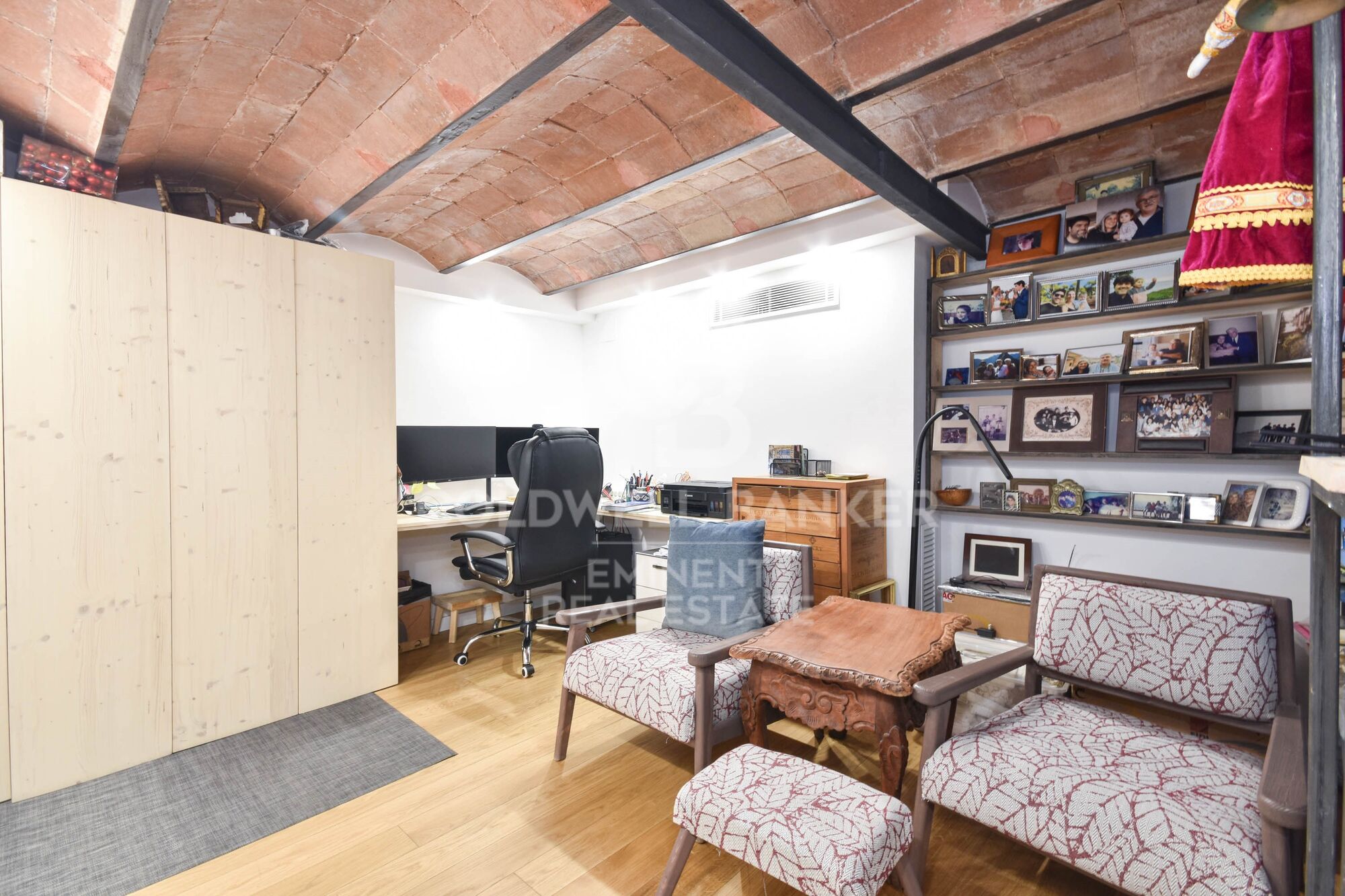 Este apartamento de 164 m² construidos (157 m² útiles) está ubicado en la planta entresuelo de un edificio emblemático y fue completamente renovado en 2022 con materiales de altísima calidad. Parte de la propiedad incluye una de las torres de la muralla, que actualmente alberga un despacho con techos abovedados, un verdadero homenaje a la historia de Barcelona. El apartamento conserva también suelos hidráulicos originales en algunas zonas, perfectamente restaurados para resaltar el carácter único de la vivienda.