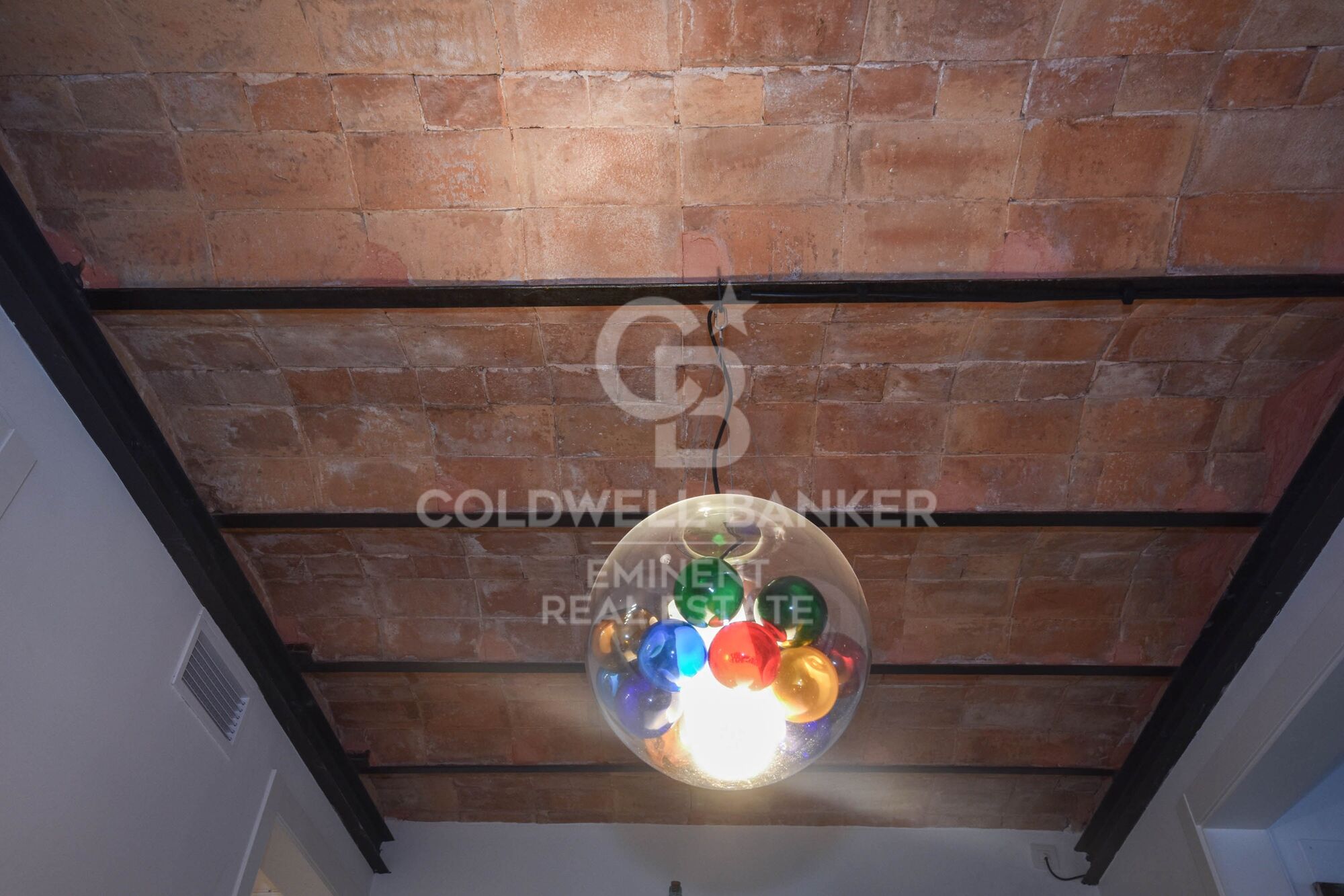 Elementos arquitectónicos distintivos, como techos abovedados catalanes, paredes de ladrillo visto y detalles decorativos históricos que crean un ambiente cálido y sofisticado.