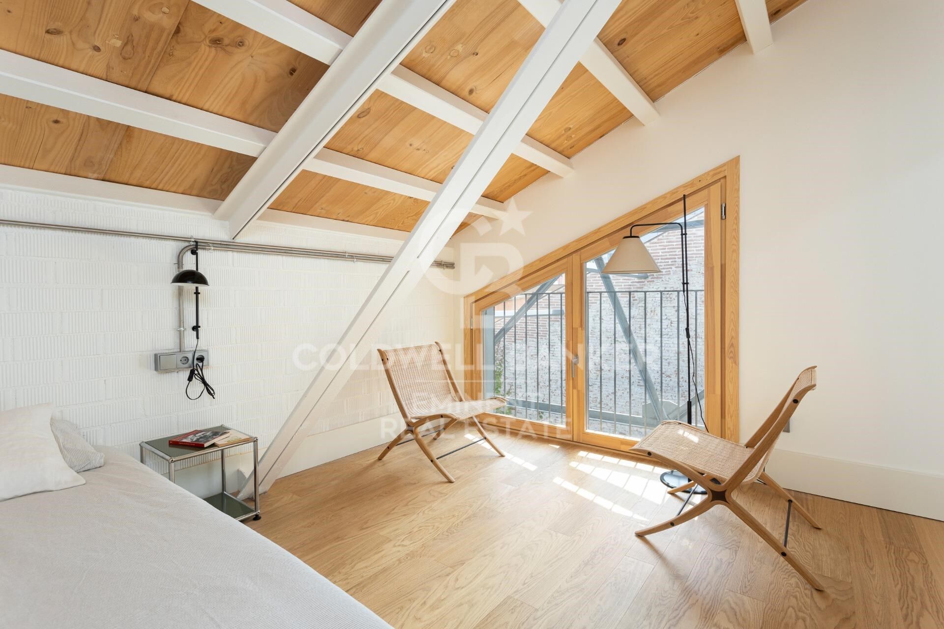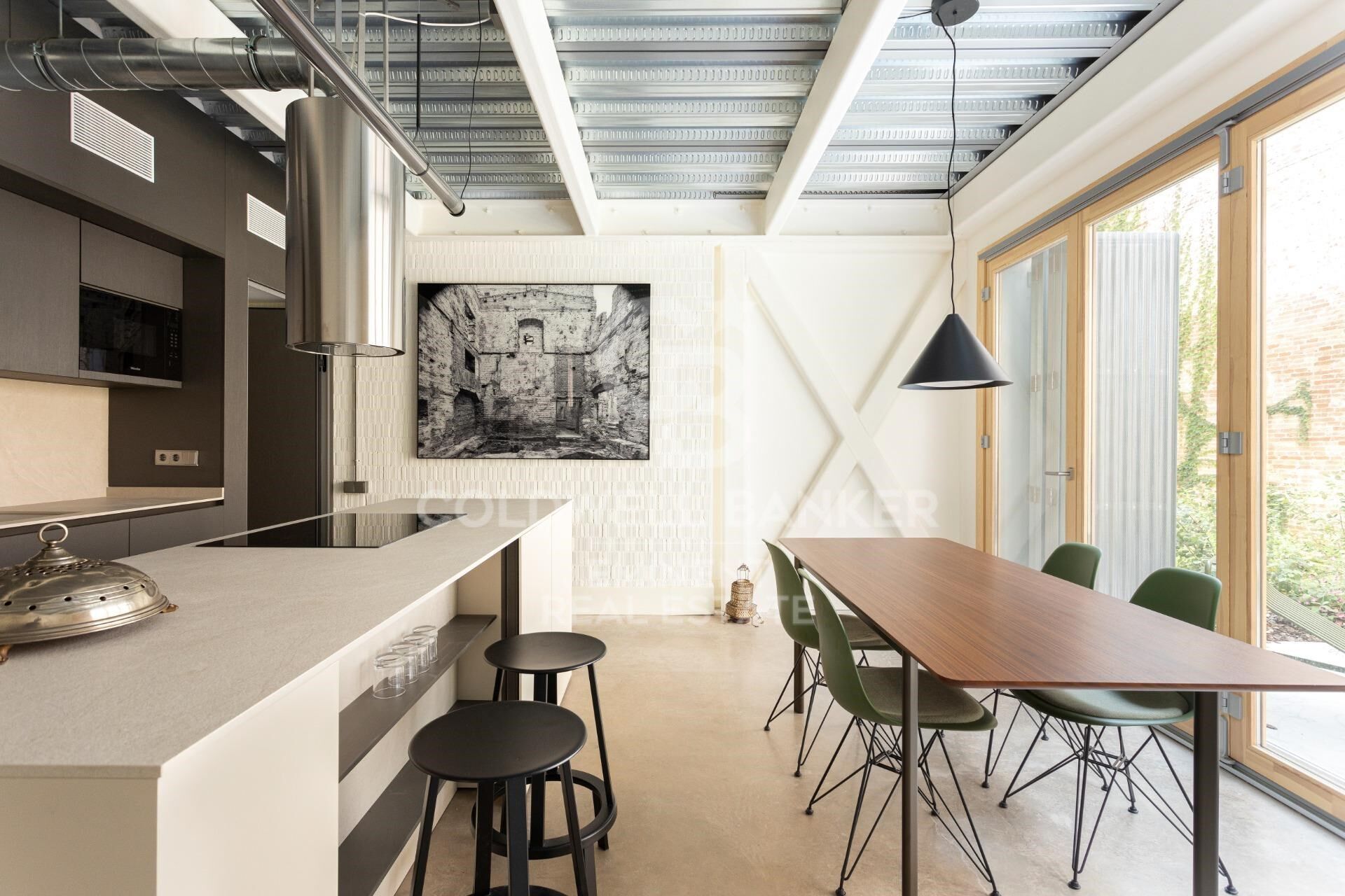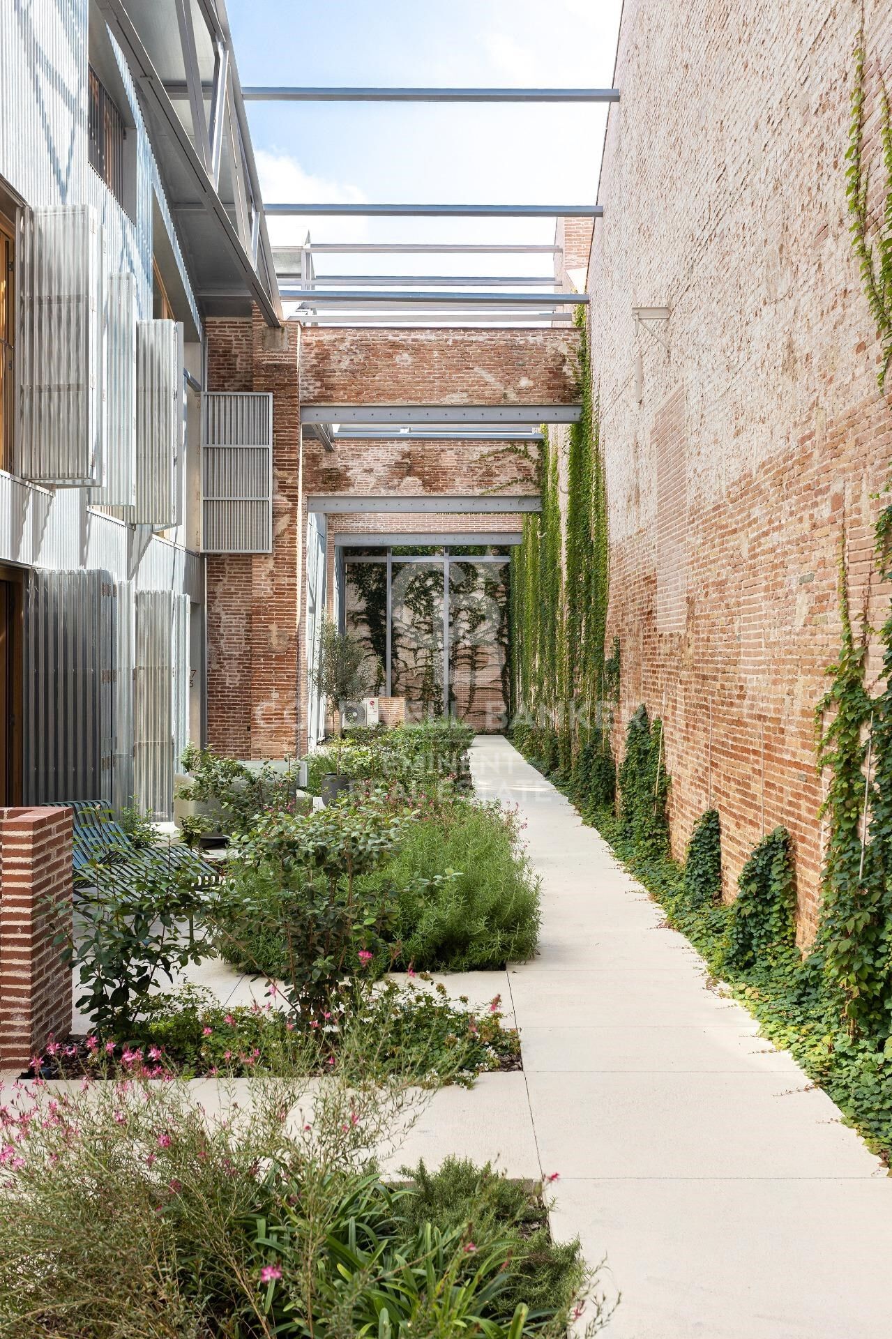 Los 4 lofts de la Nave C se ubican al lado de la icónica chimenea de Can Ricart. Magníficos volúmenes, terrazas interiores, jardines exteriores privados, lucernarios en viviendas con doble altura y un altillo abierto, ideal como zona de estudio o de trabajo.