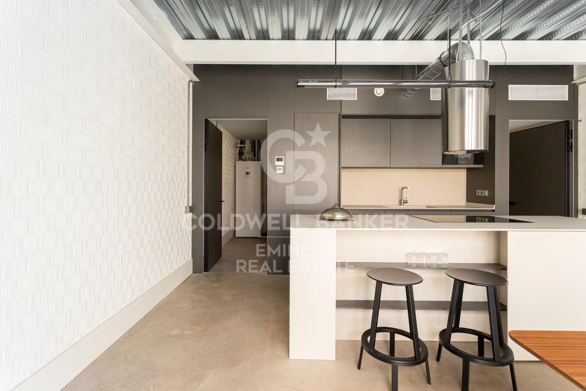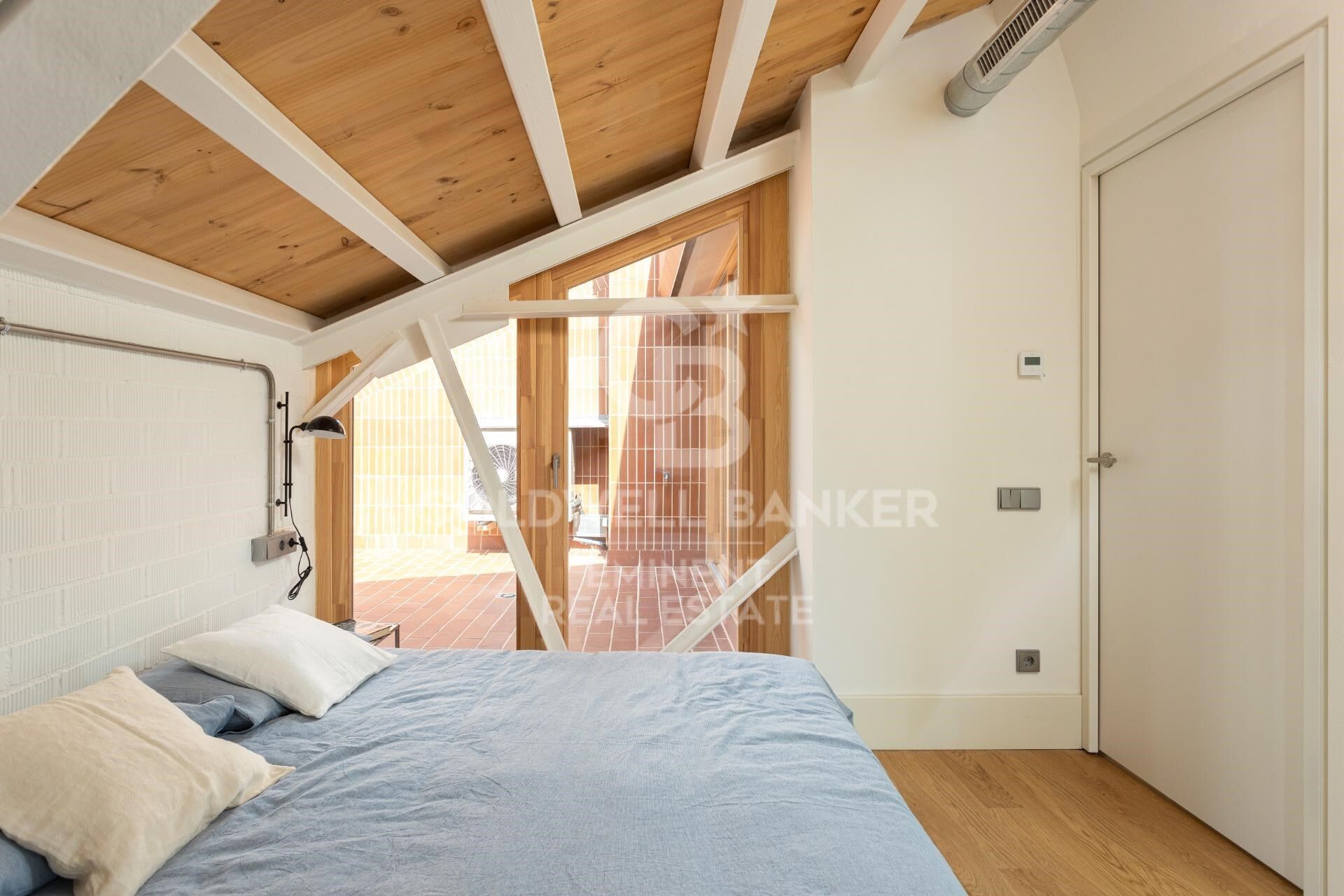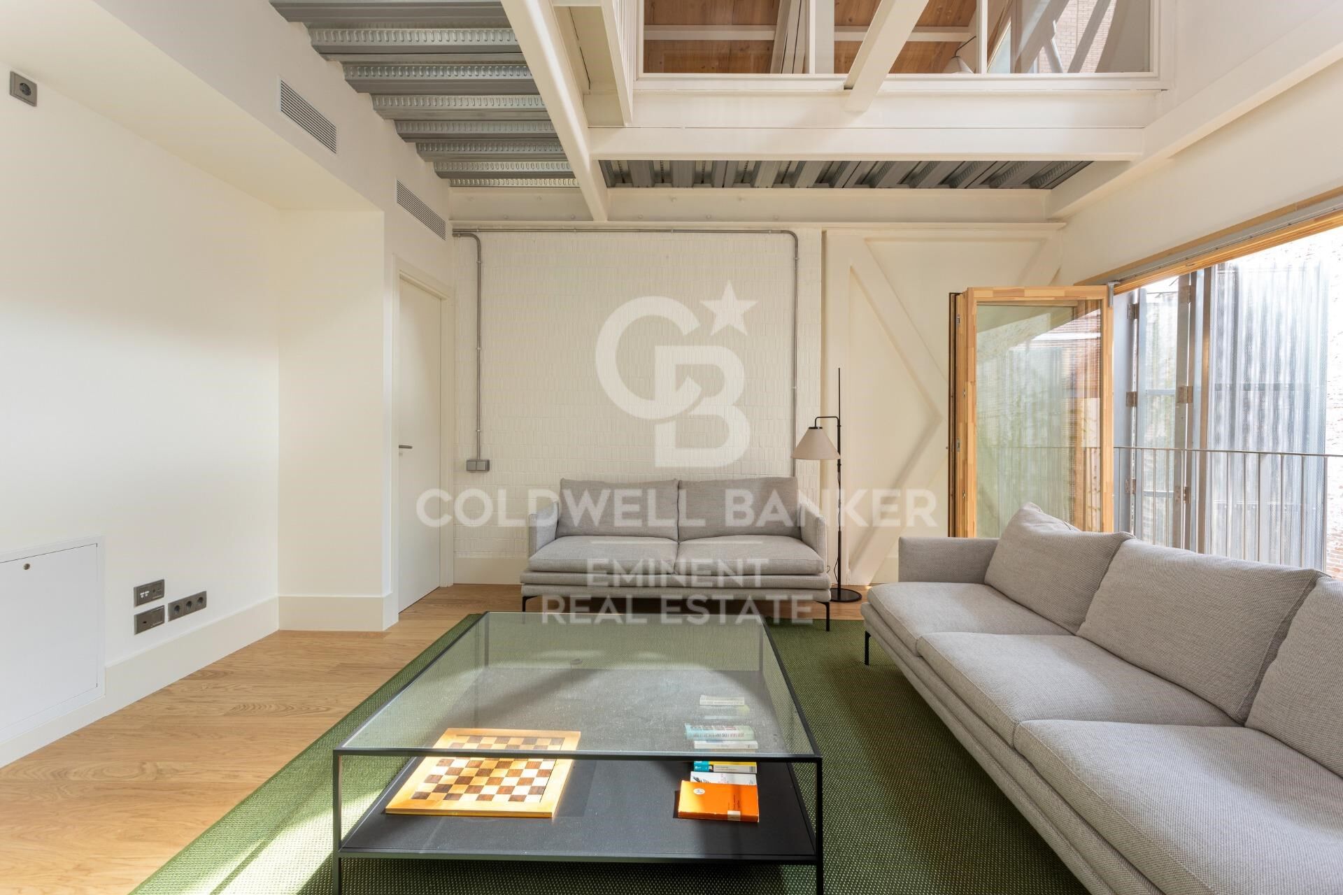 Los 4 lofts de la Nave C se ubican al lado de la icónica chimenea de Can Ricart. Magníficos volúmenes, terrazas interiores, jardines exteriores privados, lucernarios en viviendas con doble altura y un altillo abierto, ideal como zona de estudio o de trabajo.