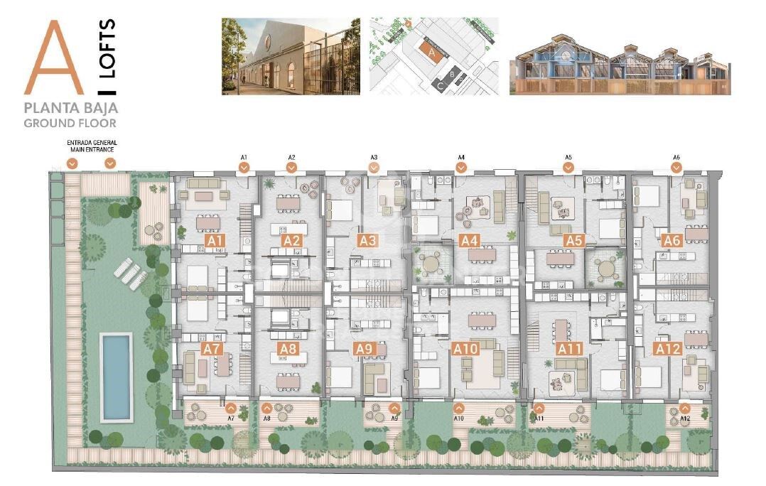 La más grande de las 4 construcciones históricas la nave A, presenta 12 lofts, 2 de ellos triplex, y cuenta con piscina comunitaria. Se han recuperado los arcos originales en las fachadas patrimoniales, y se han reinterpretado los portones para dar un luminoso acceso a las viviendas. Se ha desplazado la fachada posterior para generar un pasaje longitudinal exterior íntimo y agradable.