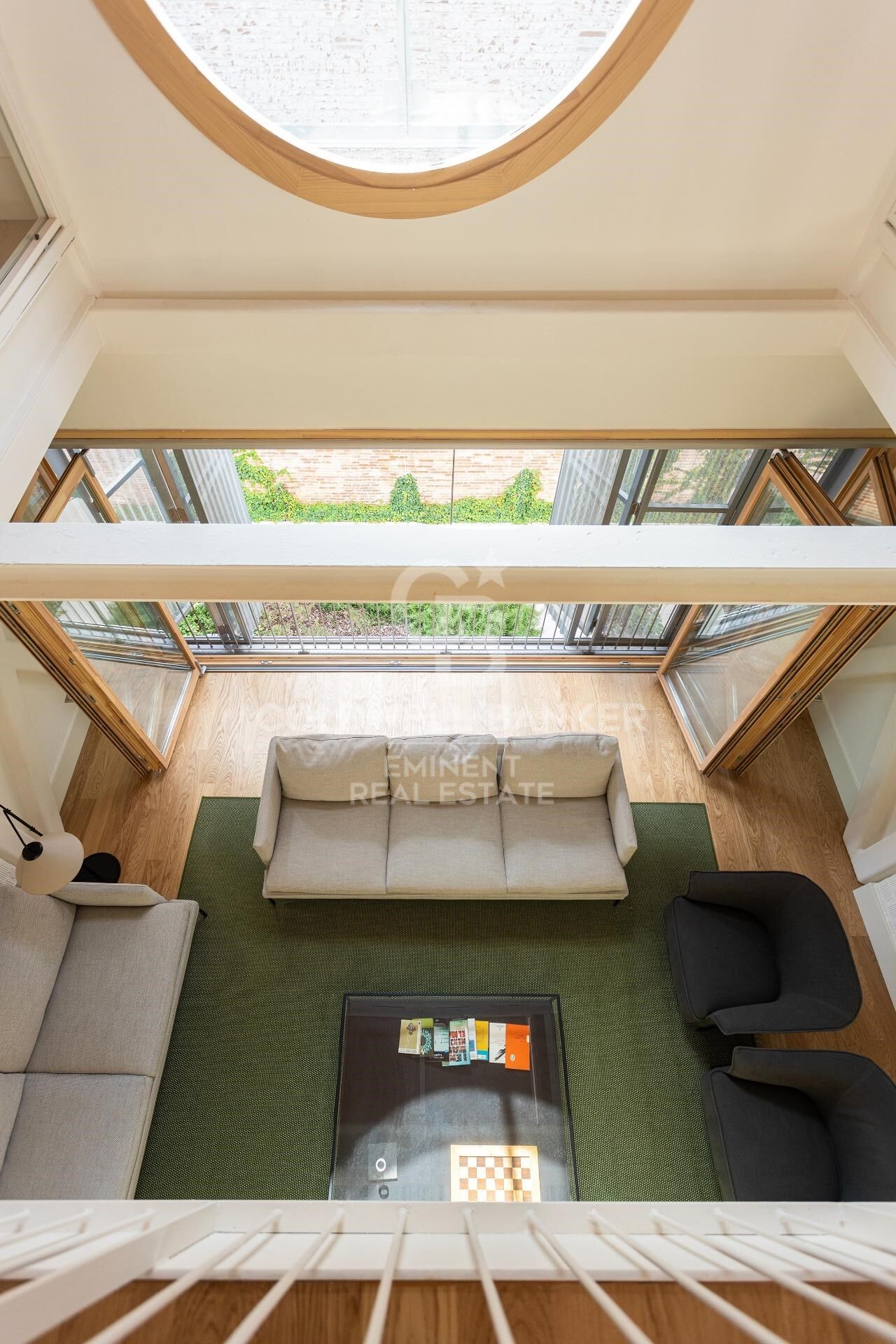 Los 4 lofts de la Nave C se ubican al lado de la icónica chimenea de Can Ricart. Magníficos volúmenes, terrazas interiores, jardines exteriores privados, lucernarios en viviendas con doble altura y un altillo abierto, ideal como zona de estudio o de trabajo.