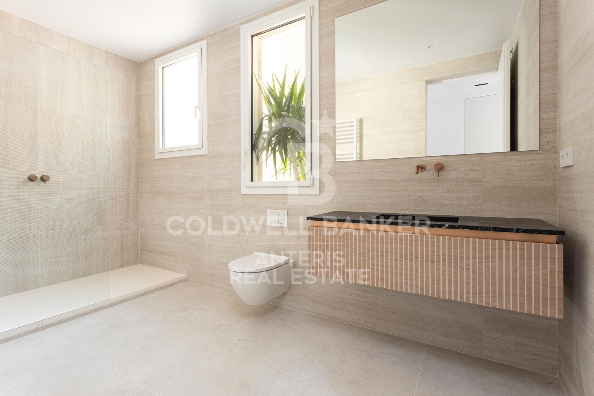 La zona de noche dispone de tres dormitorios dobles. El dormitorio principal cuenta con vestidor y baño en suite con bañera y ducha. El segundo dormitorio también dispone de baño en suite, y el tercero cuenta con baño completo propio. La vivienda se completa con un aseo de cortesía, zona de lavandería independiente y espacios de almacenamiento.