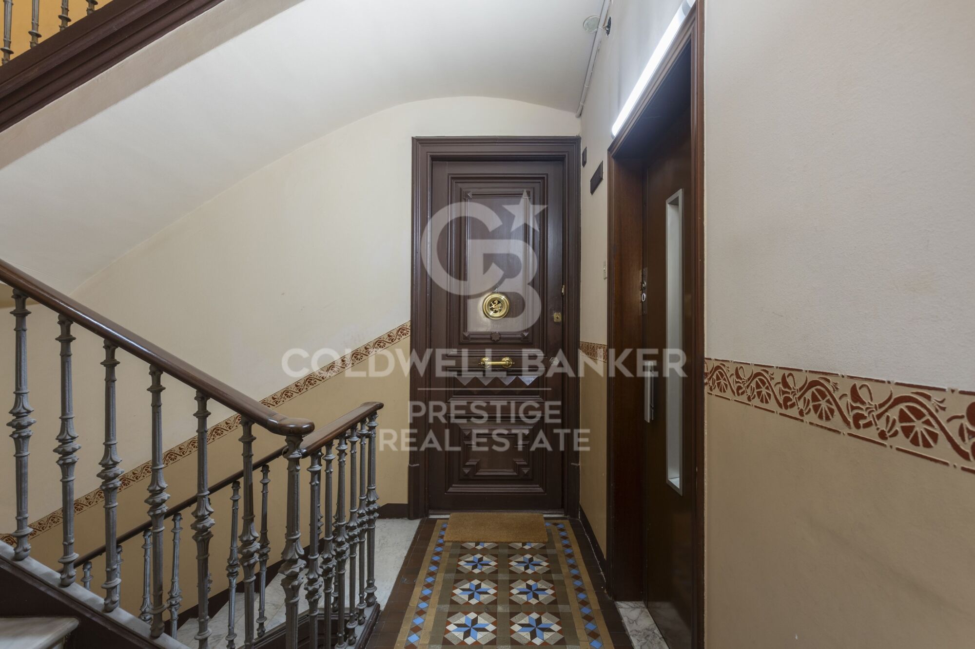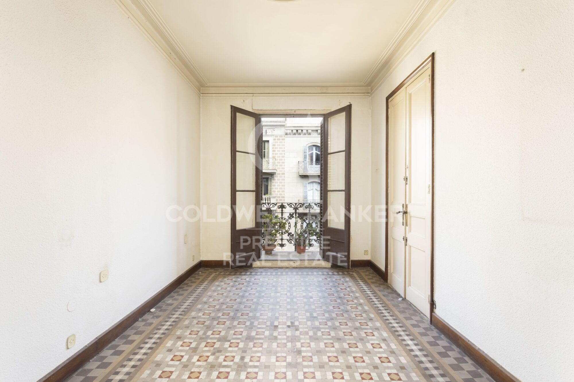 Descubre un hogar con carácter propio en plena Gran Vía, donde la historia y la modernidad conviven en perfecta armonía. Ubicado en una quinta planta, este piso ha sido renovado con gusto y funcionalidad, manteniendo la esencia arquitectónica original del edificio. Desde el primer momento, destacan los techos altos de 3,7 metros, que amplifican la luz natural y aportan una sensación única de amplitud. El pavimento de mosaico hidráulico, cuidadosamente preservado, añade un toque artístico y aporta personalidad a cada estancia. La reforma integral combina materiales contemporáneos con elementos clásicos, logrando un equilibrio entre estética y confort. La vivienda disfruta de doble orientación, lo que garantiza luminosidad constante y una ventilación cruzada excepcional. Las estancias principales se asoman a la Gran Vía, permitiéndote sentir la energía del centro urbano desde una perspectiva privilegiada. En contraste, el extremo posterior de la vivienda ofrece un refugio de calma: una práctica terraza cubierta que se convierte en un espacio ideal para desconectar, leer o disfrutar de un momento al aire libre sin renunciar a la privacidad, un verdadero lujo en esta zona tan solicitada de la ciudad. Cada elemento del piso ha sido pensado para aportar bienestar y practicidad en el día a día. Tanto si te gusta compartir momentos con invitados bajo sus imponentes techos como si prefieres relajarte en tu terraza, esta vivienda te ofrece luz, comodidad y carácter en una de las ubicaciones más emblemáticas de Barcelona. Para más información o para concertar una visita, no dudes en ponerte en contacto con nosotros. #ref:CBES2747 (2)
