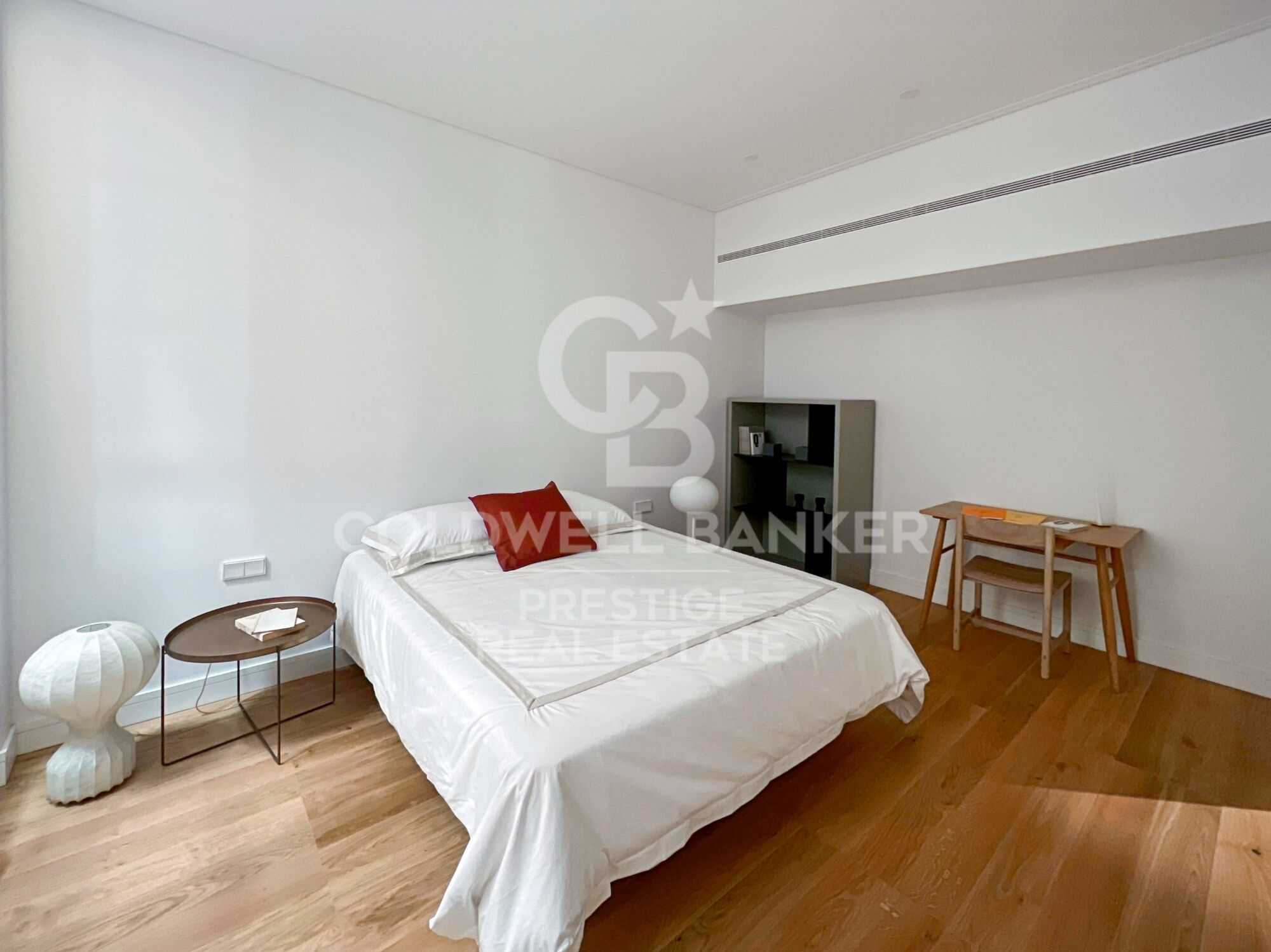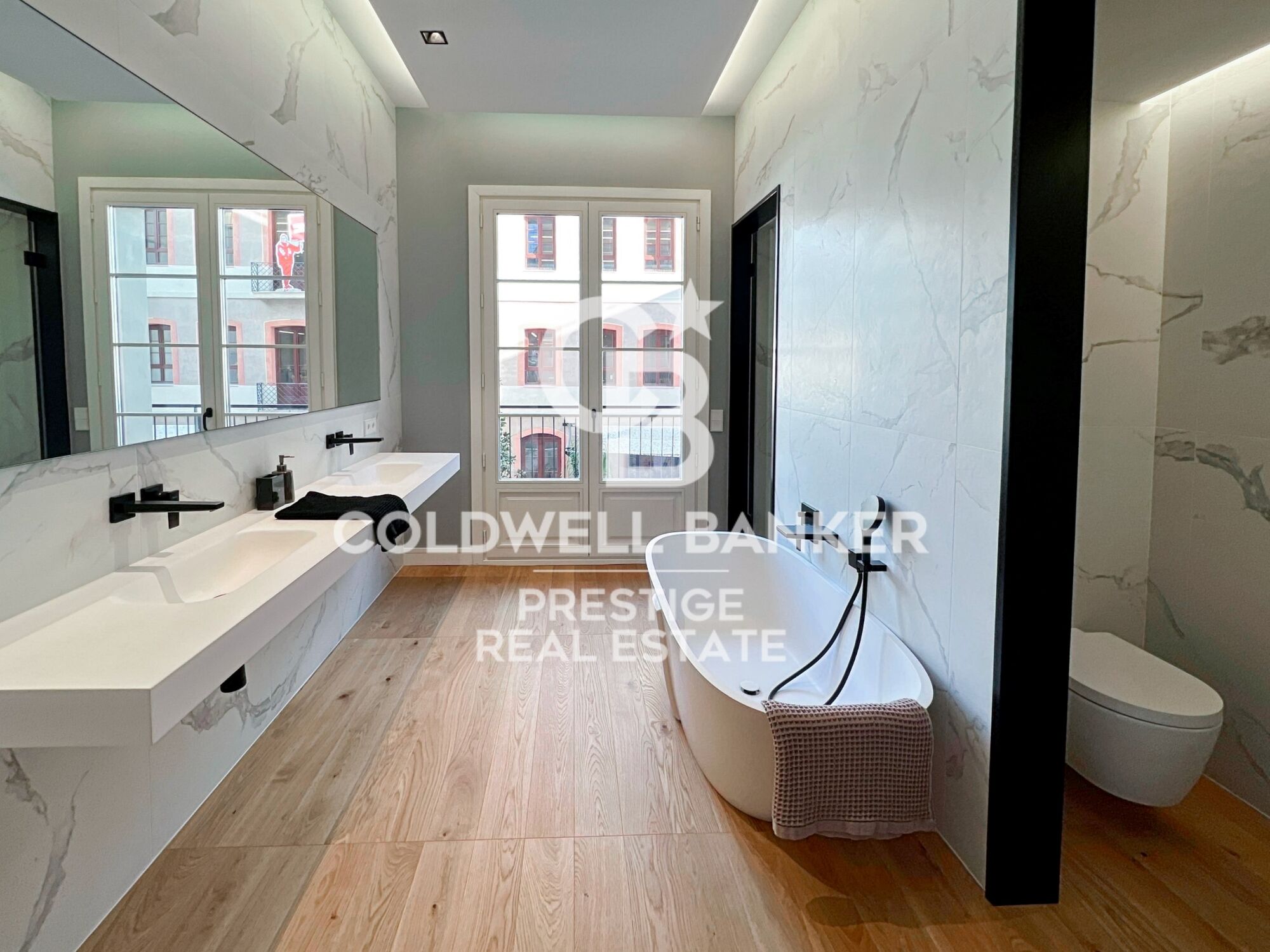 Las viviendas que dan a la calle Girona son apartamentos de dos dormitorios de 114 m2 con amplios baños. Cuentan con seis ventanas simétricas simétricas que dan a la arbolada y próximamente peatonal de la calle de Girona. Su arquitectura de planta abierta está iluminada por una gran cantidad de luz natural.