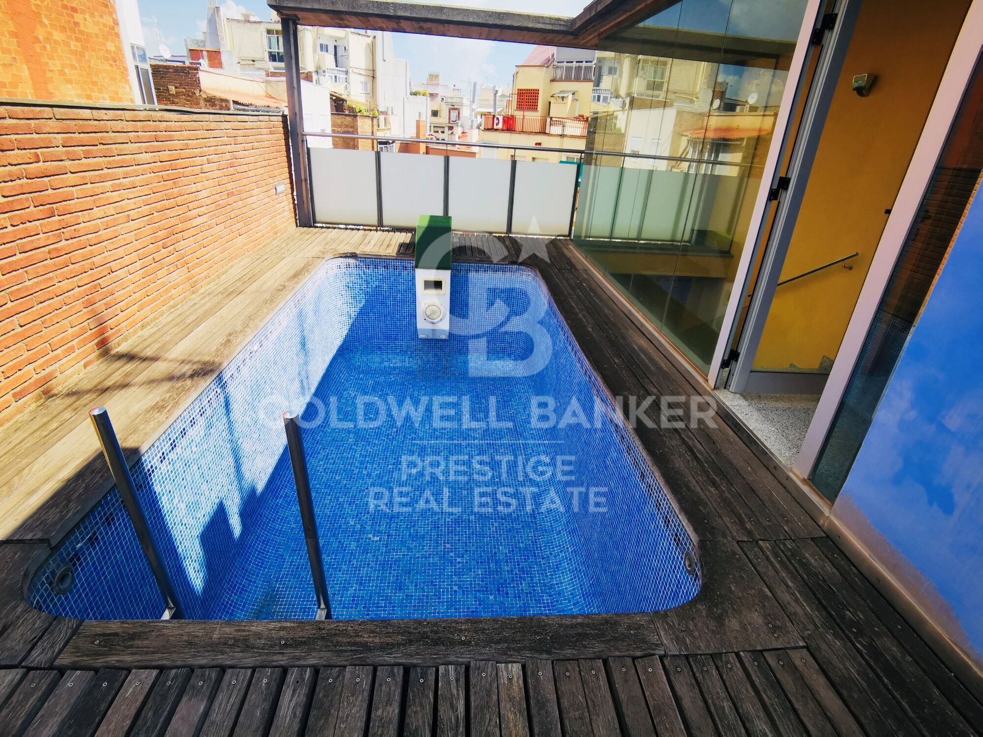 Planta cubierta: Solárium con piscina y vistas directas a la Sagrada Familia, ideal como zona chill-out o terraza de uso común.