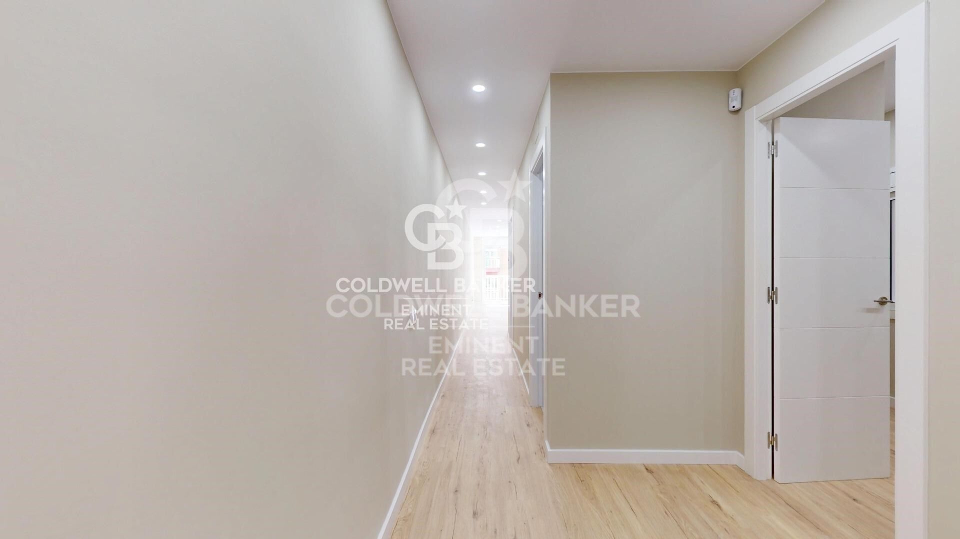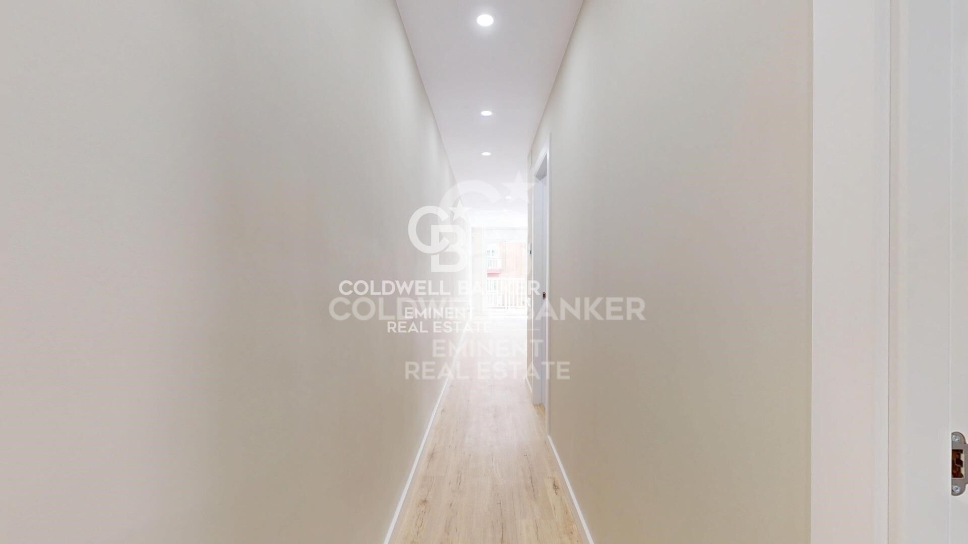 Descubre un hogar con carácter propio en plena Gran Vía, donde la historia y la modernidad conviven en perfecta armonía. Ubicado en una quinta planta, este piso ha sido renovado con gusto y funcionalidad, manteniendo la esencia arquitectónica original del edificio. Desde el primer momento, destacan los techos altos de 3,7 metros, que amplifican la luz natural y aportan una sensación única de amplitud. El pavimento de mosaico hidráulico, cuidadosamente preservado, añade un toque artístico y aporta personalidad a cada estancia. La reforma integral combina materiales contemporáneos con elementos clásicos, logrando un equilibrio entre estética y confort. La vivienda disfruta de doble orientación, lo que garantiza luminosidad constante y una ventilación cruzada excepcional. Las estancias principales se asoman a la Gran Vía, permitiéndote sentir la energía del centro urbano desde una perspectiva privilegiada. En contraste, el extremo posterior de la vivienda ofrece un refugio de calma: una práctica terraza cubierta que se convierte en un espacio ideal para desconectar, leer o disfrutar de un momento al aire libre sin renunciar a la privacidad, un verdadero lujo en esta zona tan solicitada de la ciudad. Cada elemento del piso ha sido pensado para aportar bienestar y practicidad en el día a día. Tanto si te gusta compartir momentos con invitados bajo sus imponentes techos como si prefieres relajarte en tu terraza, esta vivienda te ofrece luz, comodidad y carácter en una de las ubicaciones más emblemáticas de Barcelona. Para más información o para concertar una visita, no dudes en ponerte en contacto con nosotros. #ref:CBES2747 (2)