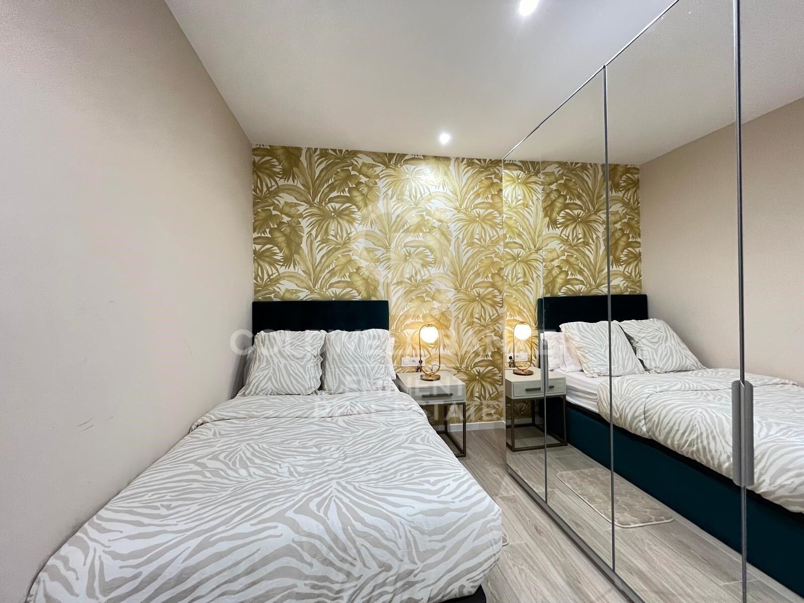 La zona de noche, orientada hacia el exterior, cuenta con cuatro dormitorios. Destaca la suite principal con baño privado y salida a balcón, junto a una segunda habitación doble, también con balcón. En el corazón de la vivienda se ubican dos habitaciones adicionales con luz natural, que comparten un baño completo. La propiedad dispone, además, de calefacción central y aire acondicionado.