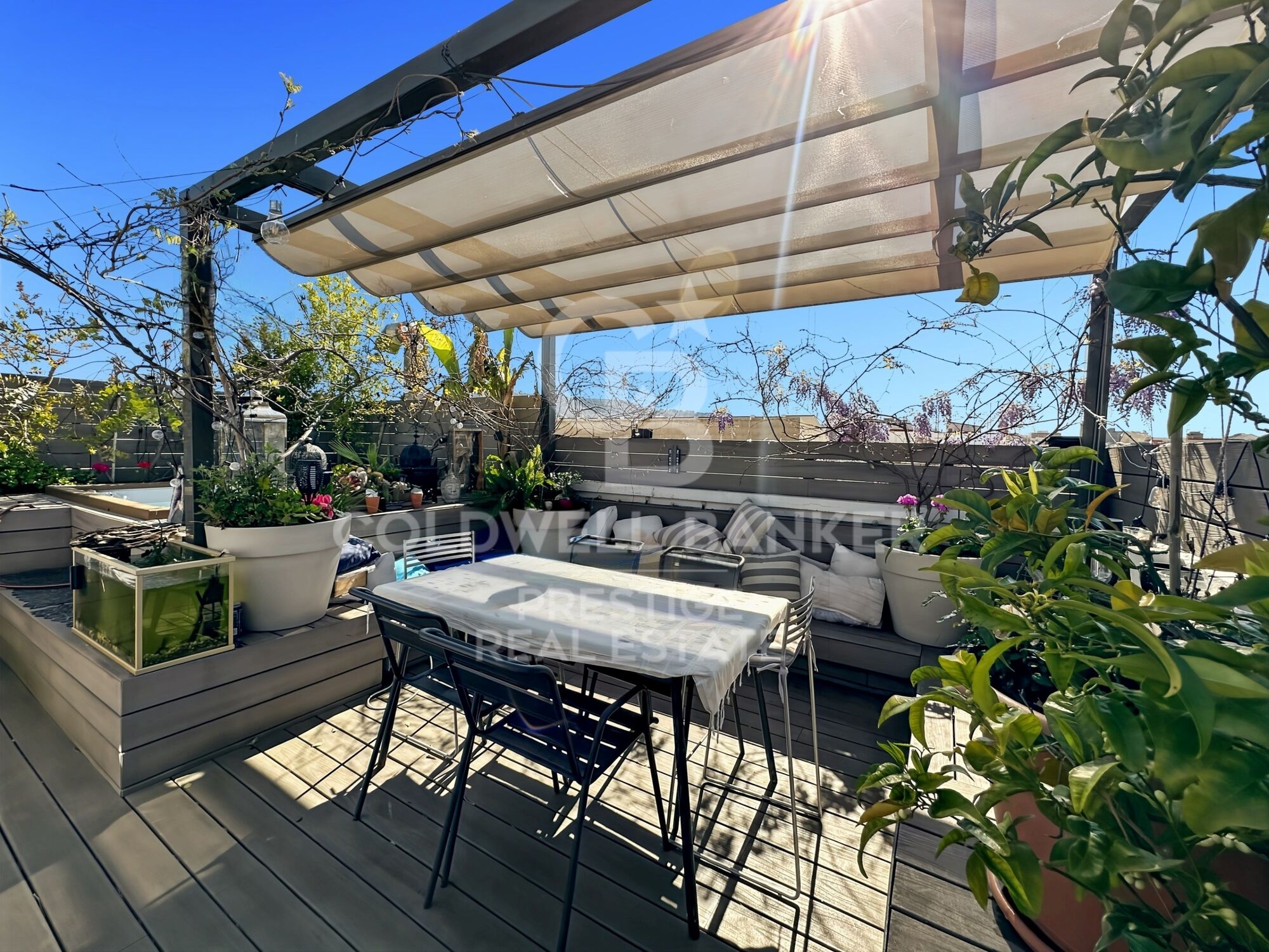 La espectacular terraza principal de 50 m², a cuatro vientos y de uso exclusivo, está diseñada para crear experiencias: zona de barbacoa, espacio lounge, barra exterior, ducha y un fantástico jacuzzi. Un lugar perfecto para disfrutar del sol, organizar reuniones inolvidables o convertir cualquier día en una celebración.
