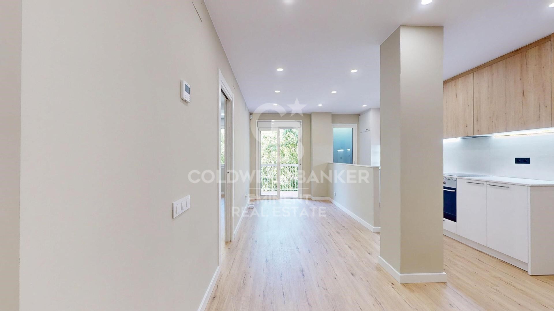 Descubre un hogar con carácter propio en plena Gran Vía, donde la historia y la modernidad conviven en perfecta armonía. Ubicado en una quinta planta, este piso ha sido renovado con gusto y funcionalidad, manteniendo la esencia arquitectónica original del edificio. Desde el primer momento, destacan los techos altos de 3,7 metros, que amplifican la luz natural y aportan una sensación única de amplitud. El pavimento de mosaico hidráulico, cuidadosamente preservado, añade un toque artístico y aporta personalidad a cada estancia. La reforma integral combina materiales contemporáneos con elementos clásicos, logrando un equilibrio entre estética y confort. La vivienda disfruta de doble orientación, lo que garantiza luminosidad constante y una ventilación cruzada excepcional. Las estancias principales se asoman a la Gran Vía, permitiéndote sentir la energía del centro urbano desde una perspectiva privilegiada. En contraste, el extremo posterior de la vivienda ofrece un refugio de calma: una práctica terraza cubierta que se convierte en un espacio ideal para desconectar, leer o disfrutar de un momento al aire libre sin renunciar a la privacidad, un verdadero lujo en esta zona tan solicitada de la ciudad. Cada elemento del piso ha sido pensado para aportar bienestar y practicidad en el día a día. Tanto si te gusta compartir momentos con invitados bajo sus imponentes techos como si prefieres relajarte en tu terraza, esta vivienda te ofrece luz, comodidad y carácter en una de las ubicaciones más emblemáticas de Barcelona. Para más información o para concertar una visita, no dudes en ponerte en contacto con nosotros. #ref:CBES2747 (2)