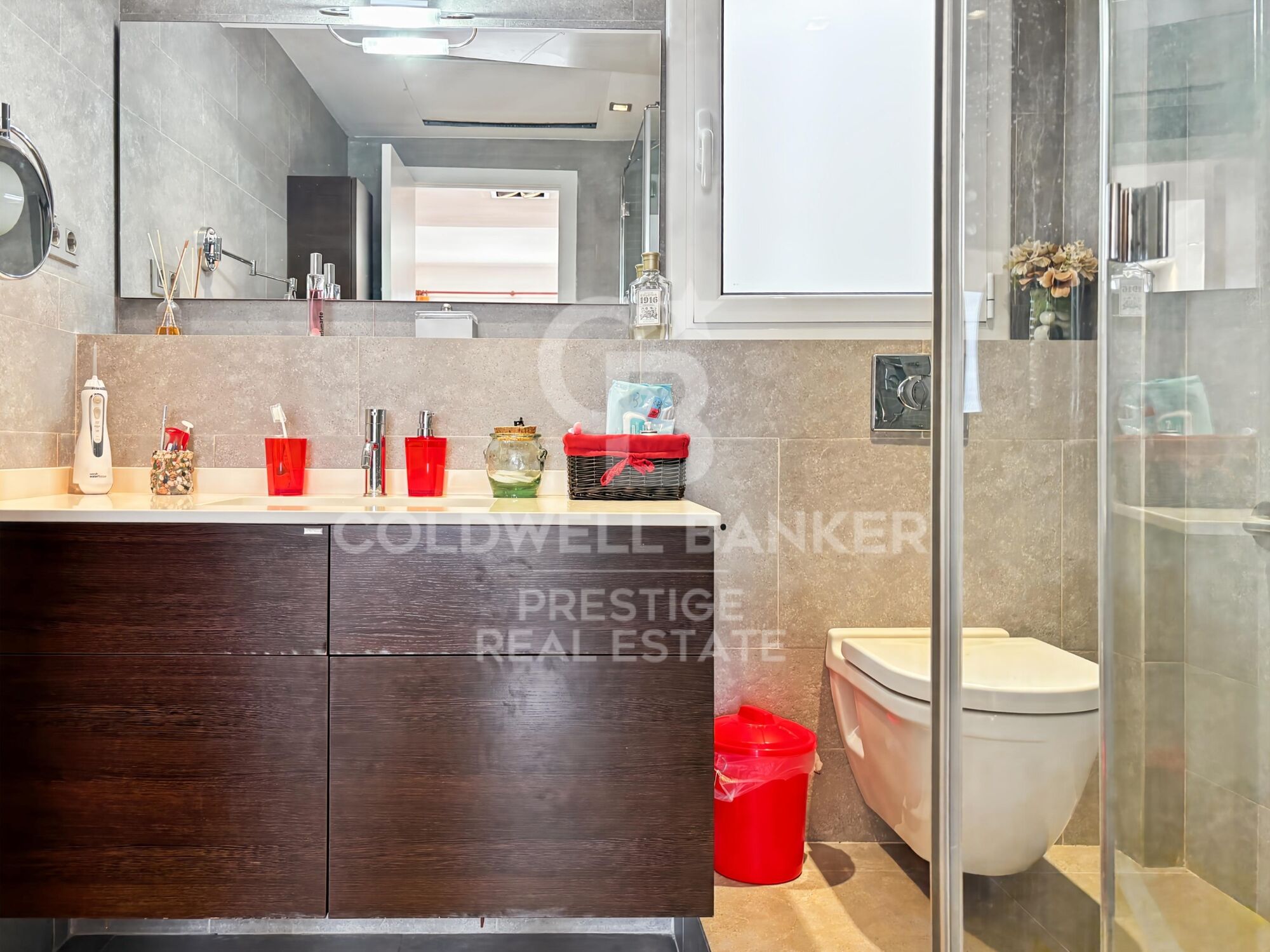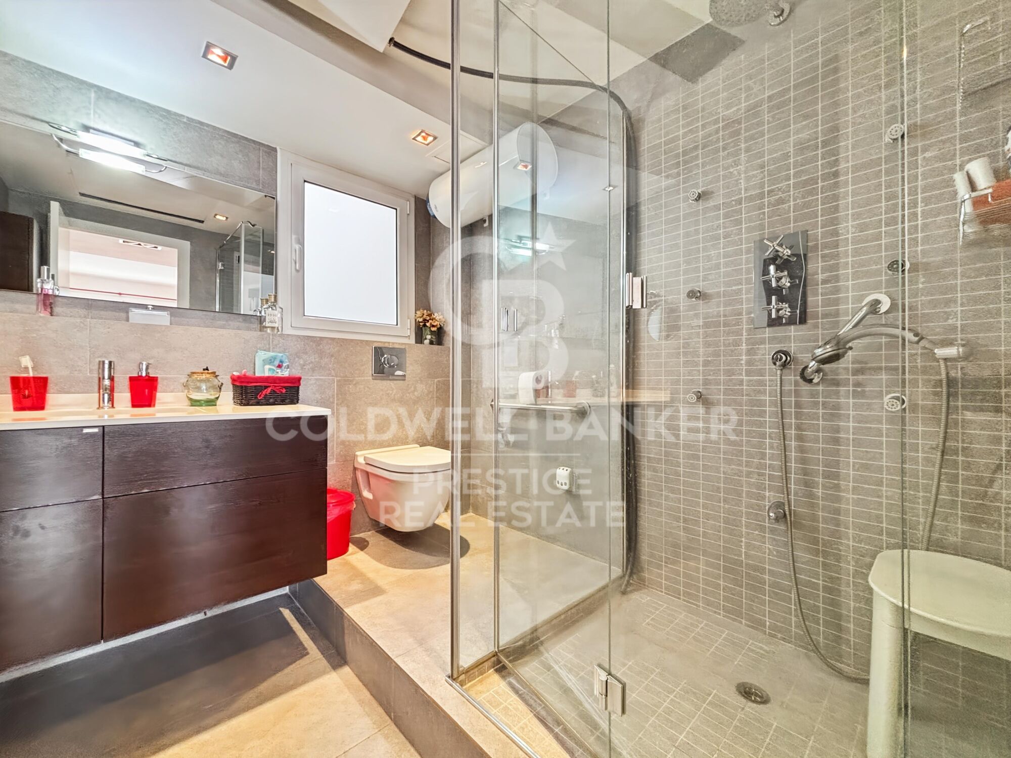En venta en el Eixample Derecho increíble ático de 185m2 más terraza de 18m2, con 3 habitaciones, 3 baños, totalmente reformado con calidades de alta gama. Al entrar en la propiedad un cómodo recibidor nos brinda acceso a la zona de día, descubriendo inmediatamente la terraza cubierta, integrada en el gran salón-comedor. La cocina, totalmente equipada con electrodomésticos de alta gama, es abierta al salon y posee una funcional y elegante isla. Cabe resaltar una práctica zona de aguas independiente con espacio de almacenaje cerca de la cocina. La zona de noche se compone de 3 habitaciones - 2 dobles en suite y 1 individual - y 1 baño completo. La master suite posee también un amplio vestidor con muebles y estanterías hechas a medida. La vivienda aprovecha de la luz natural gracias a grandes ventanales con aislamiento acústico y térmico. La distribución, perfectamente estudiada, optimiza el espacio utilizando puertas correderas para ampliar las estancias. Destaca también la sostenibilidad de la propiedad, dotada de tecnología aerotérmica para climatización y agua, logrando un certificado energético clase A. Este exclusivo ático ofrece un estilo de vida único por su ubicación: se encuentra en un edifico emblemático en el corazón del Eixample Derecho, cerca de la Rambla de Catalunya y Passeig de Gràcia. El proyecto de reforma del edificio ha respetado el entorno y recuperado la fachada característica del Eixample. Con balcones, balaustradas y una fachada posterior acristalada, combina estética tradicional y tecnologías avanzadas. El Eixample Derecho, una de las zonas más codiciadas de Barcelona, es sinónimo de elegancia y modernidad. En el vibrante entorno de la Rambla de Catalunya, encontrarás una combinación perfecta de arquitectura de época y tiendas exclusivas, restaurantes de lujo y una oferta cultural inigualable. Con sus amplias aceras, árboles y un ambiente cosmopolita, esta área ofrece un estilo de vida único, en pleno corazón de la ciudad. Vivir cerca de la Rambla de Catalunya significa disfrutar de lo mejor de Barcelona, con acceso a las principales avenidas, como el Passeig de Gràcia, y a una experiencia urbana sofisticada que no tiene igual. Hay opción de adquirir 2 amplias plazas de parking en el mismo edificio No dude en contactarnos para recibir más información o organizar una visita! #ref:CBES2570 (2)