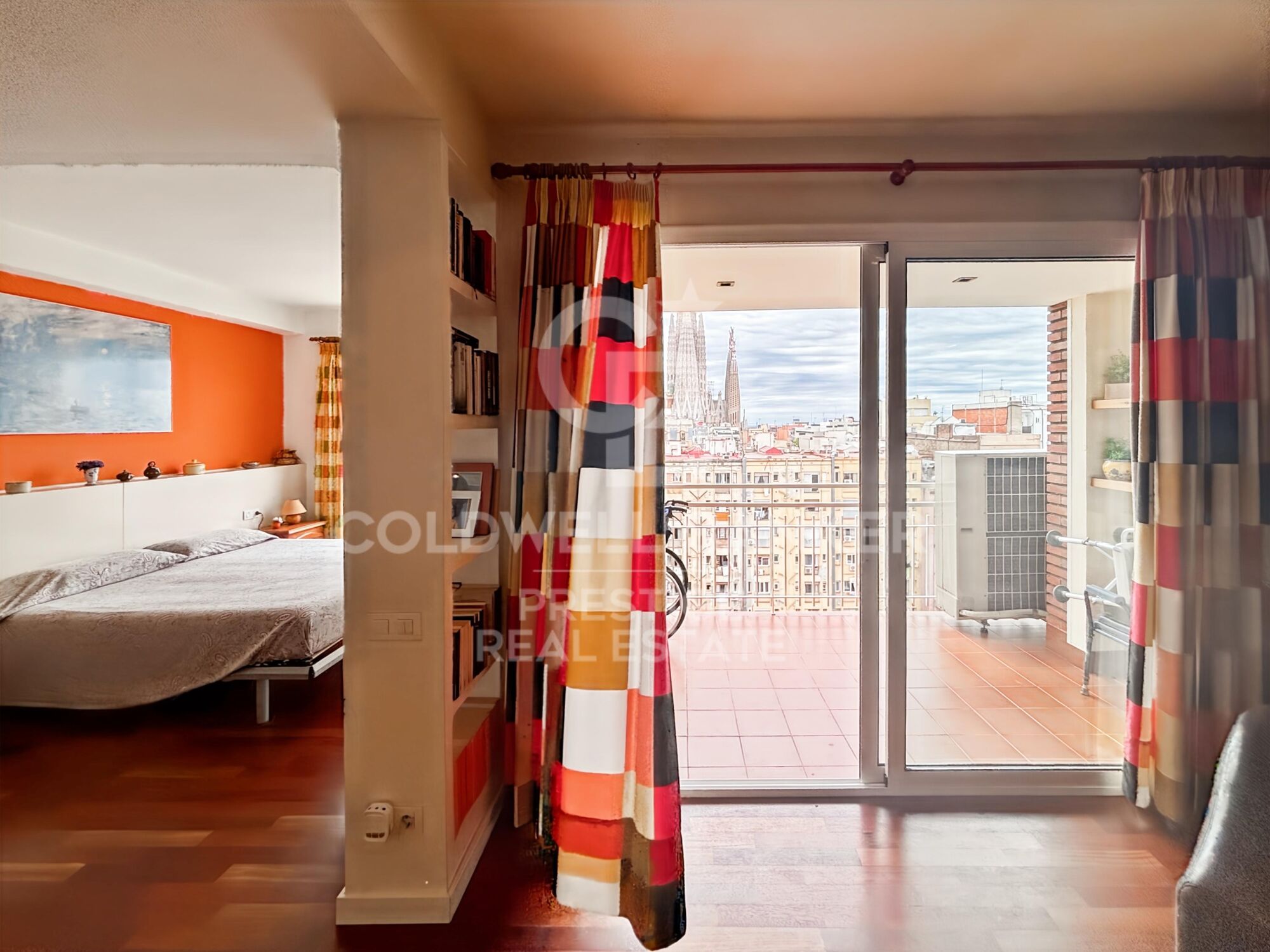 En una preciosa finca regia de 1900, recientemente rehabilitada en su fachada y en la escalera, se encuentra este magnífico piso situado en la última planta y con ascensor. La vivienda disfruta de unas vistas privilegiadas a la Sagrada Familia y ofrece una combinación única entre el encanto histórico del edificio y el confort de una reforma integral realizada según un cuidado proyecto de interiorismo. Con una superficie de 166 m², el piso presenta una distribución amplia y muy bien aprovechada. El gran espacio de salón, cocina y comedor, bañado por luz natural y con dos balcones exteriores, destaca por sus techos altos, que alcanzan los 3,30 metros en la zona donde la bóveda y las vigas de hierro aportan un carácter distintivo y elegante. La zona de noche se compone de cuatro habitaciones: una suite principal con un amplio vestidor, una segunda suite con baño privado, una habitación doble y una habitación individual. La vivienda dispone, además, de tres baños completos equipados con ducha y acabados de primera calidad. Los materiales utilizados en la reforma elevan aún más el nivel del inmueble. El suelo de parquet de roble natural aporta calidez a los espacios, mientras que el suelo hidráulico original, cuidadosamente restaurado en la entrada y el pasillo, conserva el carácter histórico de la finca. Los baños están revestidos con porcelánico italiano y la vivienda incorpora mobiliario integrado a medida, así como una cocina completamente equipada con electrodomésticos Bosch. El confort está garantizado en todas las estaciones del año gracias al sistema de aire acondicionado por conductos Mitsubishi, que permite regular la temperatura de forma independiente en cada estancia, y a la calefacción mediante caldera de gas Bosch, acompañada por radiadores de diseño IRSAP Tesi. Se trata, en definitiva, de un piso exclusivo, elegante y listo para entrar a vivir, ubicado en una de las zonas más emblemáticas de Barcelona y con vistas inigualables a la Sagrada Familia. Un hogar único para quienes buscan diseño, historia y una ubicación verdaderamente privilegiada. #ref:CBE01310