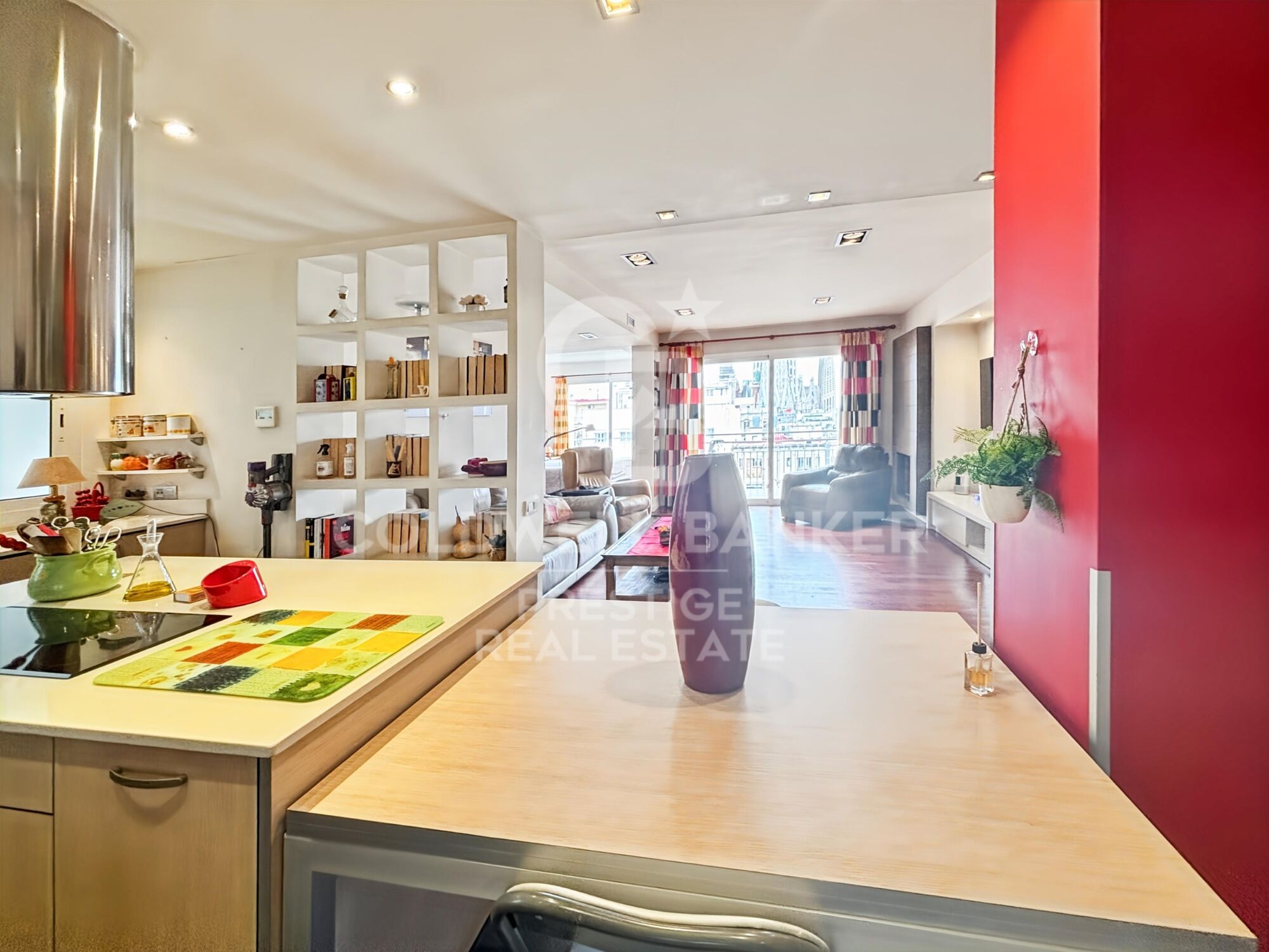 Coldwell Banker Anteris presenta este fantástico ático reformado con terraza privativa en la azotea, ubicado en una de las calles más cotizadas y tranquilas del barrio, rodeado de comercios y todo tipo de servicios. Situado en la última planta de una finca clásica de 1900 con ascensor, este luminoso piso ofrece 131 m² construidos más 41 m² de terraza privada, con una distribución pensada para el confort, la luz natural y la elegancia. Los techos altos y las vigas de madera aportan calidez y carácter, mientras que los suelos de parquet natural y las carpinterías exteriores garantizan confort y estilo. El salón-comedor destaca por su amplitud y luminosidad gracias a sus cuatro balcones, la cocina americana está completamente equipada con electrodomésticos integrados y una pequeña vinoteca. Todo ello con el caracter añadido que ofrecen las bigas de madera en el techo. La zona de noche incluye un dormitorio doble en suite y el dormitorio principal en suite con vestidor y un balcón exterior con luz de mañana. Además, existe un proyecto del arquitecto para convertir la propiedad en tres habitaciones, lo que aporta flexibilidad a futuros propietarios. Entre sus características, destacan instalaciones renovadas, aire acondicionado por conductos, techos con vigas de madera, suelos de parquet natural y carpintería exterior de doble acristalamiento, garantizando confort, eficiencia y estilo. Gracias a su ubicación privilegiada, a pocos pasos de tiendas, cafés, mercados locales y transporte público, este ático es ideal tanto como vivienda lista para entrar a vivir como excelente inversión en un barrio consolidado y con alta demanda en Barcelona. Un hogar con luz, diseño y carácter que combina la exclusividad de una terraza privada con la comodidad de vivir en pleno corazón de la ciudad. ¡Contáctanos y agenda tu visita! #ref:AV255