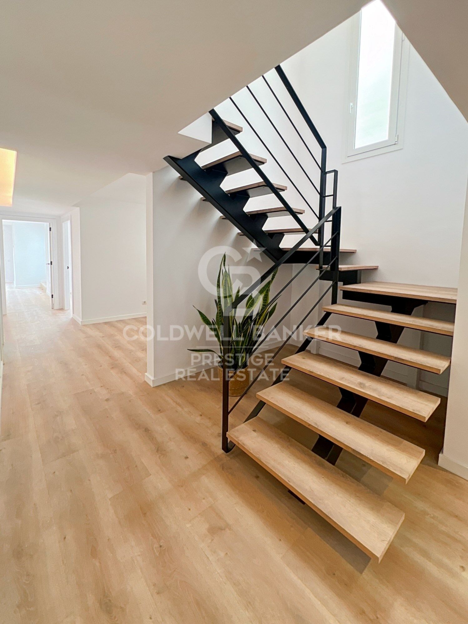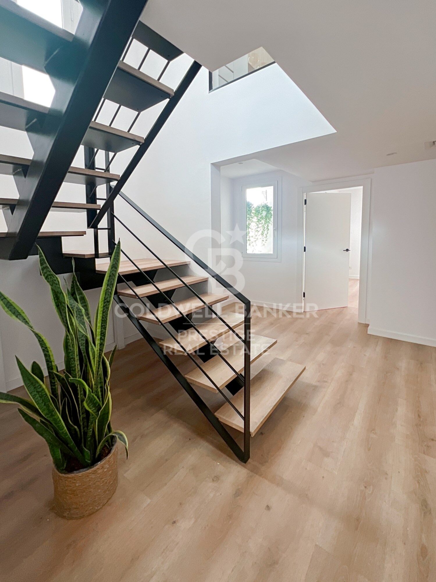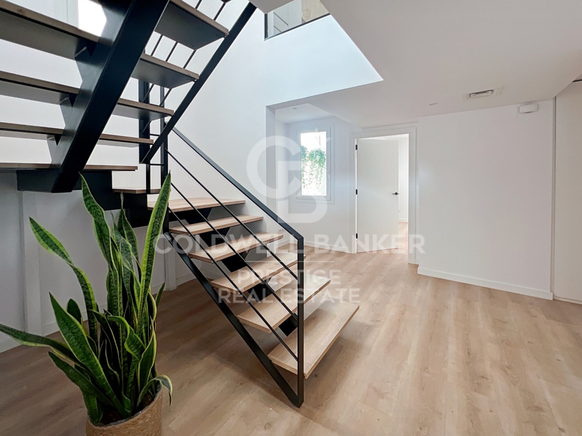 Al ingresar a la planta de entrada, te recibe un acogedor vestíbulo que da paso a una habitación interior con su propio patio, una impresionante escalera moderna, una sala técnica y dos habitaciones adicionales. Una de ellas cuenta con una gran terraza y la otra es una suite con vestidor y balcón privado.