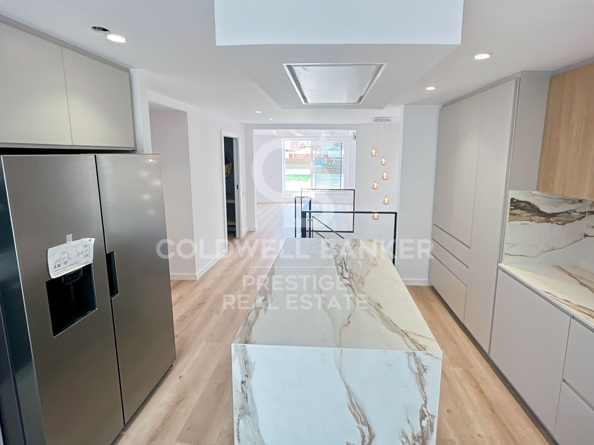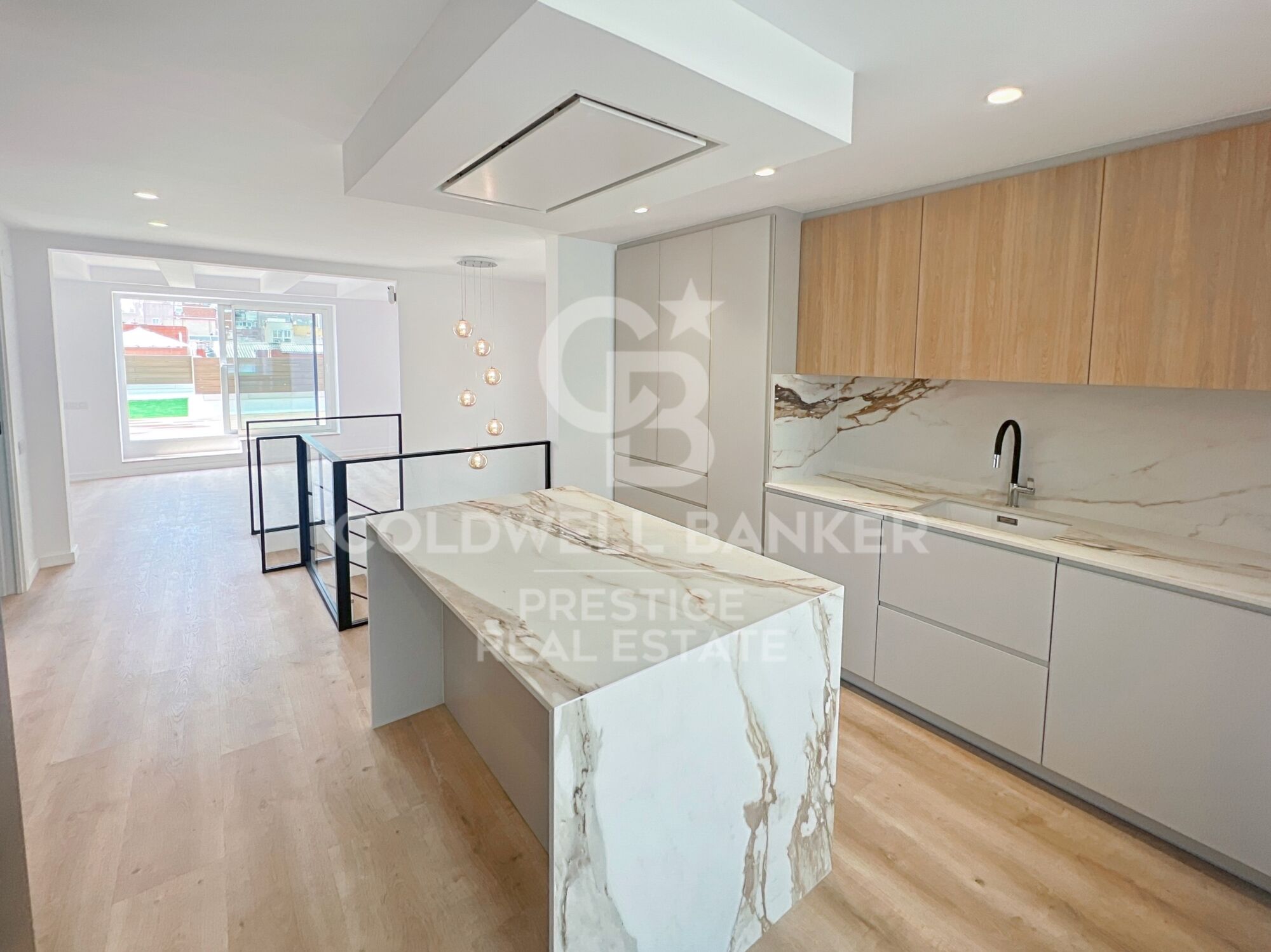 En la planta superior, la zona de día te sorprenderá con su amplitud y luminosidad. De un lado, encontrarás el salón de TV con acceso a una amplia terraza, y del otro, una cocina americana con comedor y la tercera gran terraza, la más espaciosa de todas.