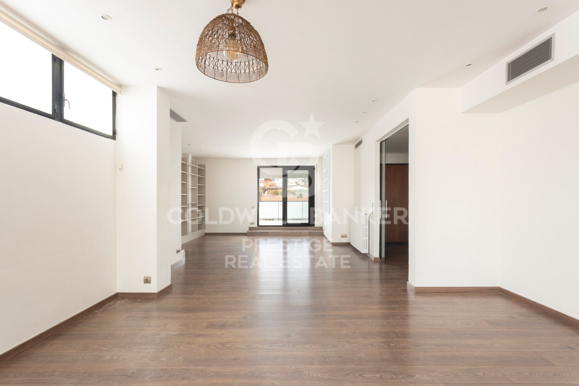 Ático situado en una de las calles más agradables de la zona alta de Barcelona, en el barrio de Sant Gervasi - Galvany. Su orientación sur aporta una luz natural constante y vistas abiertas tanto al mar como a la montaña.