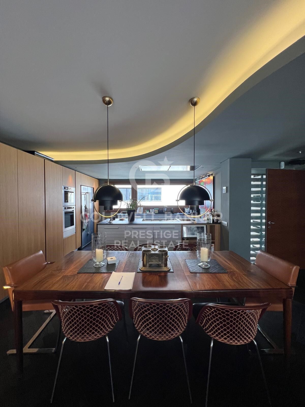 Ubicada en uno de los barrios más exclusivos de Barcelona, esta elegante y moderna casa fue construida en 2005 por el reconocido arquitecto internacional Luis Alonso. Se trata de un edificio completo de cinco plantas, todas comunicadas por una cómoda escalera interior y un ascensor privado.