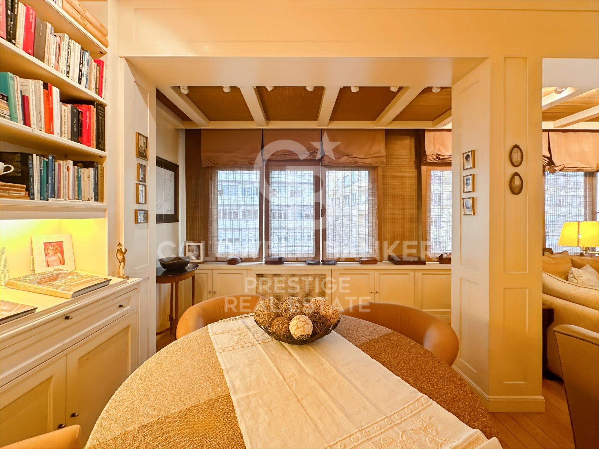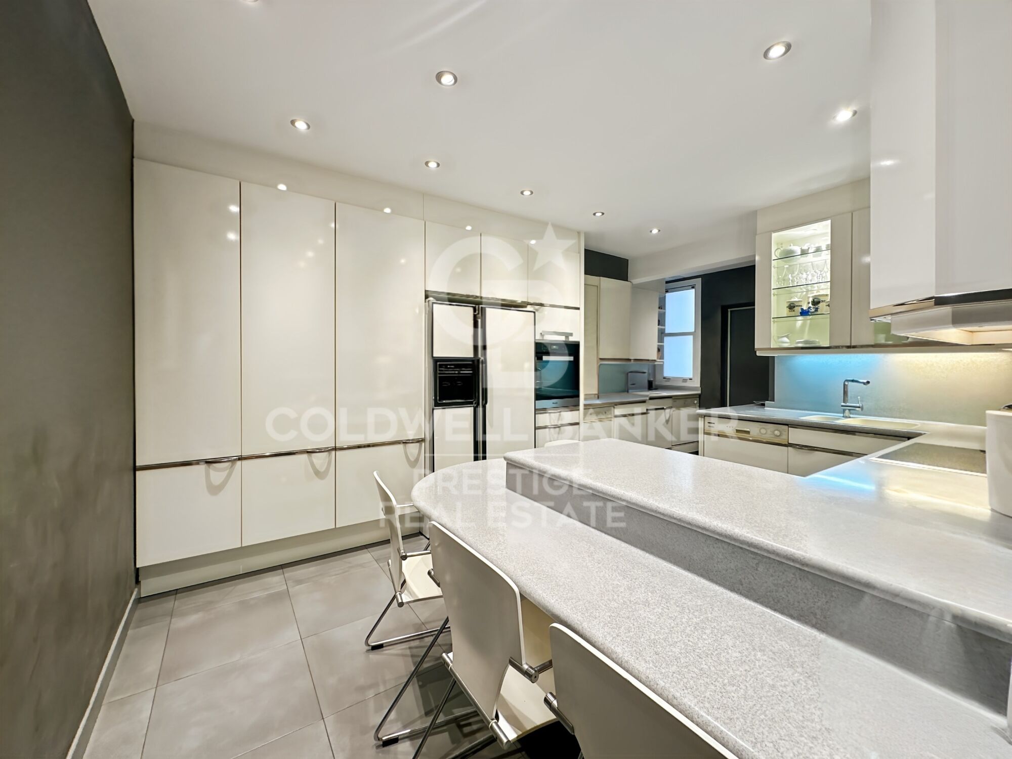 El salón, con grandes ventanales, goza de vistas singulares a la Vía Augusta, creando un espacio acogedor y sofisticado. La cocina, amplia y funcional, ofrece abundante espacio de almacenamiento, ideal para quienes buscan practicidad sin renunciar al estilo.