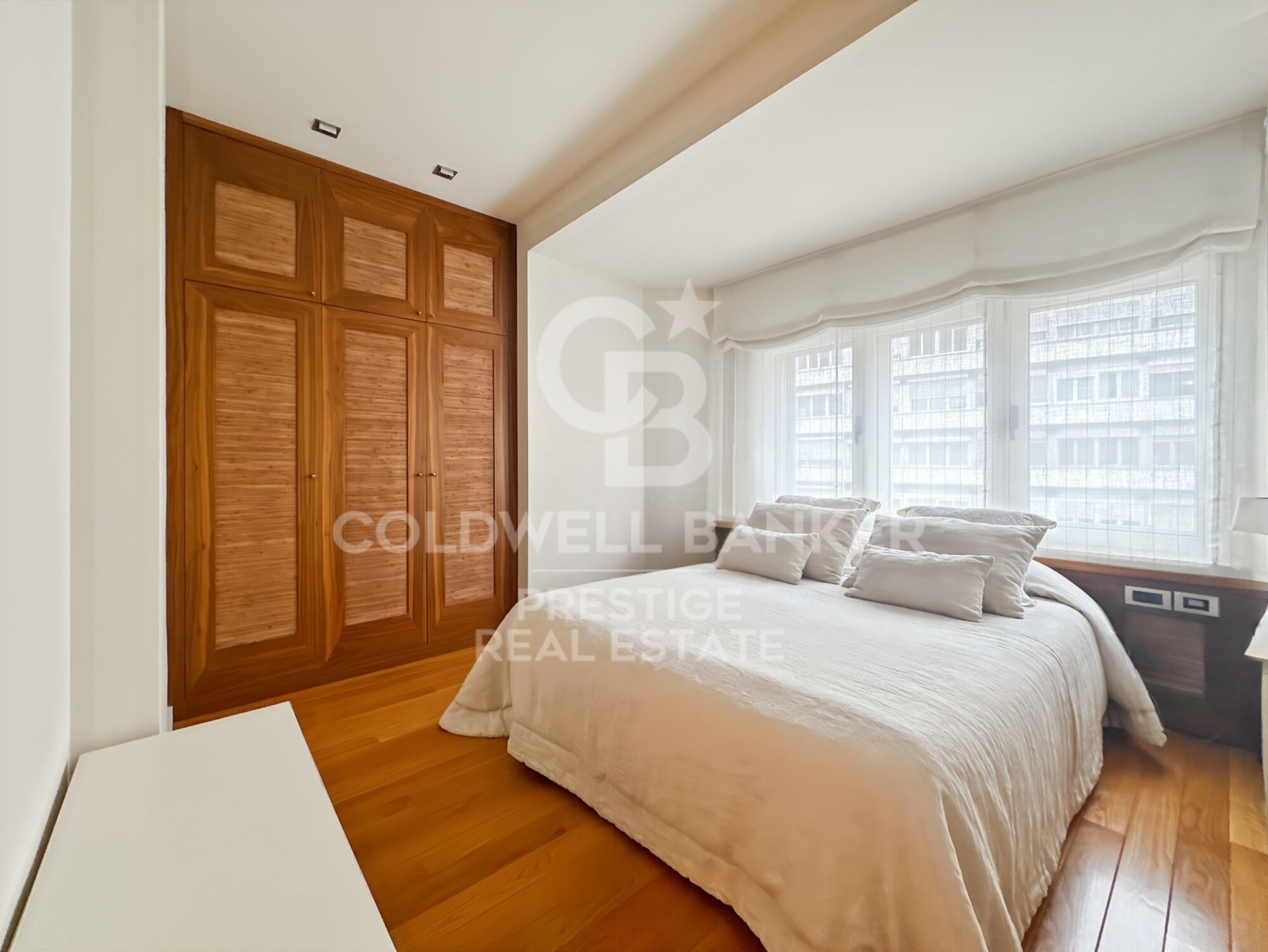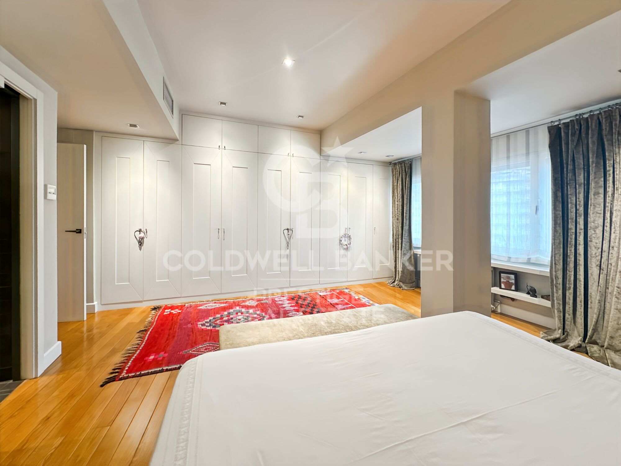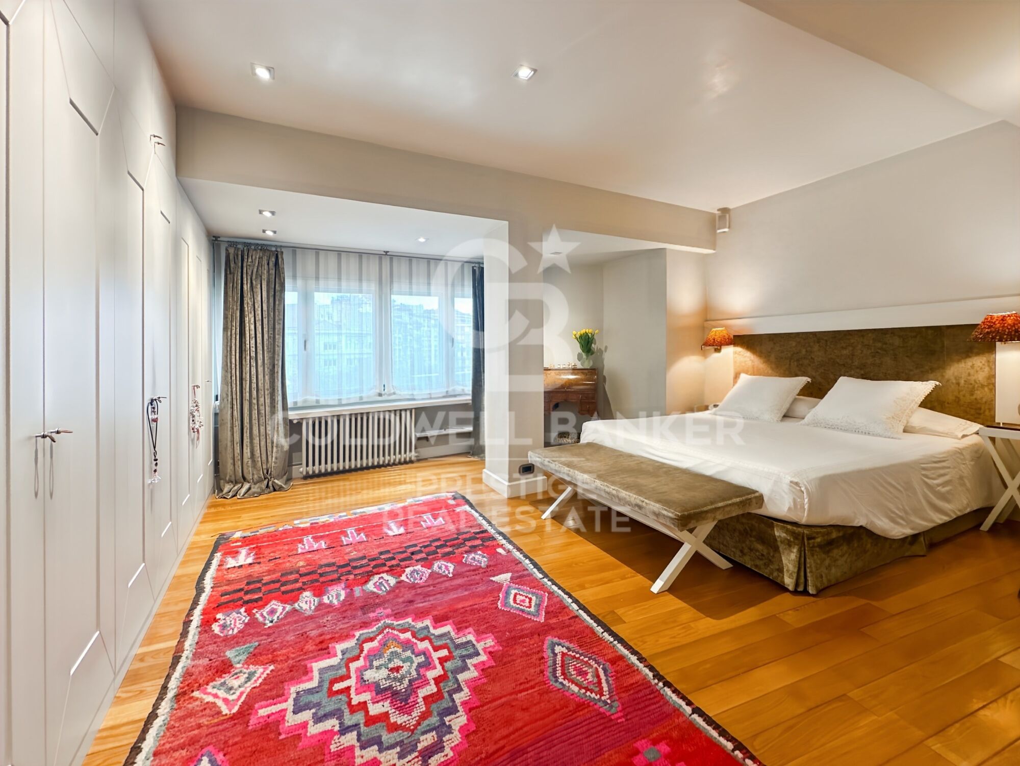 La vivienda dispone de dos amplios dormitorios, ambos con baño en suite y vestidores, ofreciendo privacidad y comodidad. Los suelos y armarios en madera natural aportan un toque de calidez y distinción.