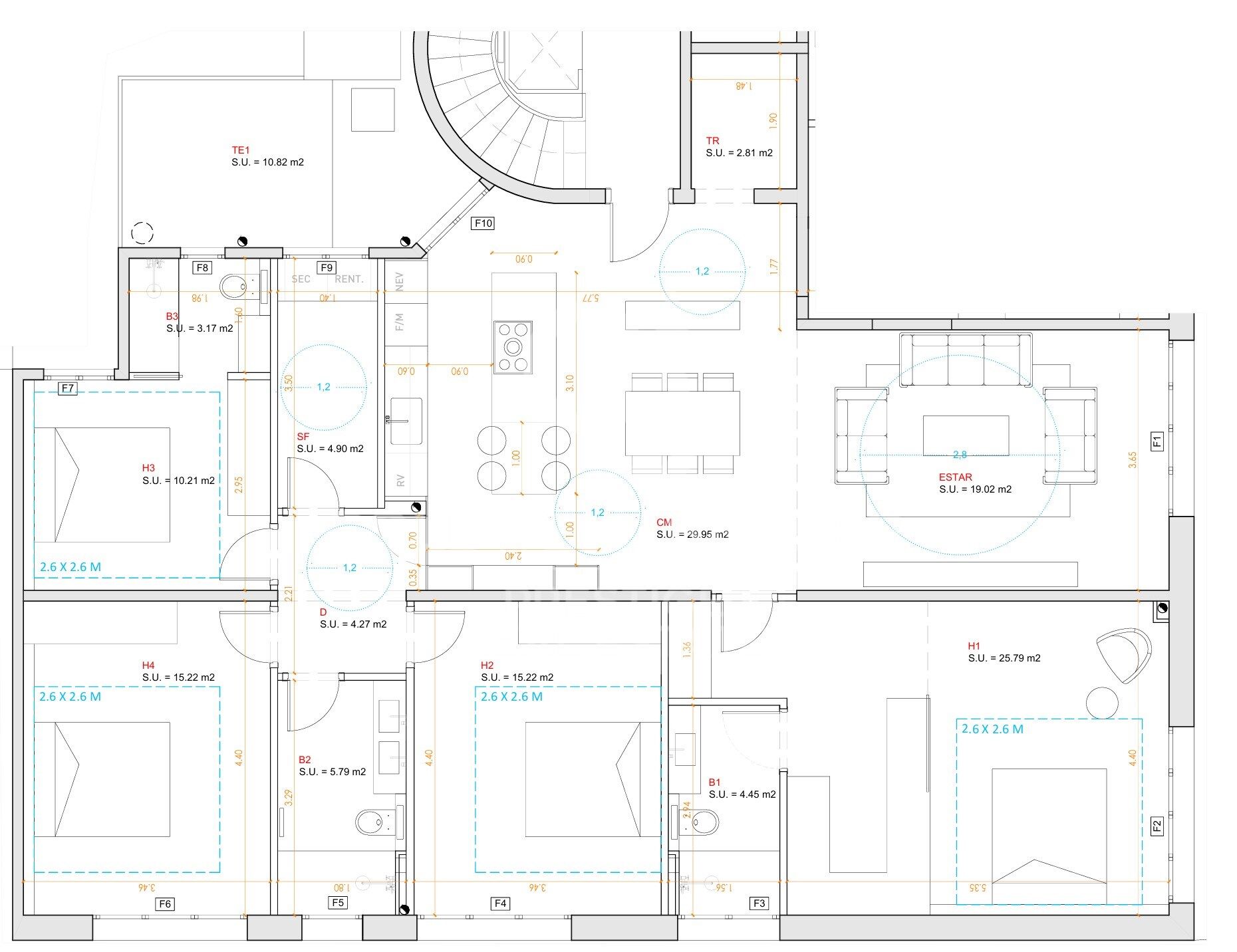 Este encantador piso de 169 m2. y 103 m2. de terraza ofrece un estilo de vida único. Cuenta con cuatro dormitorios dobles, dos habitaciones en suite, una de ellas con salida a la terraza. Los otros dos dormitorios tienen un baño para compartir.