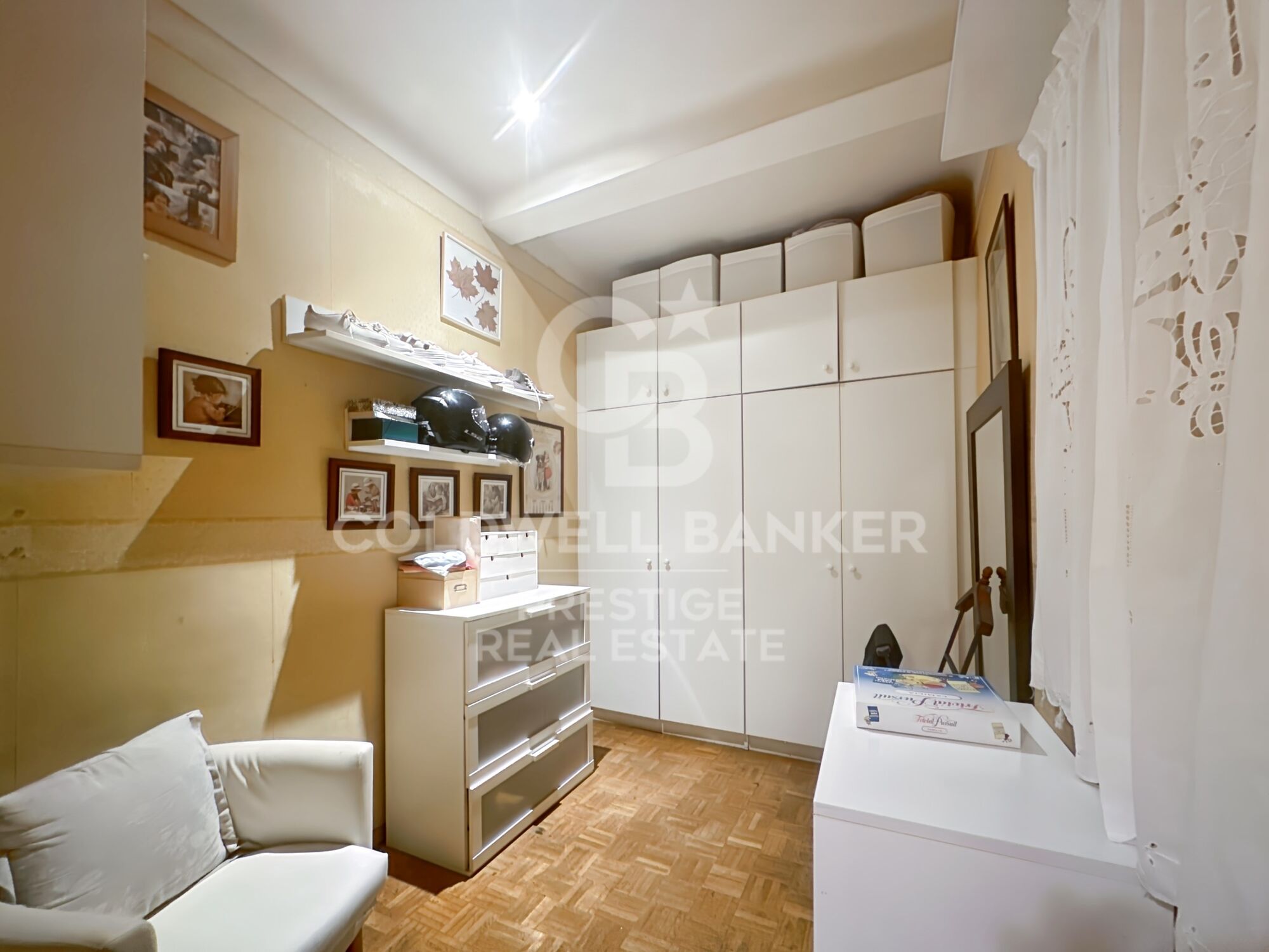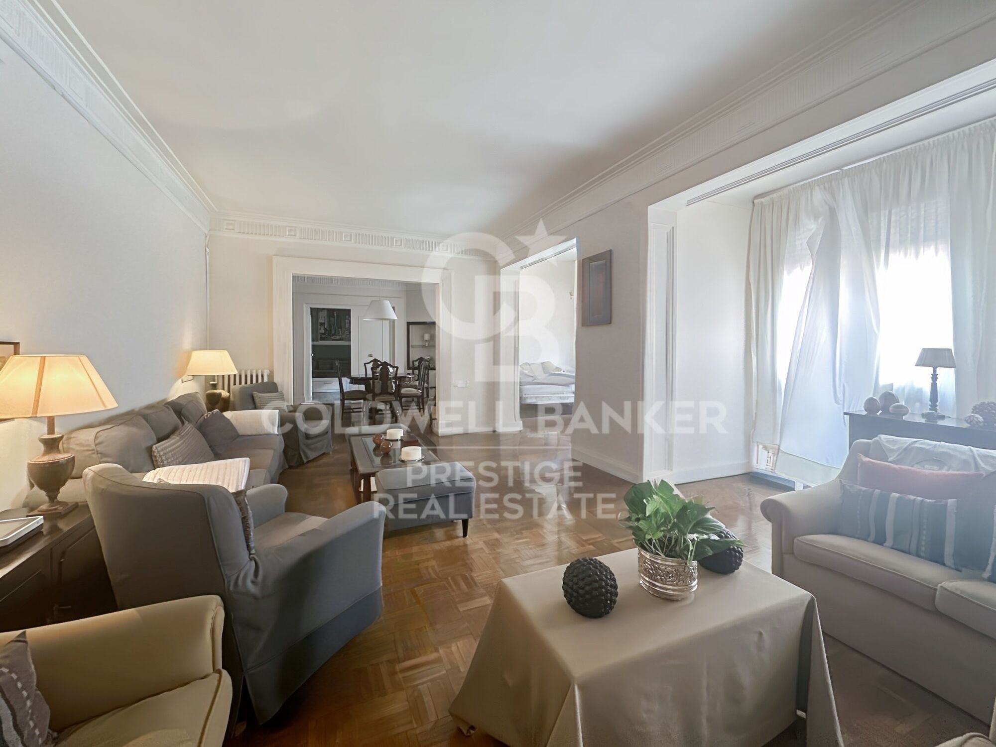 Situada en una segunda planta real, la vivienda destaca por sus amplios ventanales y doble orientación, lo que garantiza una excelente luminosidad durante todo el día. El amplio recibidor, marca la entrada a un salón-comedor de más de 60 m² con vistas a un tranquilo patio de manzana. Los techos altos y los detalles clásicos aportan un carácter señorial a la propiedad.