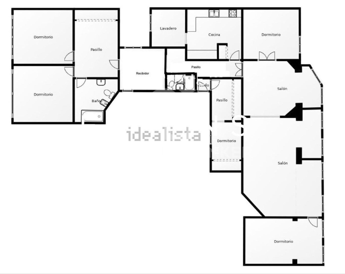 Actualmente, el piso cuenta con 6 dormitorios dobles, todos de generosas dimensiones, además de 2 baños completos y una cocina office. La vivienda, bien conservada, aunque de origen, ofrece un enorme potencial para una reforma que realce aún más su elegancia y confort.