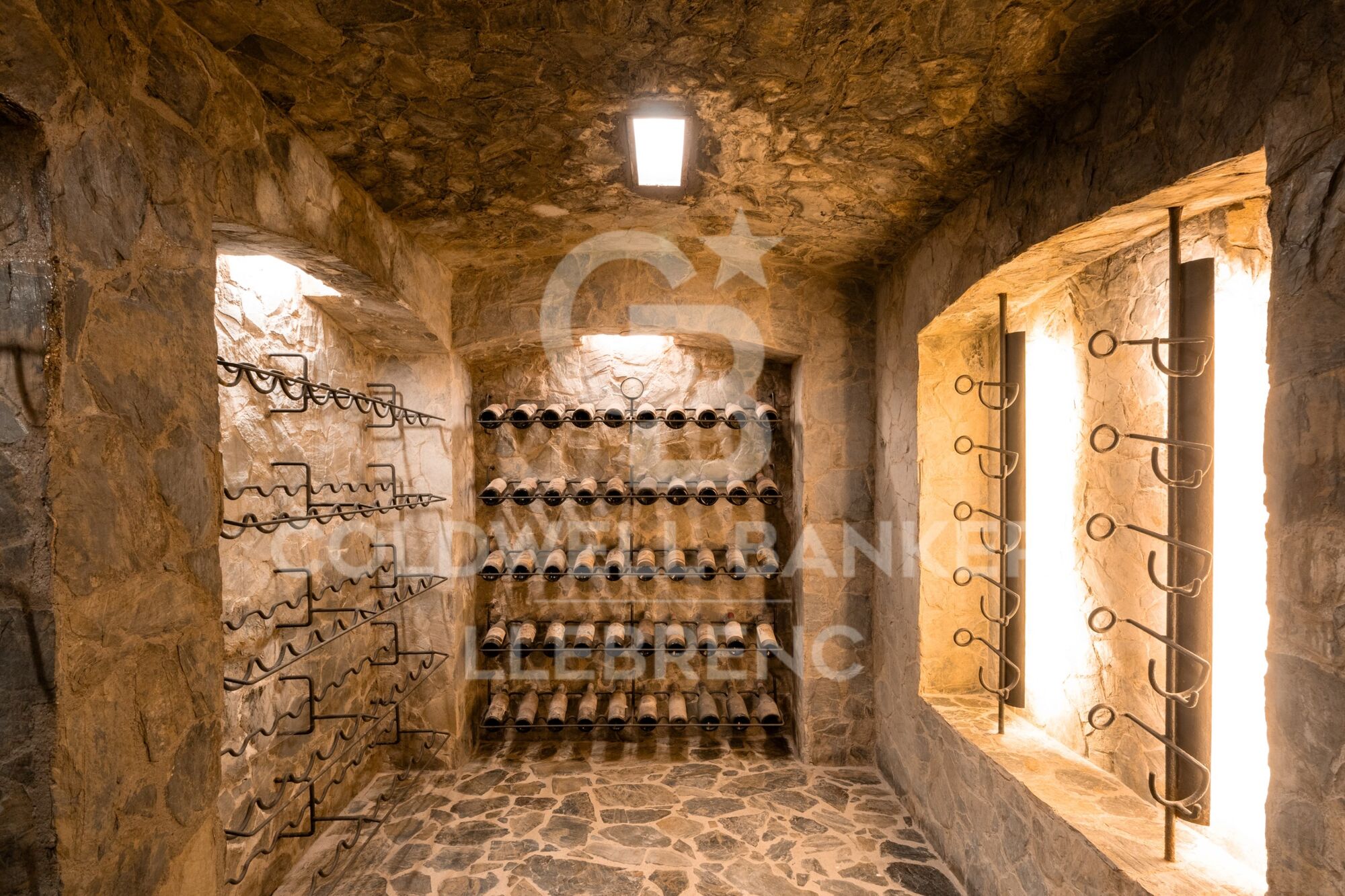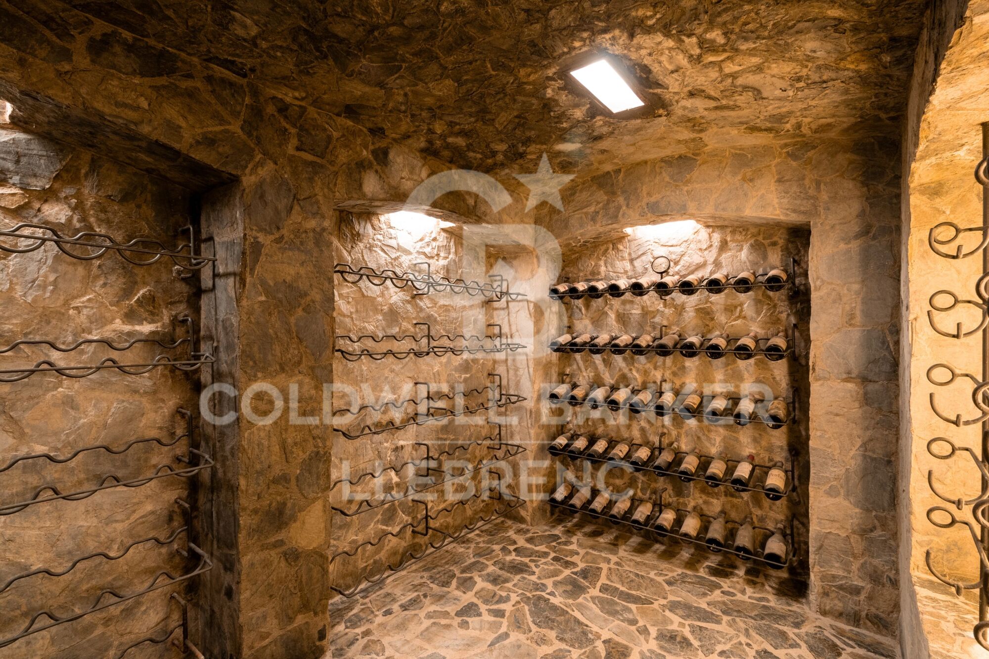 La planta inferior dispone de dos amplias suites y una habitación doble adicional y un baño completo. También encontramos aquí uno de los garajes de la propiedad, con acceso una gran bodega, perfecta para los amantes del vino.
