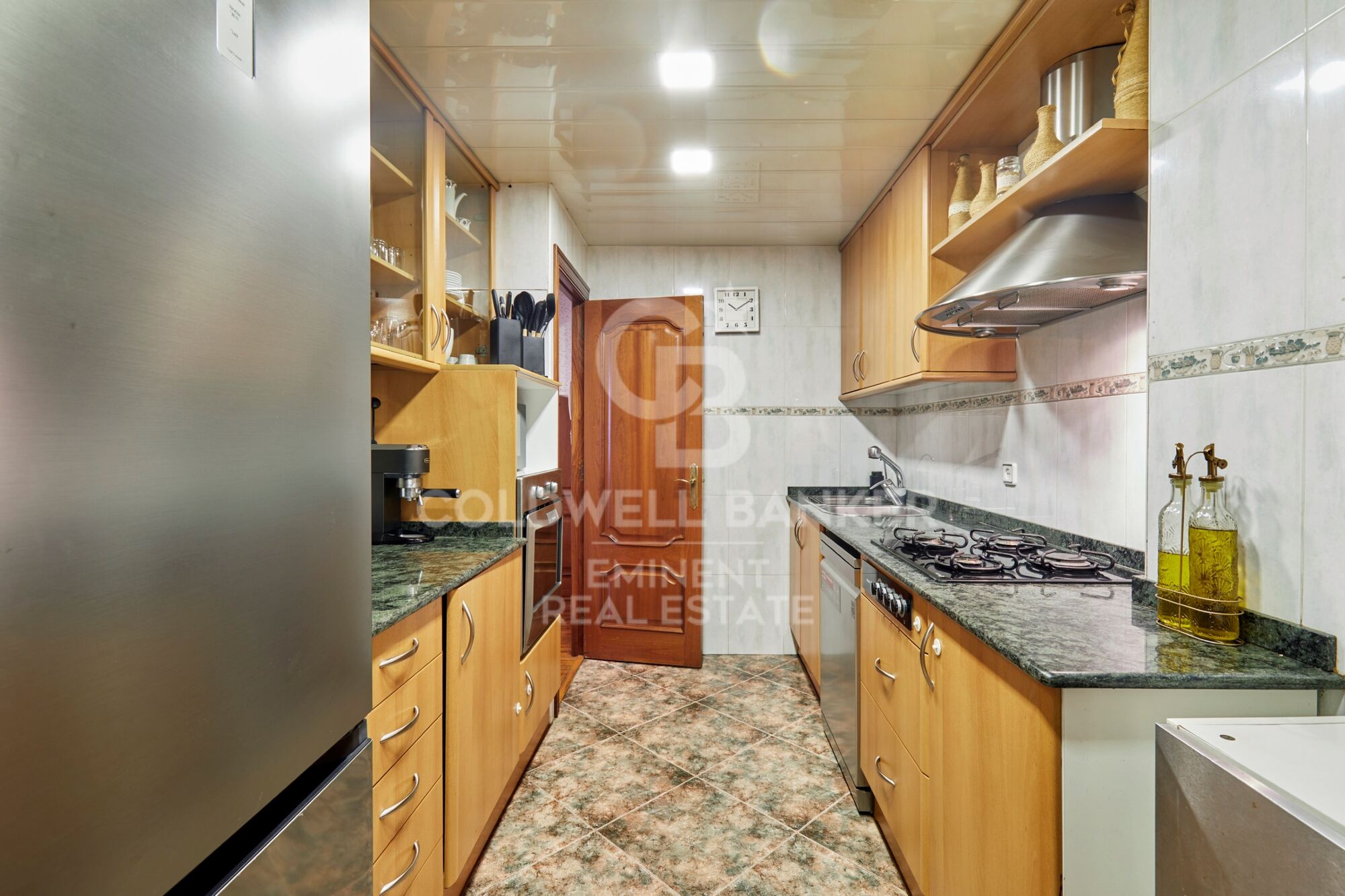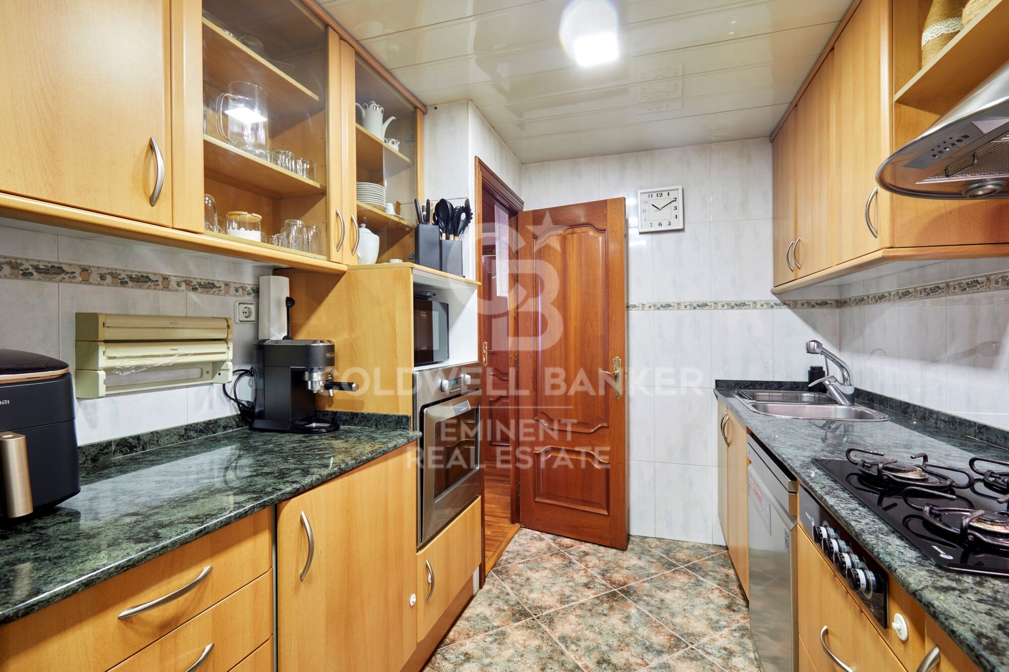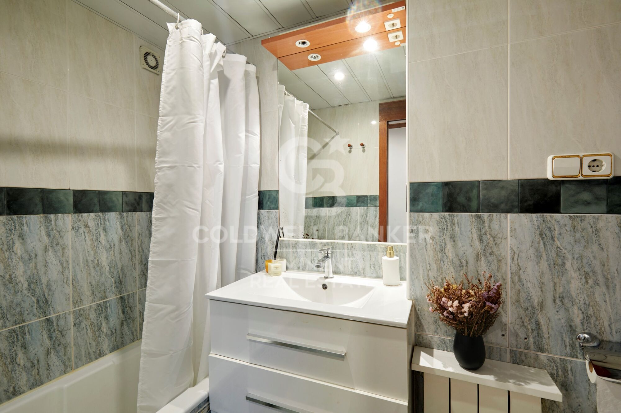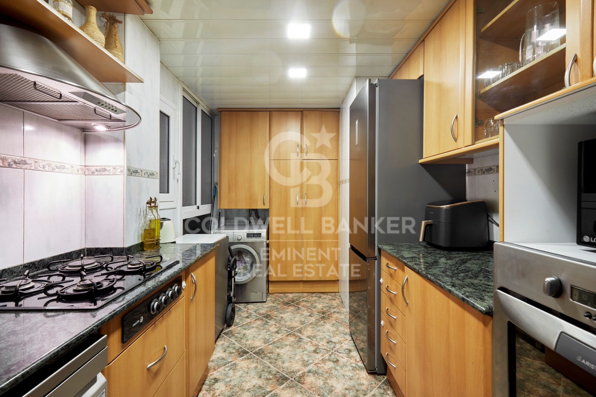Además, la vivienda ofrece soluciones prácticas de almacenaje, incluyendo un espacio discreto en el techo del pasillo que permite aprovechar al máximo el espacio.