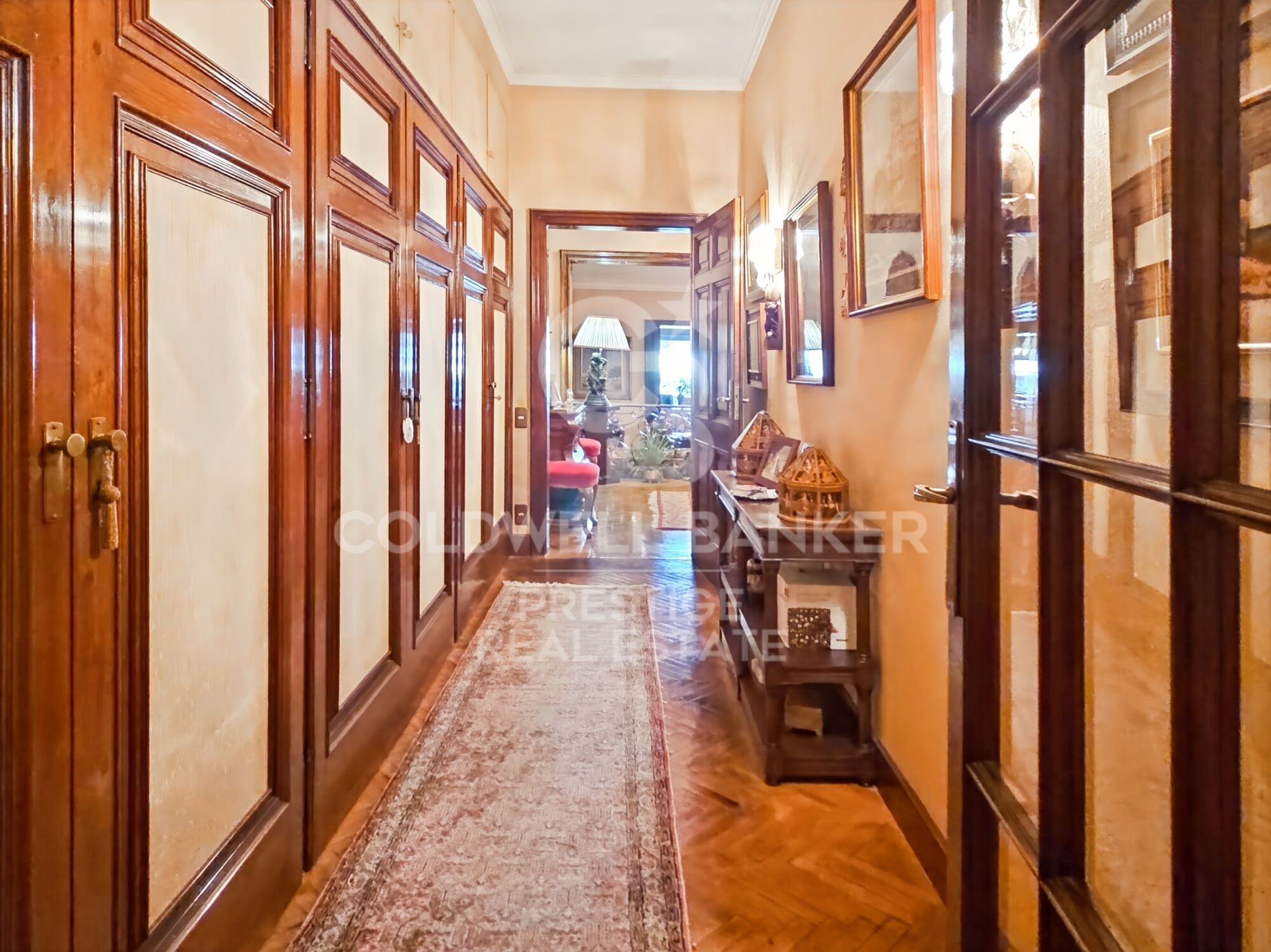 La vivienda, de planta cuadrada, gira en torno a un elegante recibidor central, una característica distintiva del prestigioso arquitecto Mitjans. Desde allí, unos escalones conducen a la antesala del impresionante salón principal, de más de 100m², dividido en varios ambientes: zona de estar, biblioteca y comedor, todos decorados con muebles a medida en maderas nobles, dos chimeneas y acceso a una espléndida terraza con vistas a los jardines de Turó Parc.