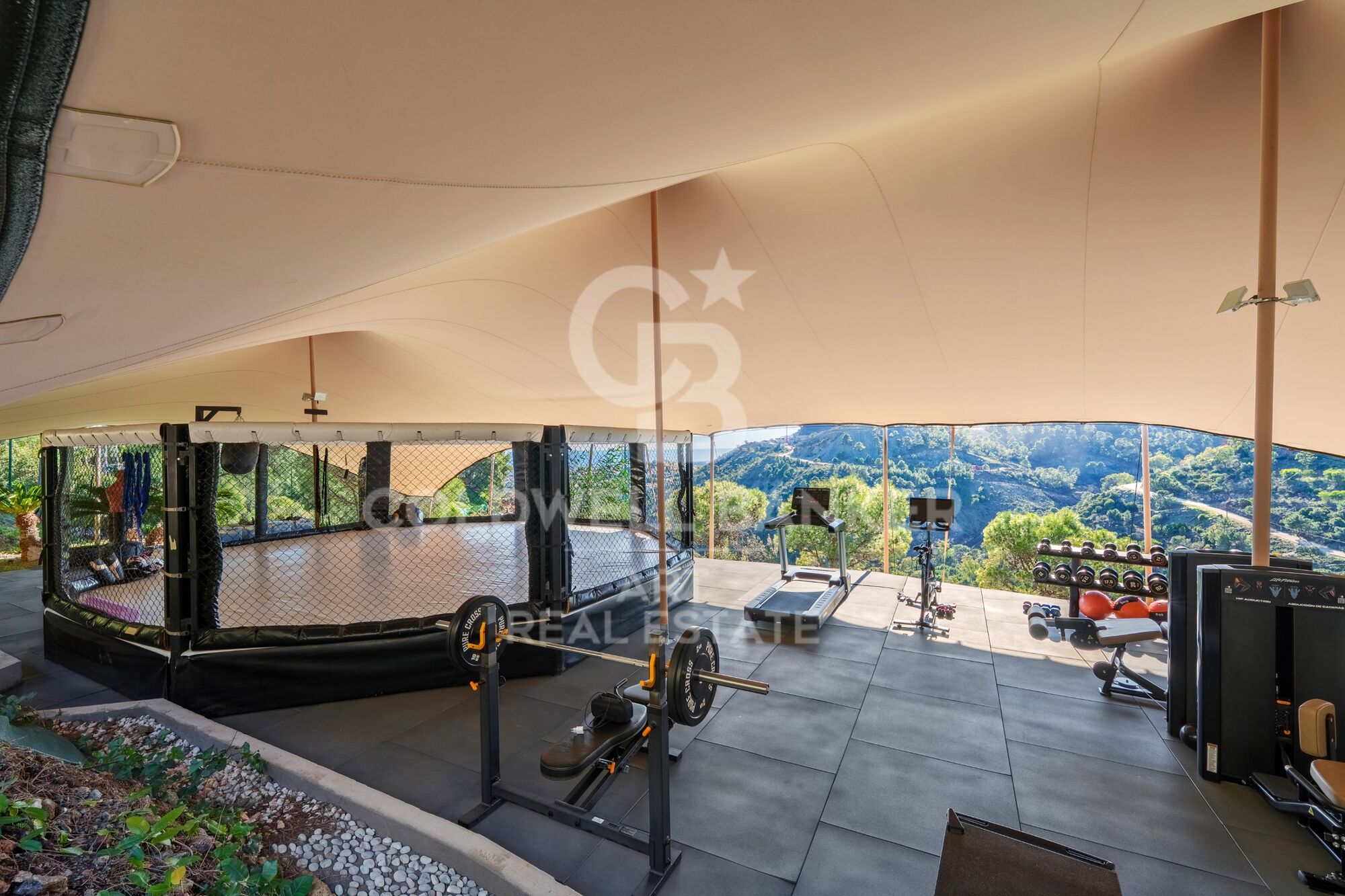 En el límite de la parcela, el gimnasio al aire libre se erige como un detalle considerado, no como una novedad. Totalmente equipado y de calidad profesional, ofrece un entorno de entrenamiento privado con vistas despejadas al paisaje. ¿Prefiere trabajar desde casa? La oficina en la planta baja ofrece separación sin aislamiento. La bodega, el amplio garaje y los amplios terrenos completan una propiedad que satisface las necesidades prácticas con la misma atención que las ambiciones de estilo de vida.