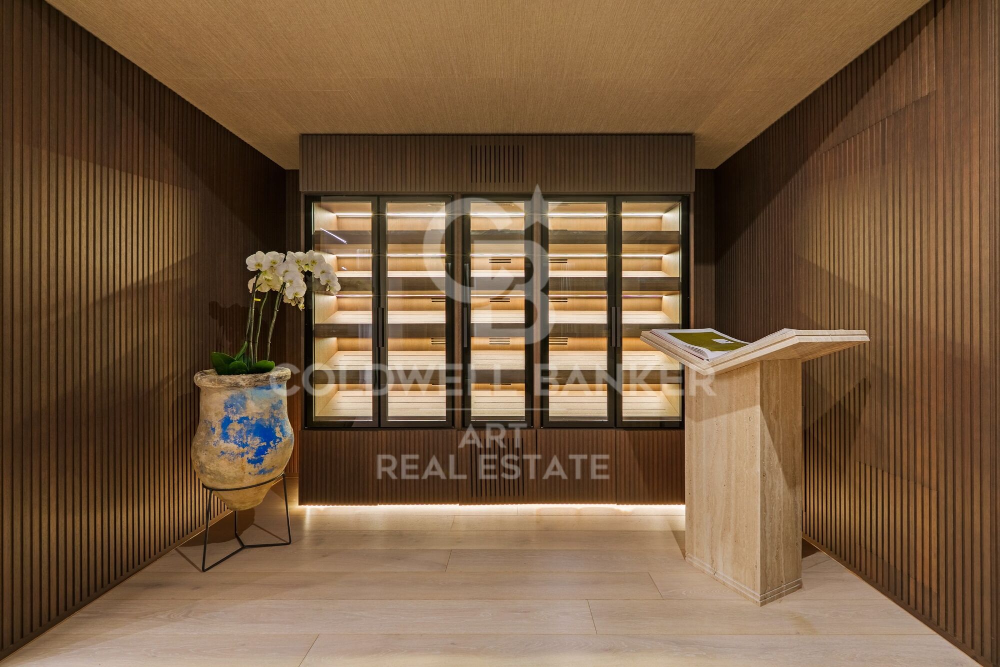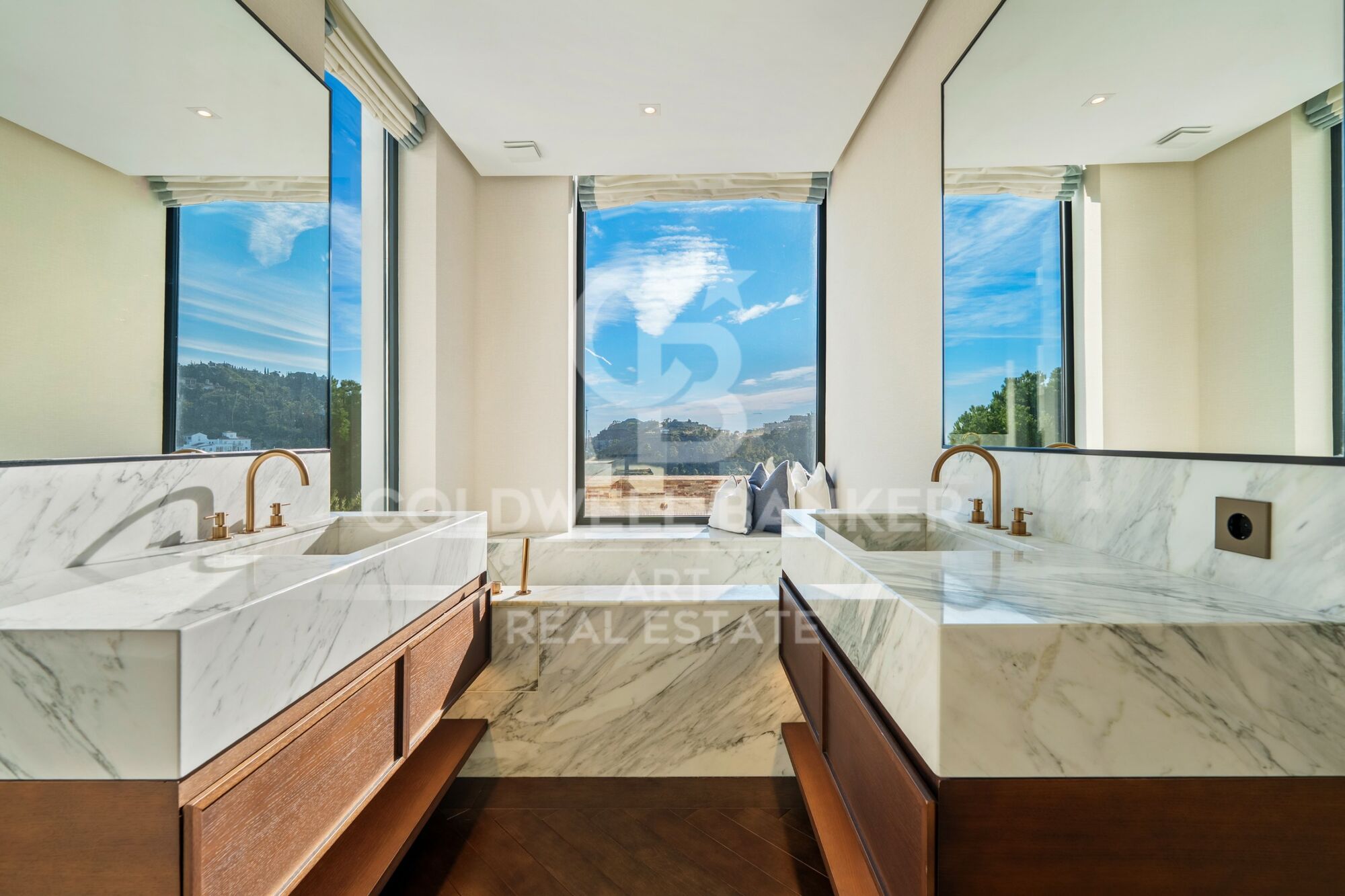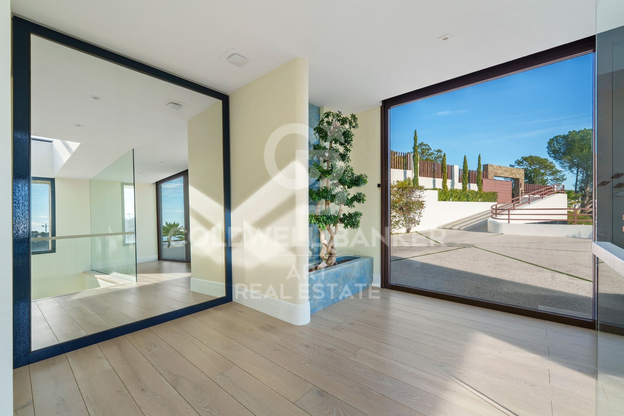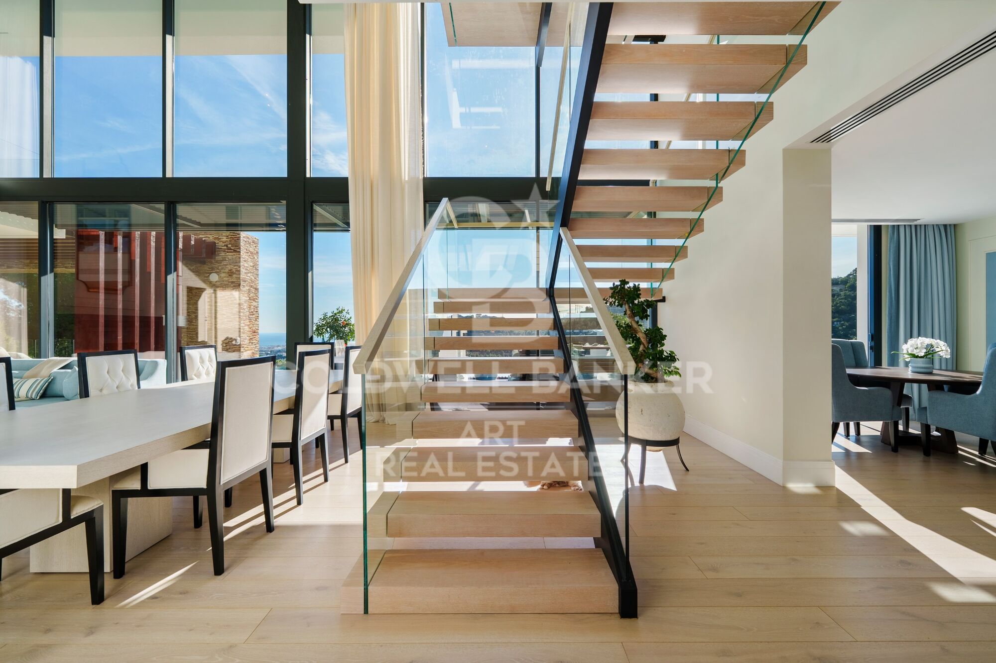 Ubicada en una urbanización cerrada con seguridad armada, una autorización poco común en España y un tiempo de respuesta inferior a cinco minutos, la casa está diseñada para quienes valoran la privacidad y buscan la comodidad. La distribución es clara y deliberada. Las habitaciones privadas se ubican en la planta superior, mientras que los espacios sociales se despliegan a nivel del jardín. La suite principal ocupa su propio espacio con vestidor y biblioteca. En la planta baja, las zonas de estar equilibran el uso formal e informal sin excesos. ¿Con qué frecuencia se encuentra una casa que permite disfrutar del entretenimiento sin renunciar a la comodidad en un día laborable normal? Las amplias aberturas invitan a las terrazas y la piscina, donde las vistas panorámicas son ininterrumpidas.