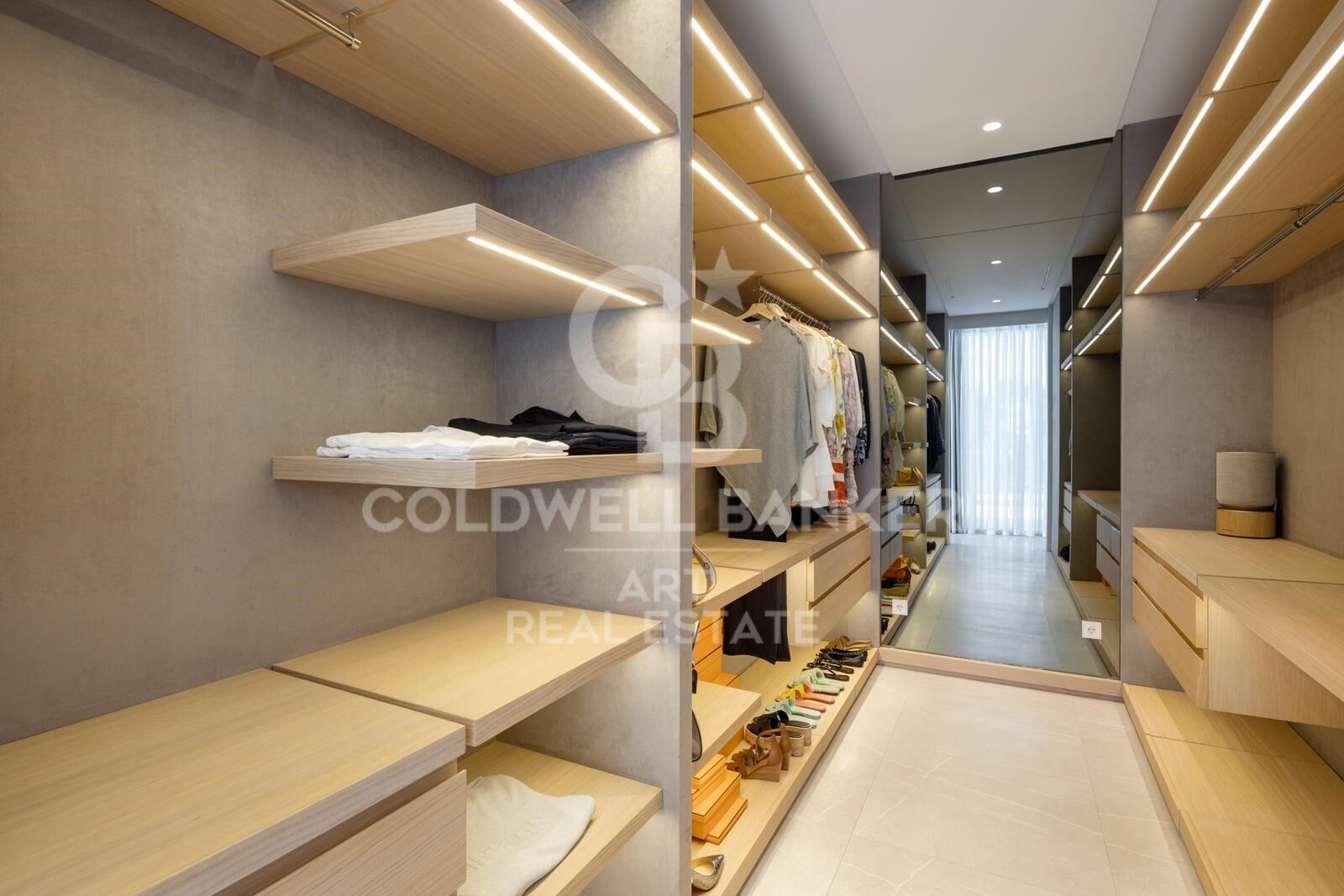 Los espacios exteriores son igualmente atractivos. Amplias terrazas, tanto cubiertas como abiertas, ofrecen lugares ideales para cenar al aire libre o simplemente disfrutar del entorno tranquilo. Una chimenea de gas incorporada añade un toque acogedor para las noches más frescas. La piscina infinita de tamaño doble, completa con calefacción, cubierta automática y sistema de tratamiento de agua salada, da la impresión de fusionarse con el horizonte, ofreciendo vistas ininterrumpidas del Mediterráneo.