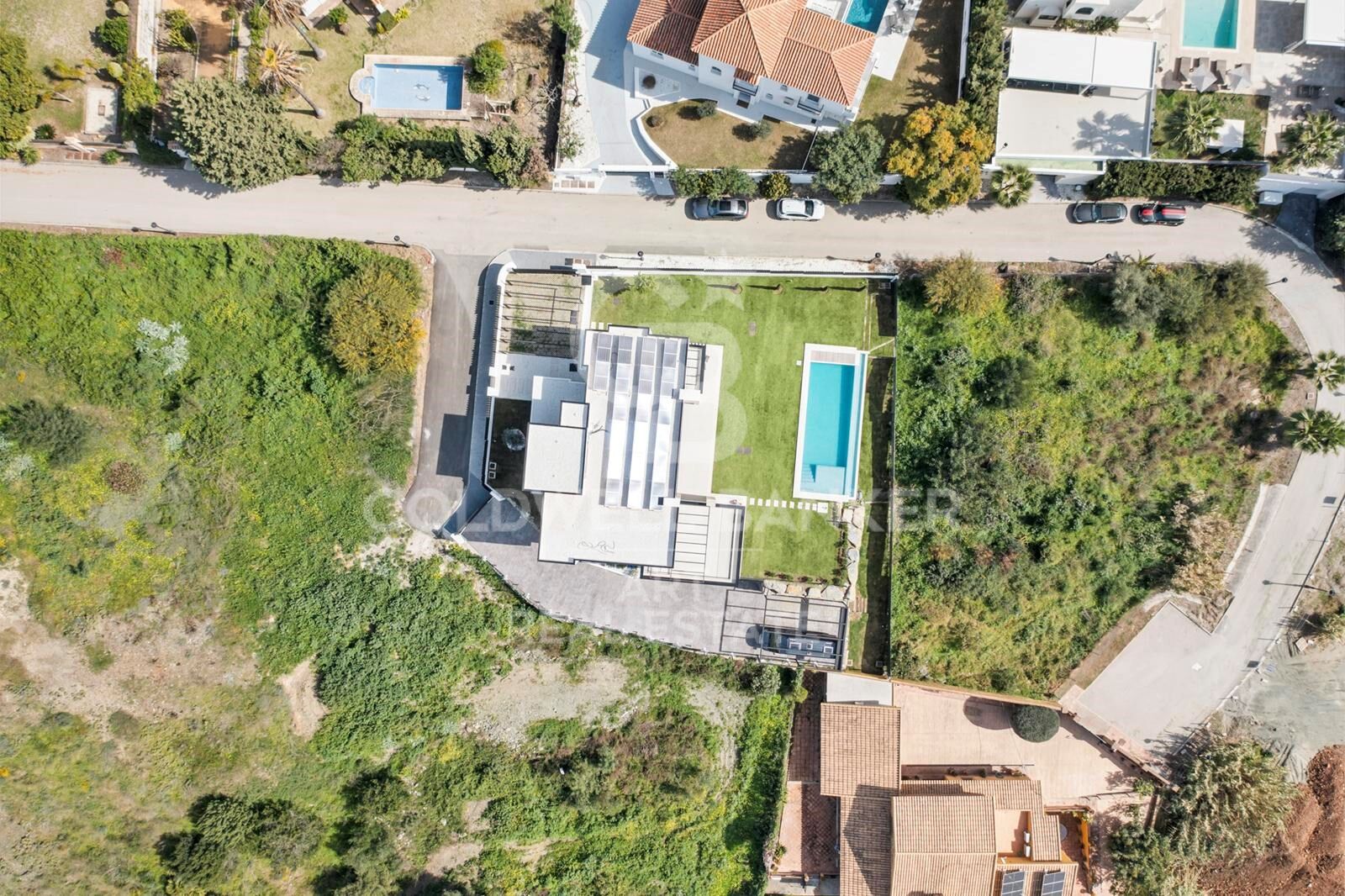 La villa ofrece un jardín privado cuidadosamente diseñado y una piscina climatizada de agua salada. Construida con los más altos estándares, cuenta con certificado energético A, climatización Airzone con calefacción, suelo radiante en toda la casa, 20 paneles solares, ascensor a las tres plantas y cargador eléctrico en el garaje.