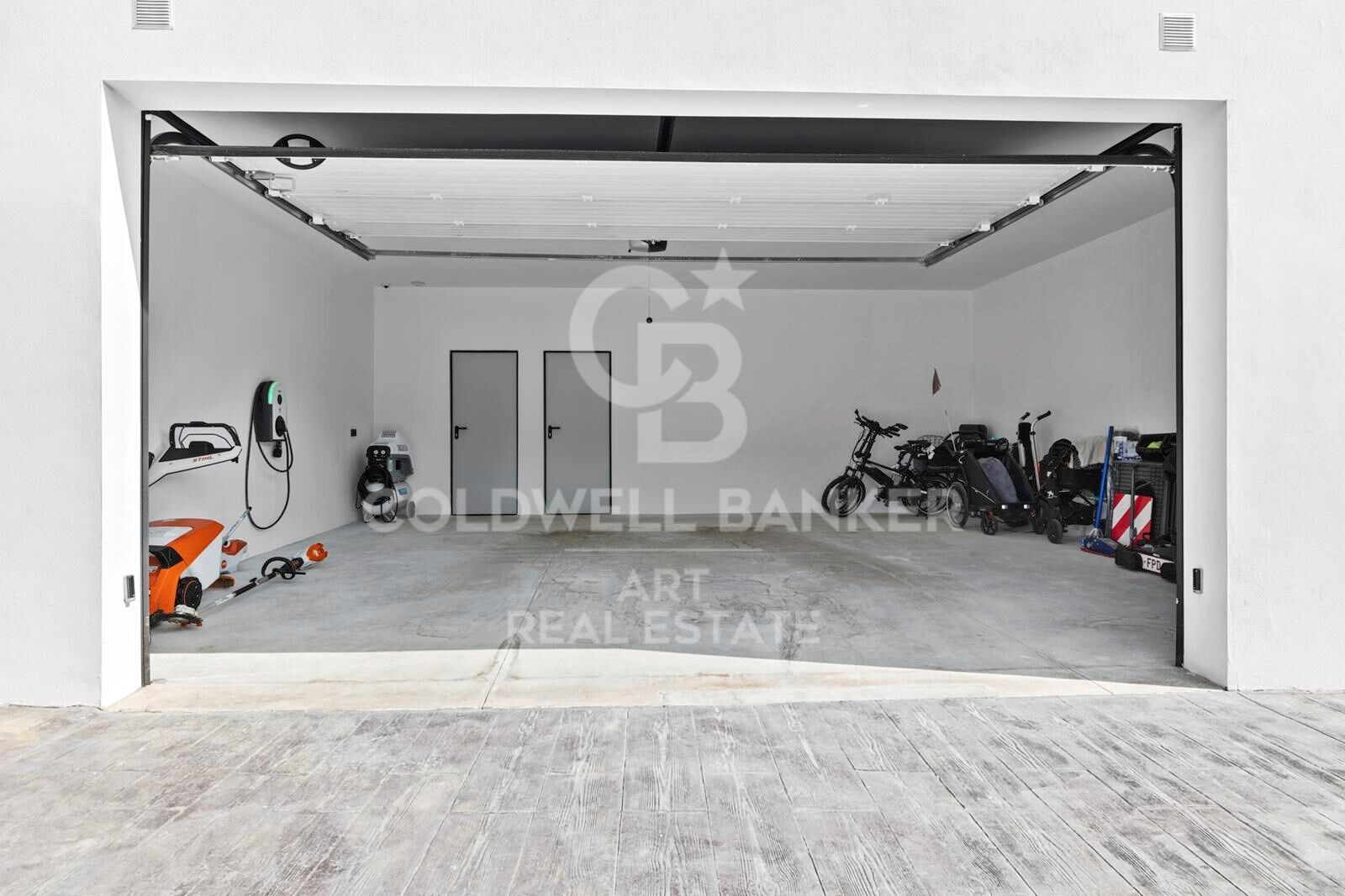 La villa ofrece un jardín privado cuidadosamente diseñado y una piscina climatizada de agua salada. Construida con los más altos estándares, cuenta con certificado energético A, climatización Airzone con calefacción, suelo radiante en toda la casa, 20 paneles solares, ascensor a las tres plantas y cargador eléctrico en el garaje.
