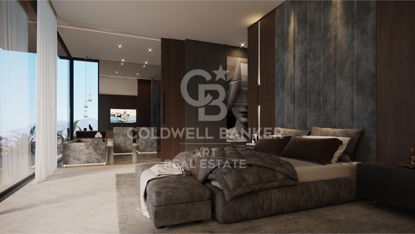 En el interior, la villa continúa impresionando. Grandes ventanales de suelo a techo inundan cada estancia de luz natural y enmarcan las vistas al paisaje. El bienestar y la comodidad son protagonistas, con una piscina interior, gimnasio privado y una oficina con entrada independiente, ideal para trabajar desde casa con total privacidad.