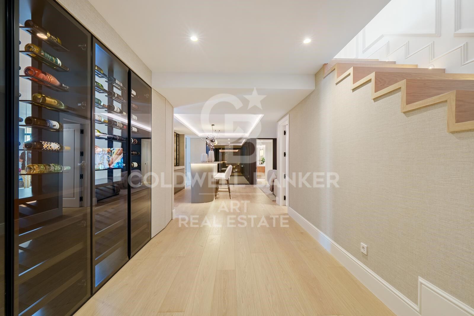 La cocina es uno de los puntos fuertes de la propiedad. Diseñada con líneas limpias y materiales de primera calidad, incluye una gran isla central, electrodomésticos integrados y abundante almacenamiento oculto en la carpintería a medida. La distribución fomenta la interacción, con vistas directas hacia el salón y un acceso fluido a las terrazas exteriores y a la piscina. Esta combinación de diseño y funcionalidad convierte la planta principal en uno de los mayores atractivos de la vivienda.