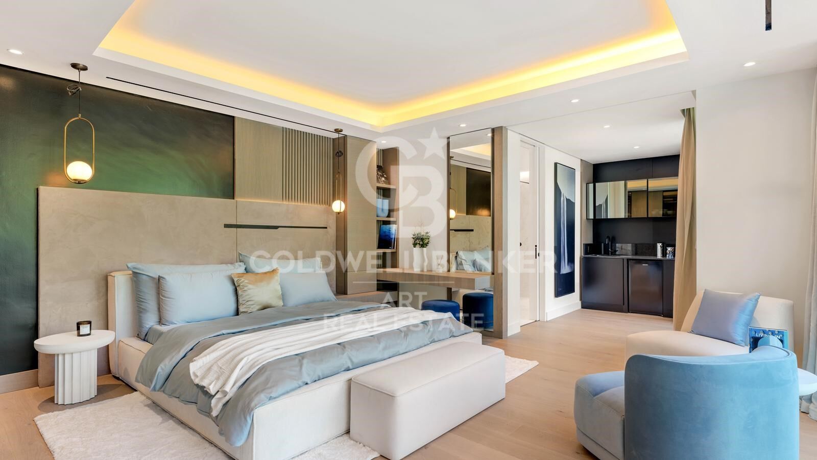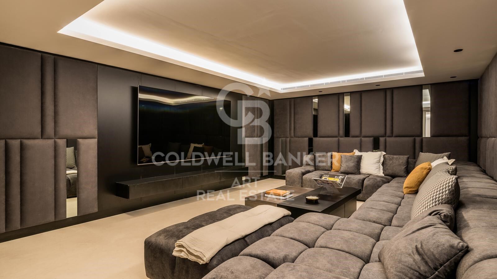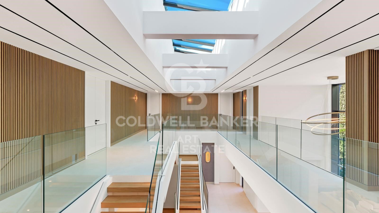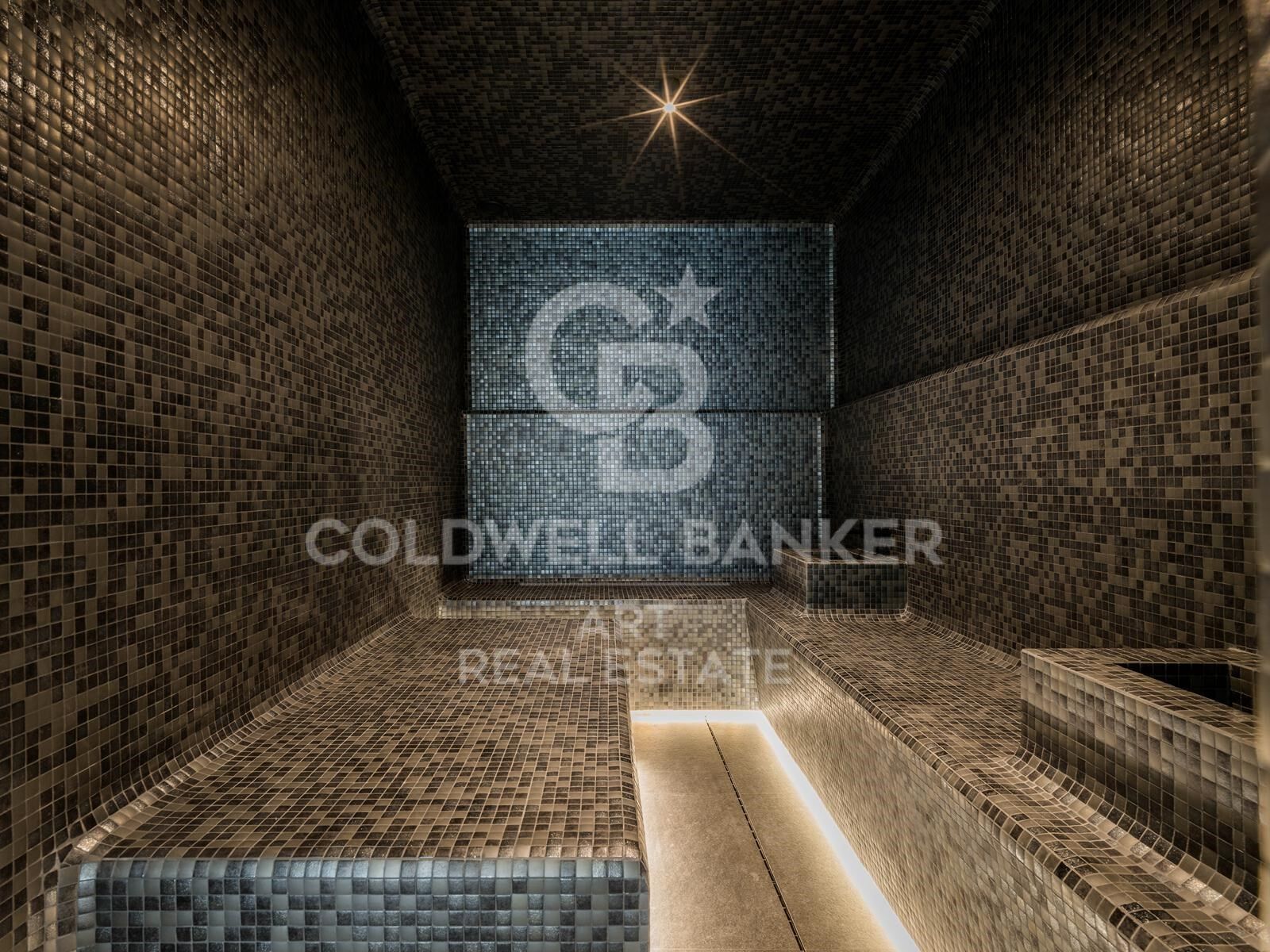 Cada detalle de esta vivienda refleja calidad y elegancia. Los mármoles de primera calidad fueron seleccionados a mano, y los muebles fueron diseñados a medida exclusivamente para esta villa, creando un ambiente sofisticado y exclusivo. El gran vestíbulo de doble altura, con un lucernario impactante y vistas panorámicas al mar, marca el tono del interior elegante. Una doble escalera y un ascensor conectan cómodamente las tres plantas.