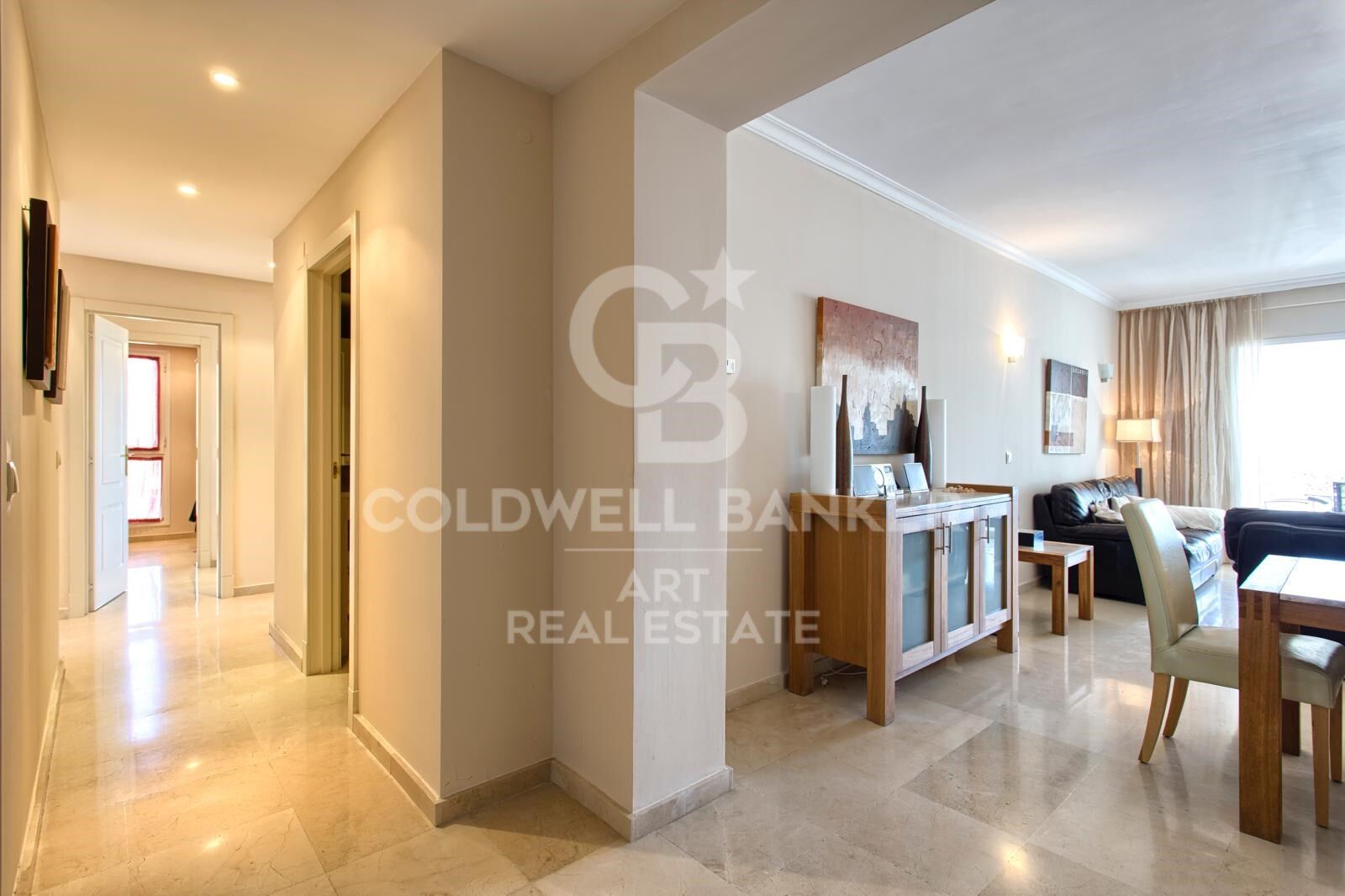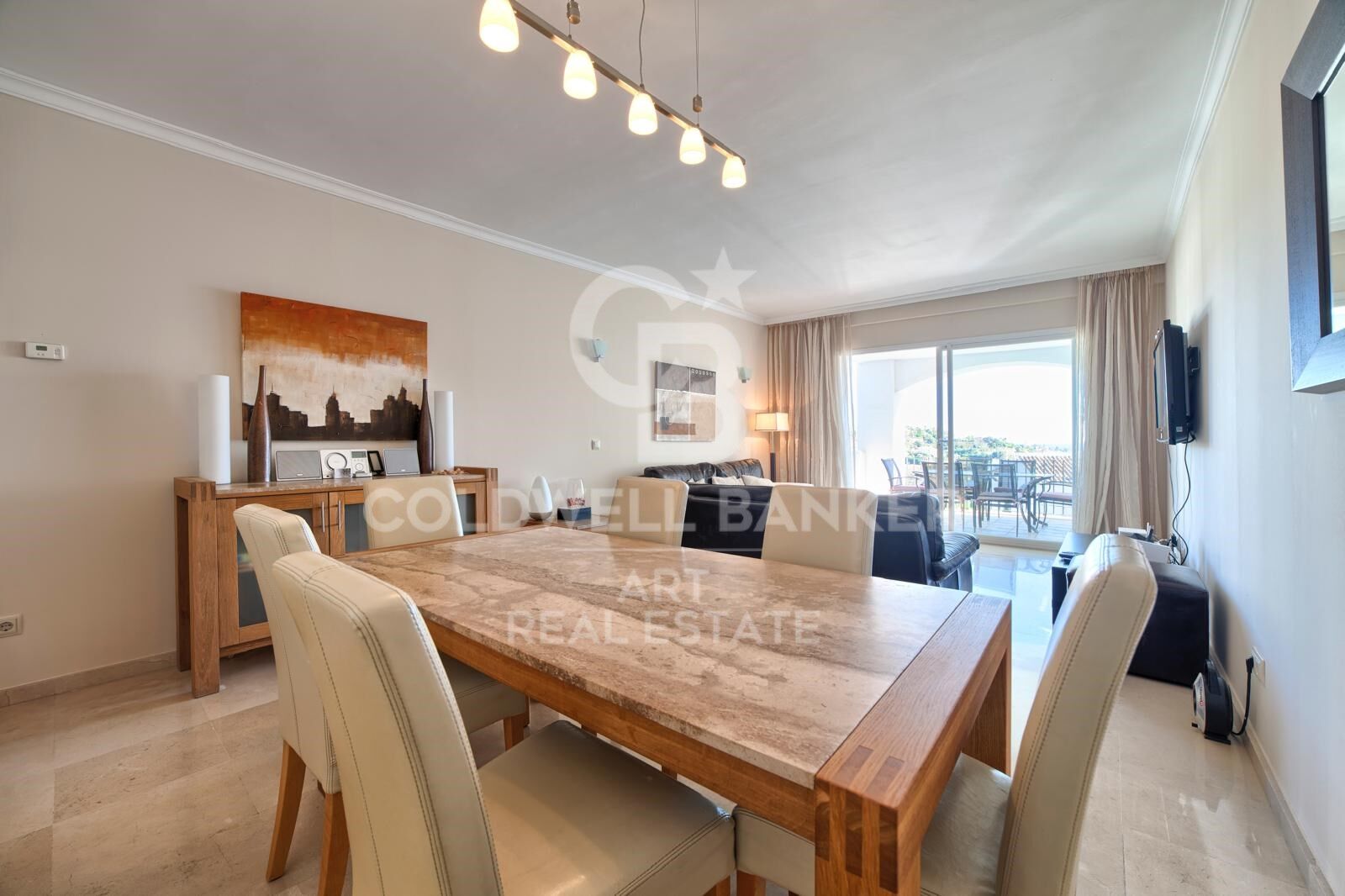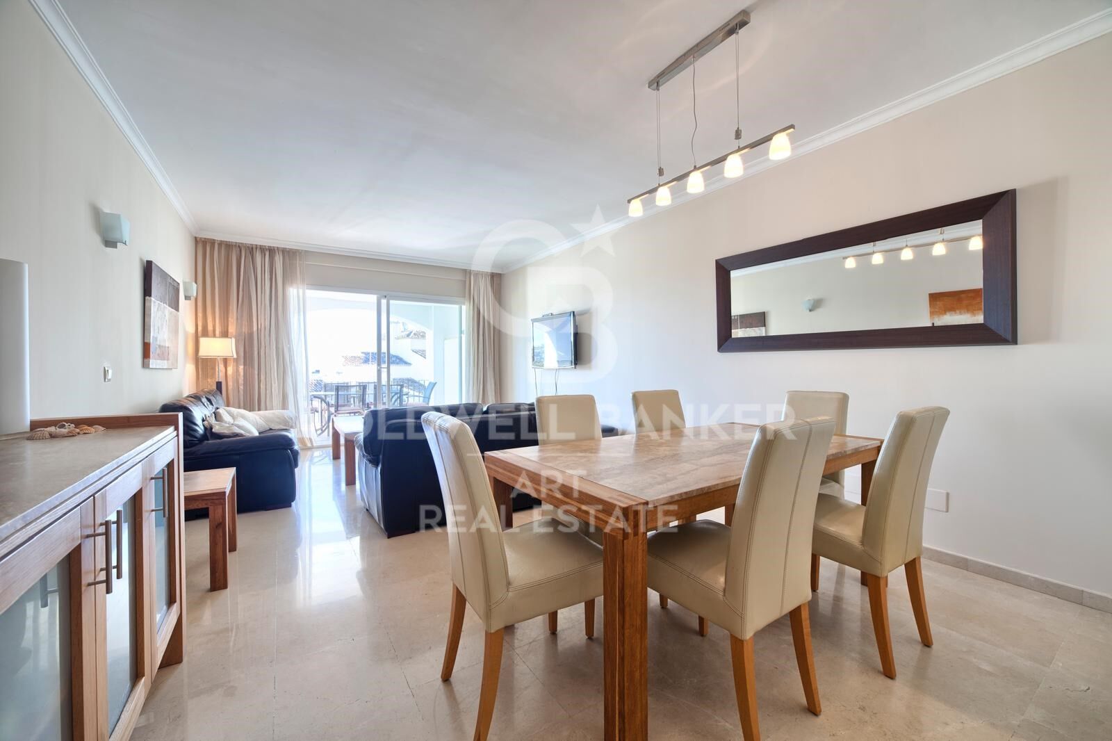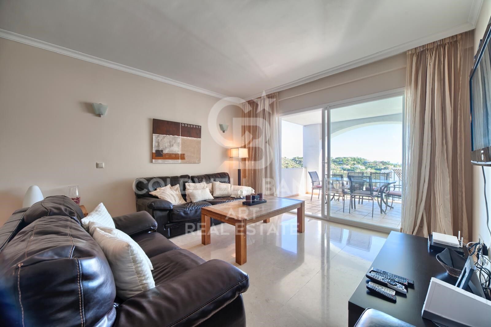 El apartamento cuenta con espacios luminosos y abiertos que fluyen a la perfección hacia una generosa terraza, donde se puede disfrutar de impresionantes vistas al mar, las montañas circundantes y el campo de golf cercano. Es un entorno que se adapta tanto a las mañanas tranquilas como a las reuniones nocturnas relajadas.
